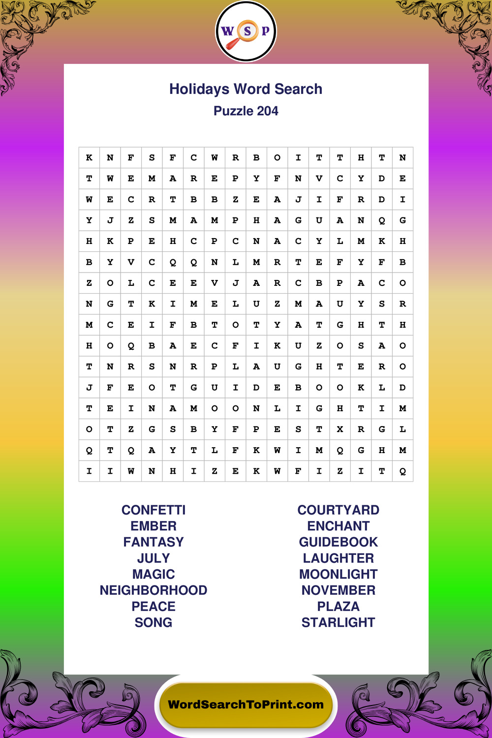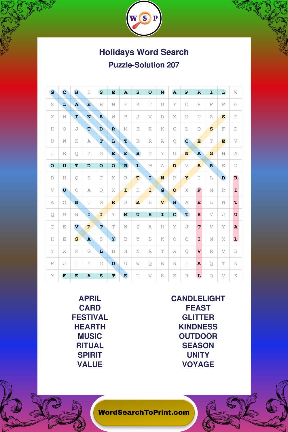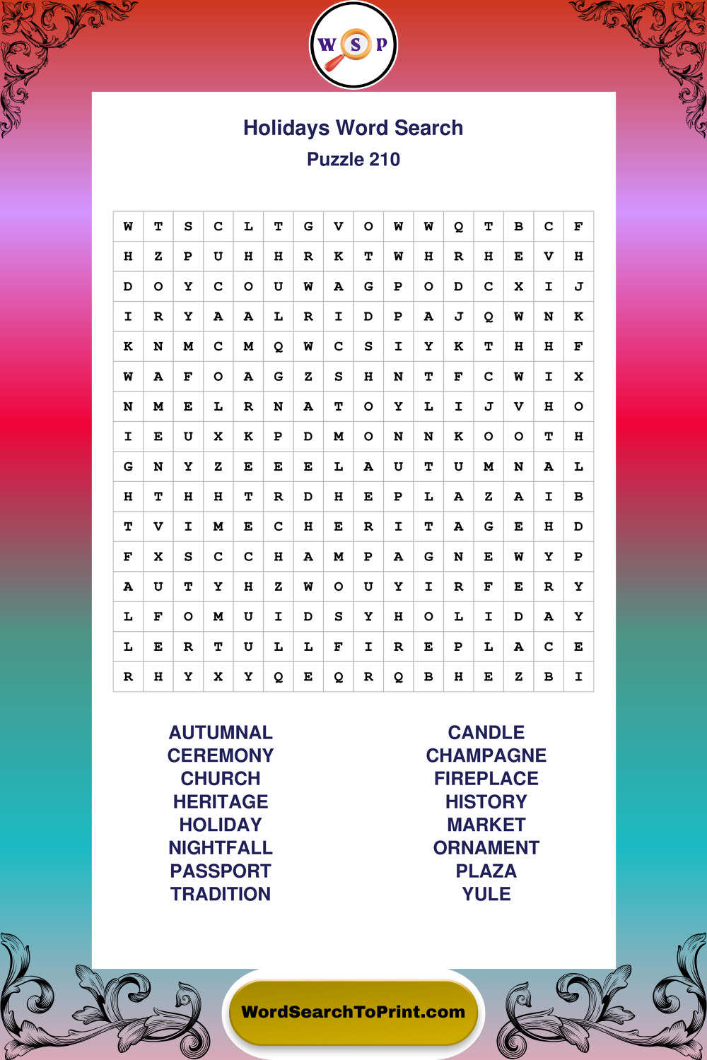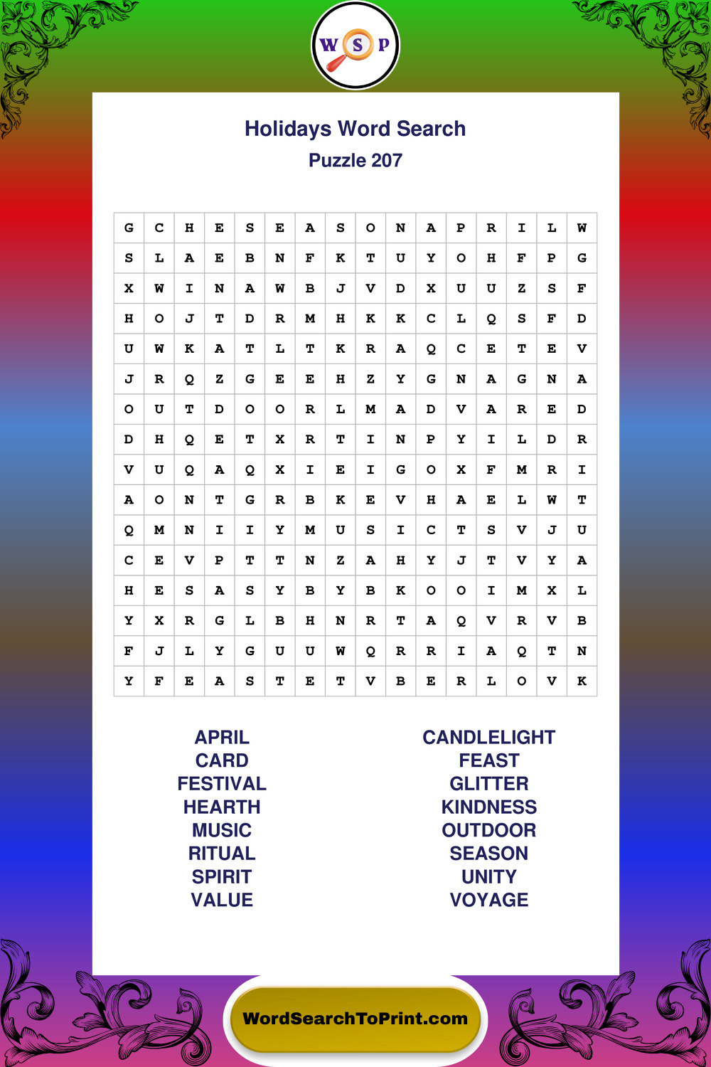 Printable Holidays Wordsearch Puzzles