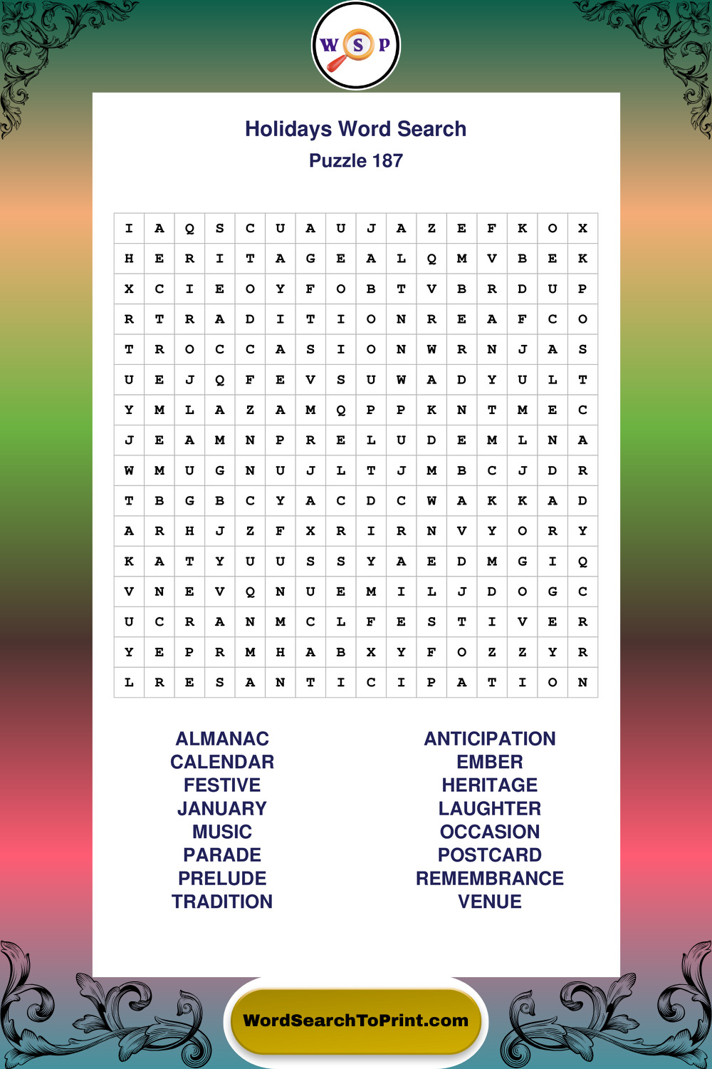 These puzzles include vocabulary connected to traditions, celebrations, festive events, and meaningful moments throughout the year. They offer a structured and engaging way to explore this topic while strengthening concentration and vocabulary recognition. You may also enjoy our St Patrick word search puzzles and Valentine word search puzzles.