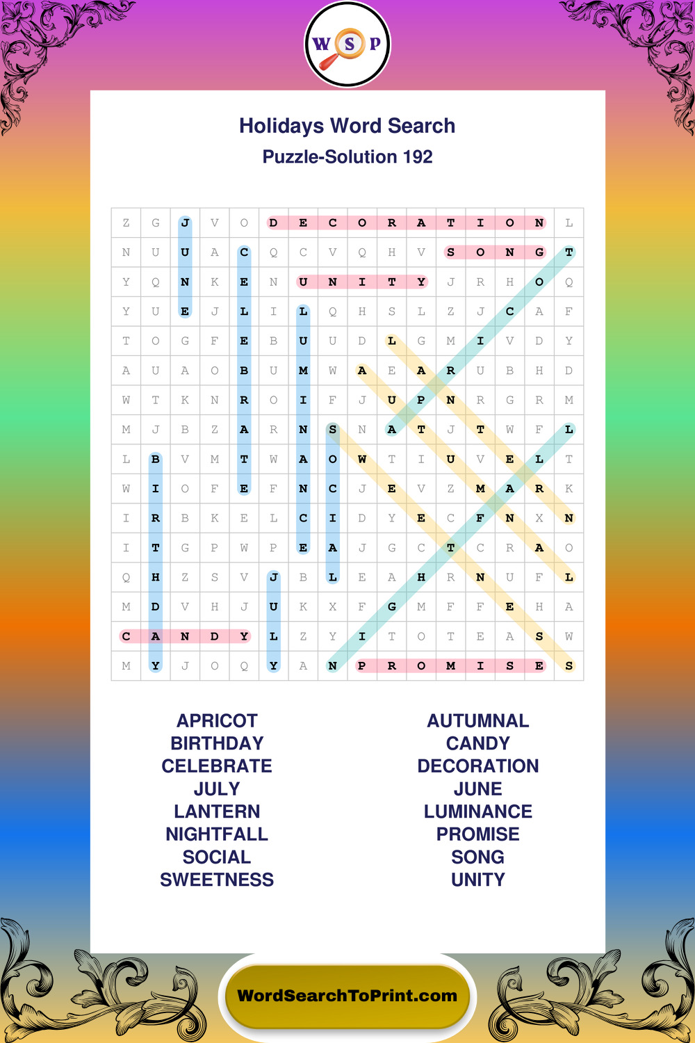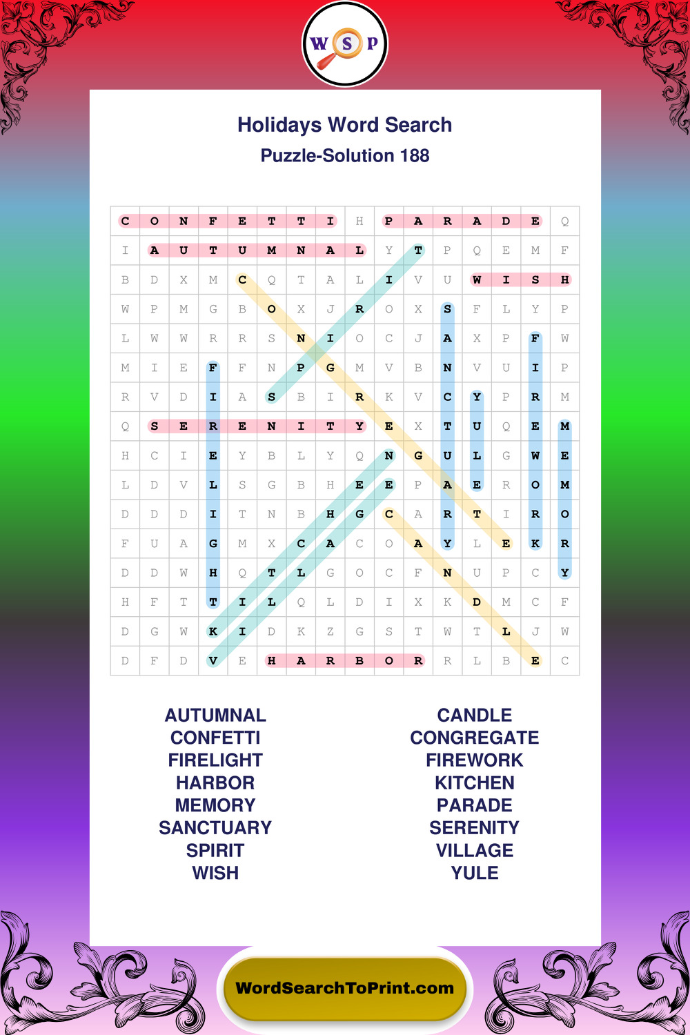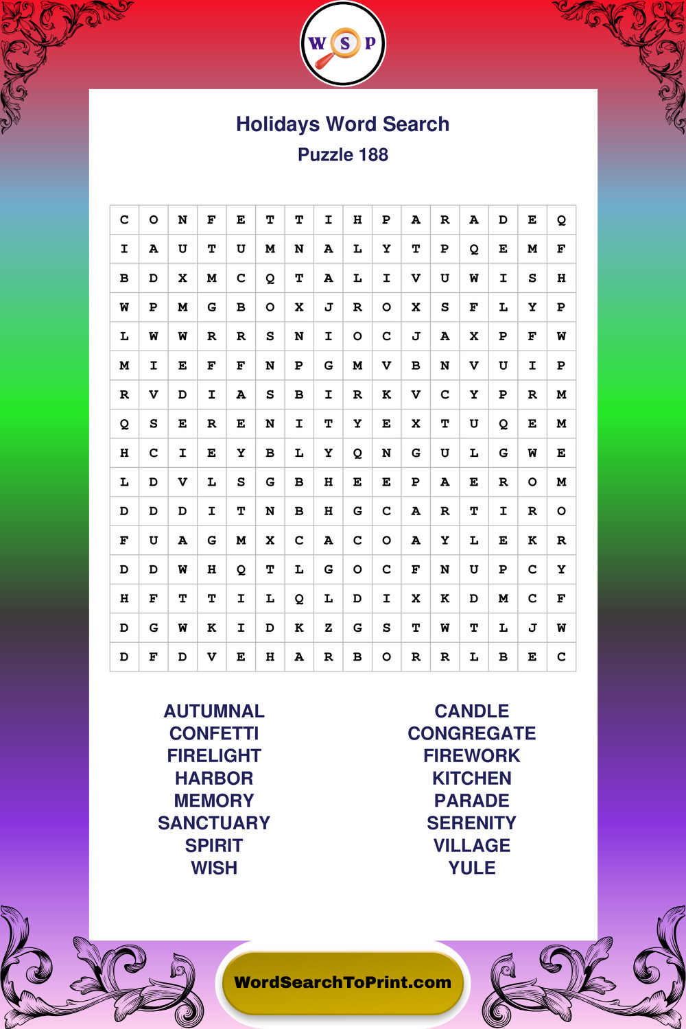 Printable Holidays Wordsearch Puzzles