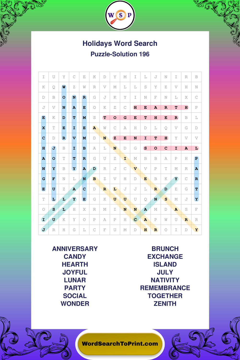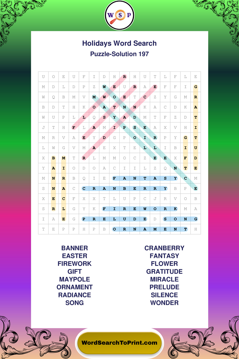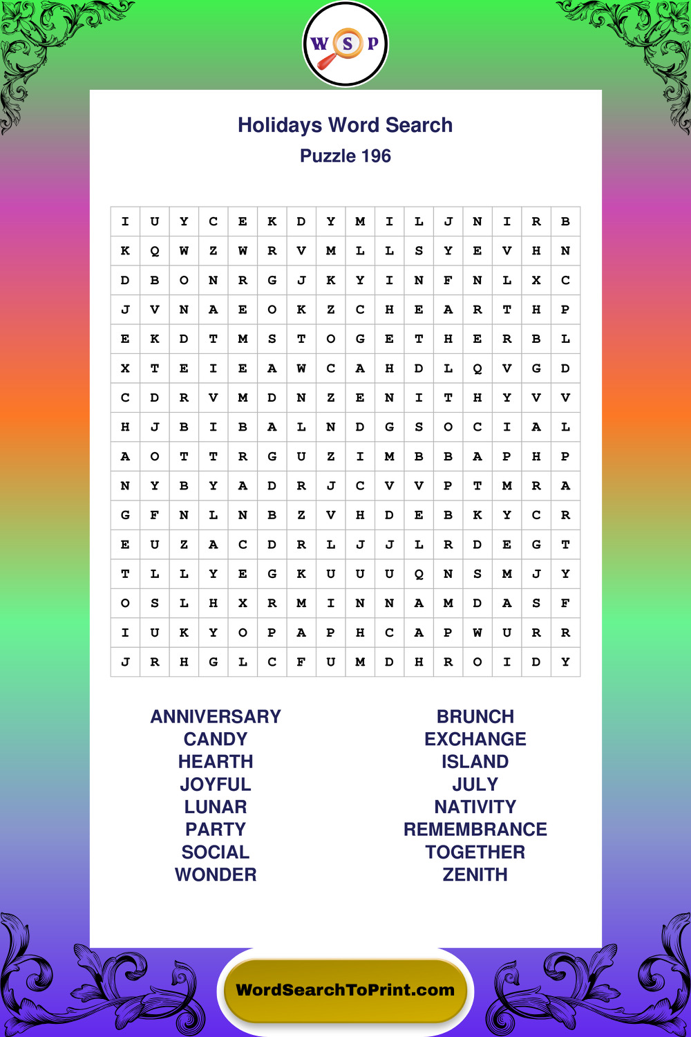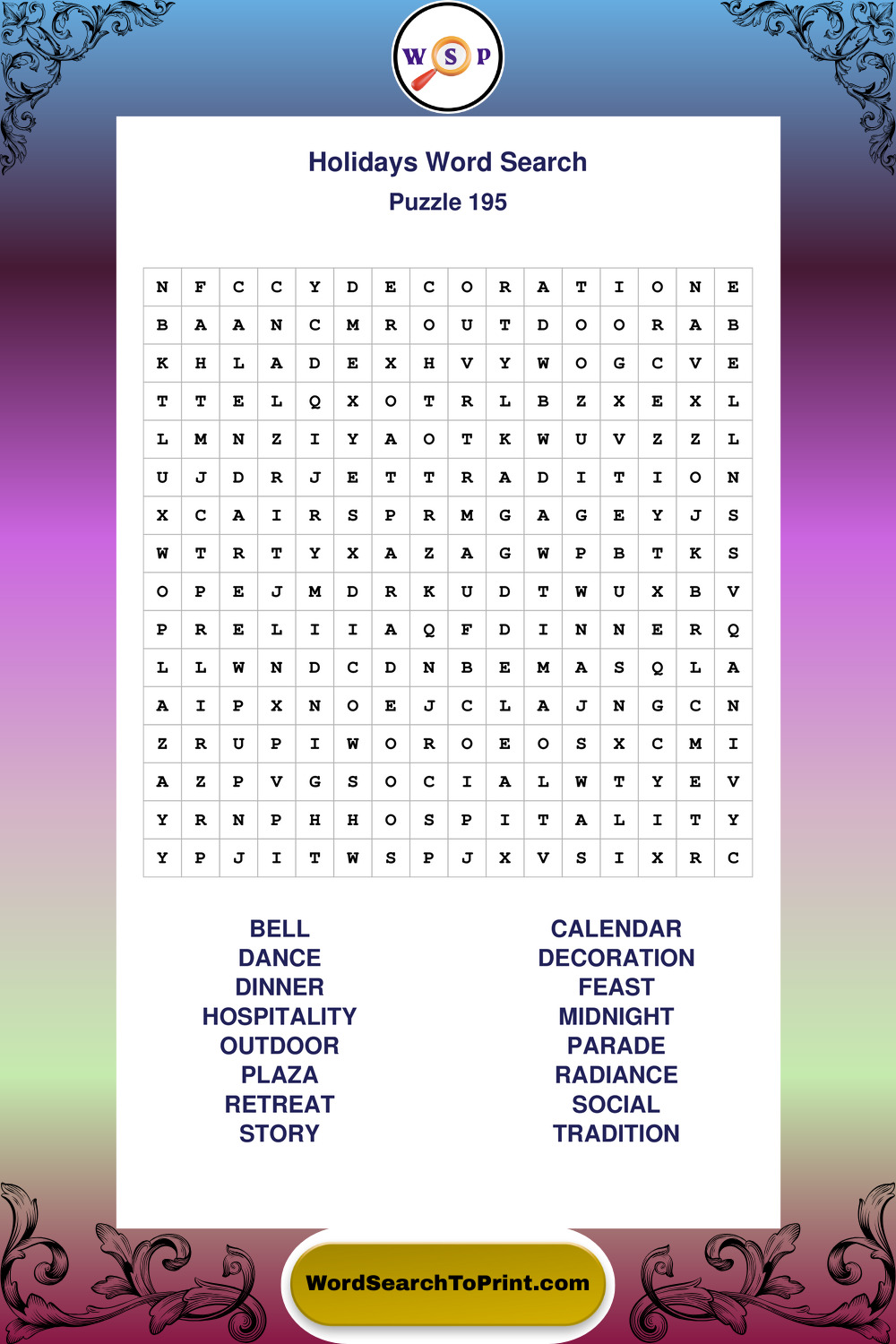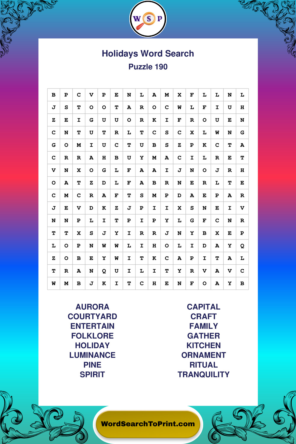 Find easy-to-read large print Holidays wordsearches designed for peaceful focus and simple, enjoyable solving.