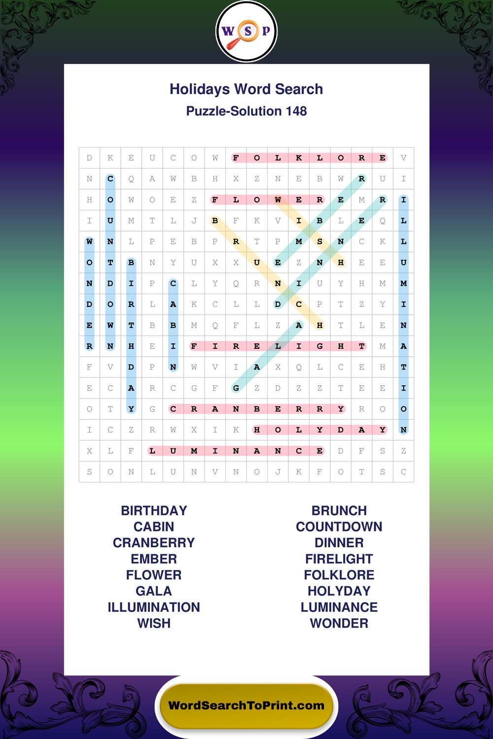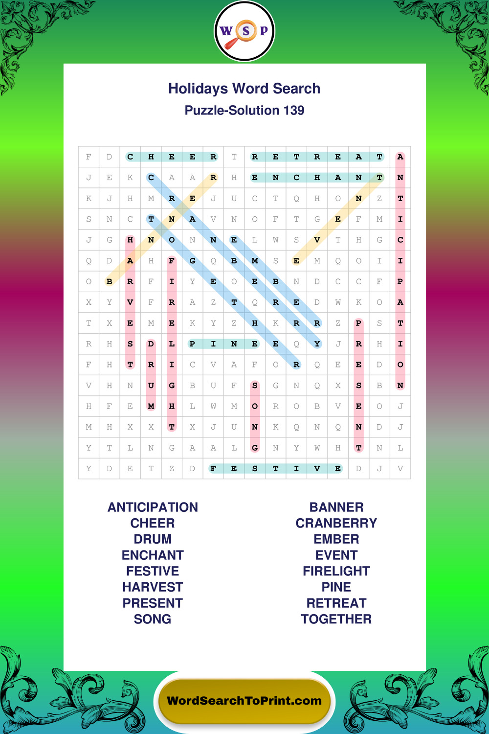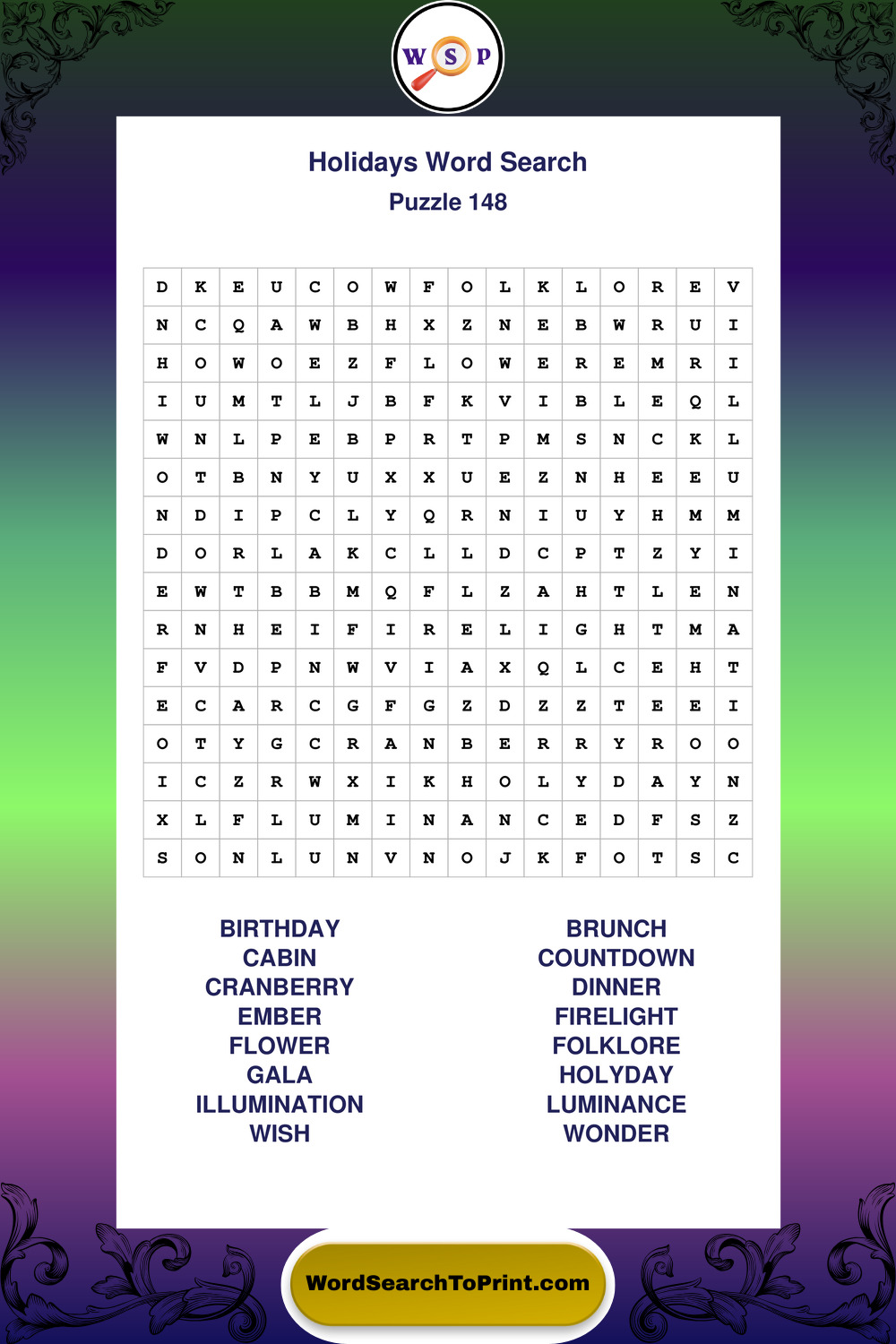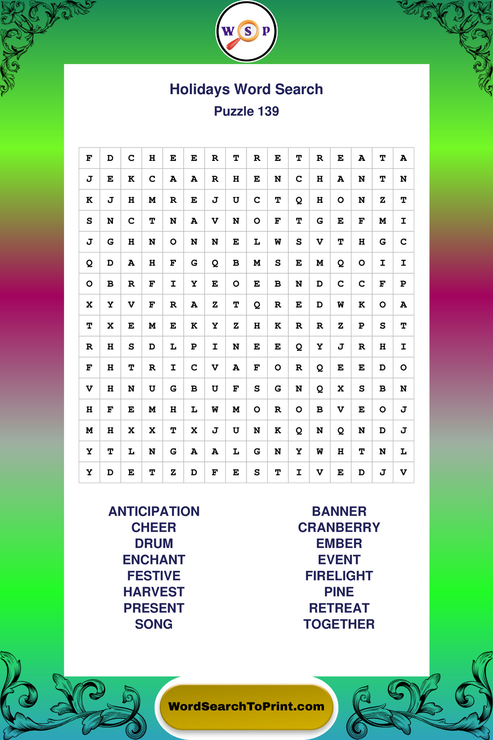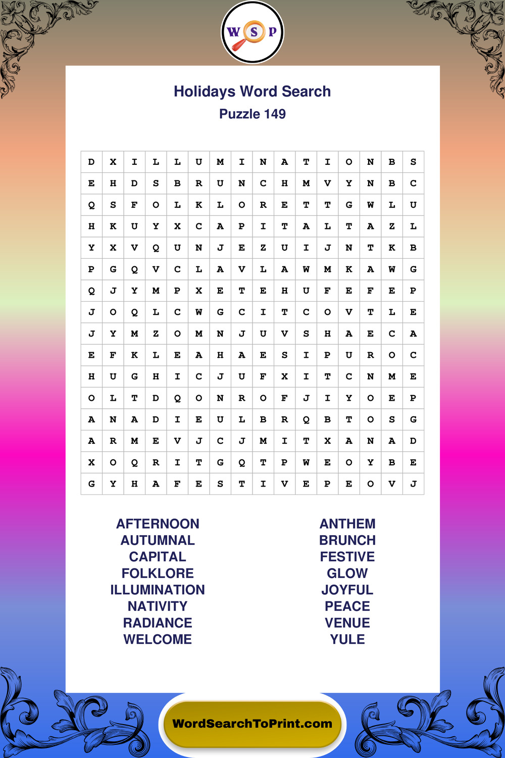 Find easy-to-read large print Holidays wordsearches designed for peaceful focus and simple, enjoyable solving.