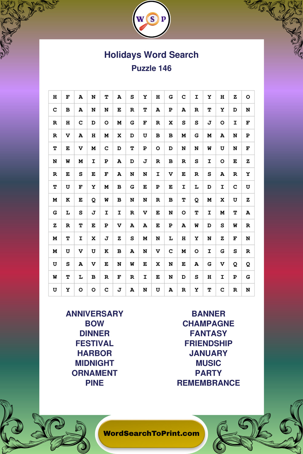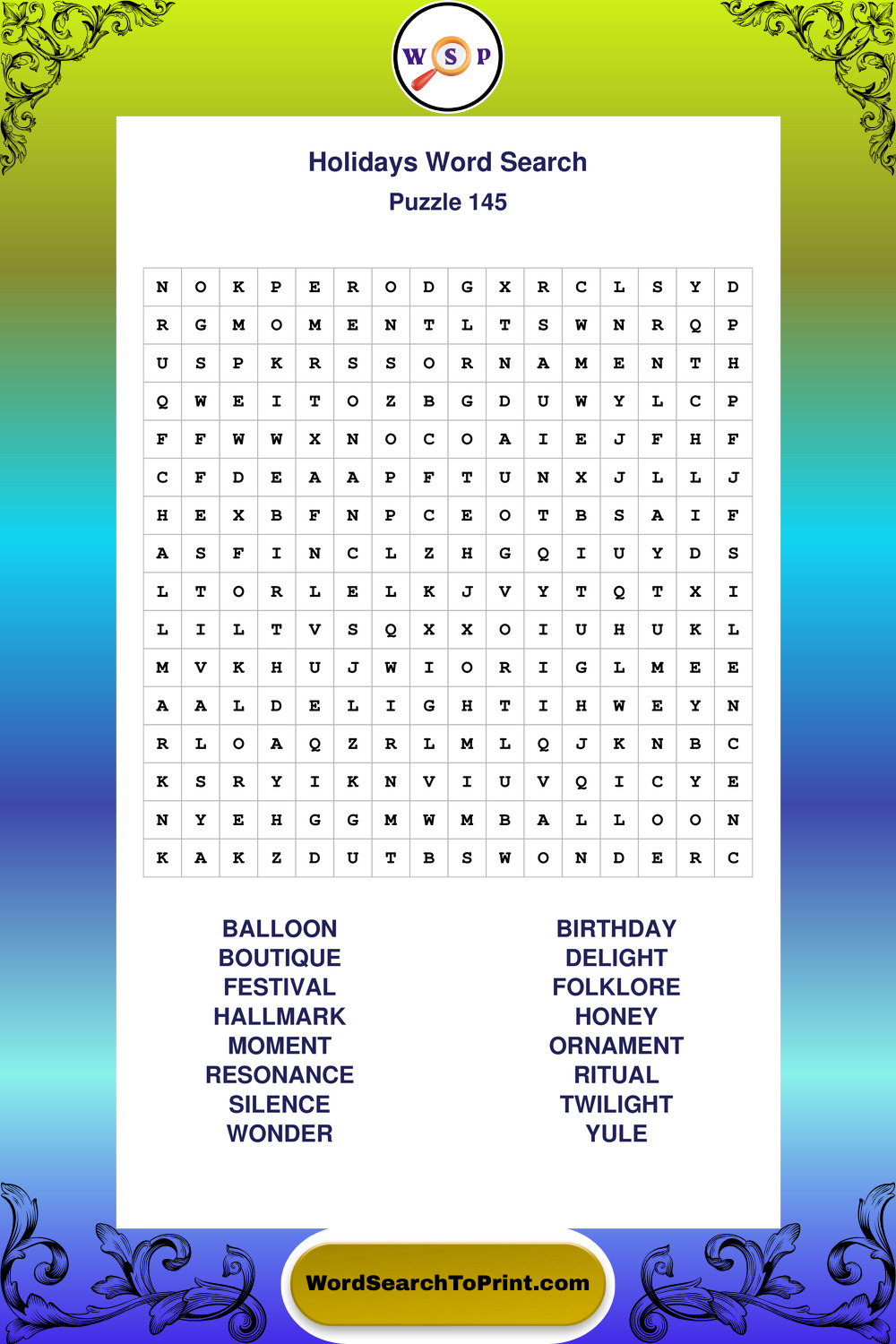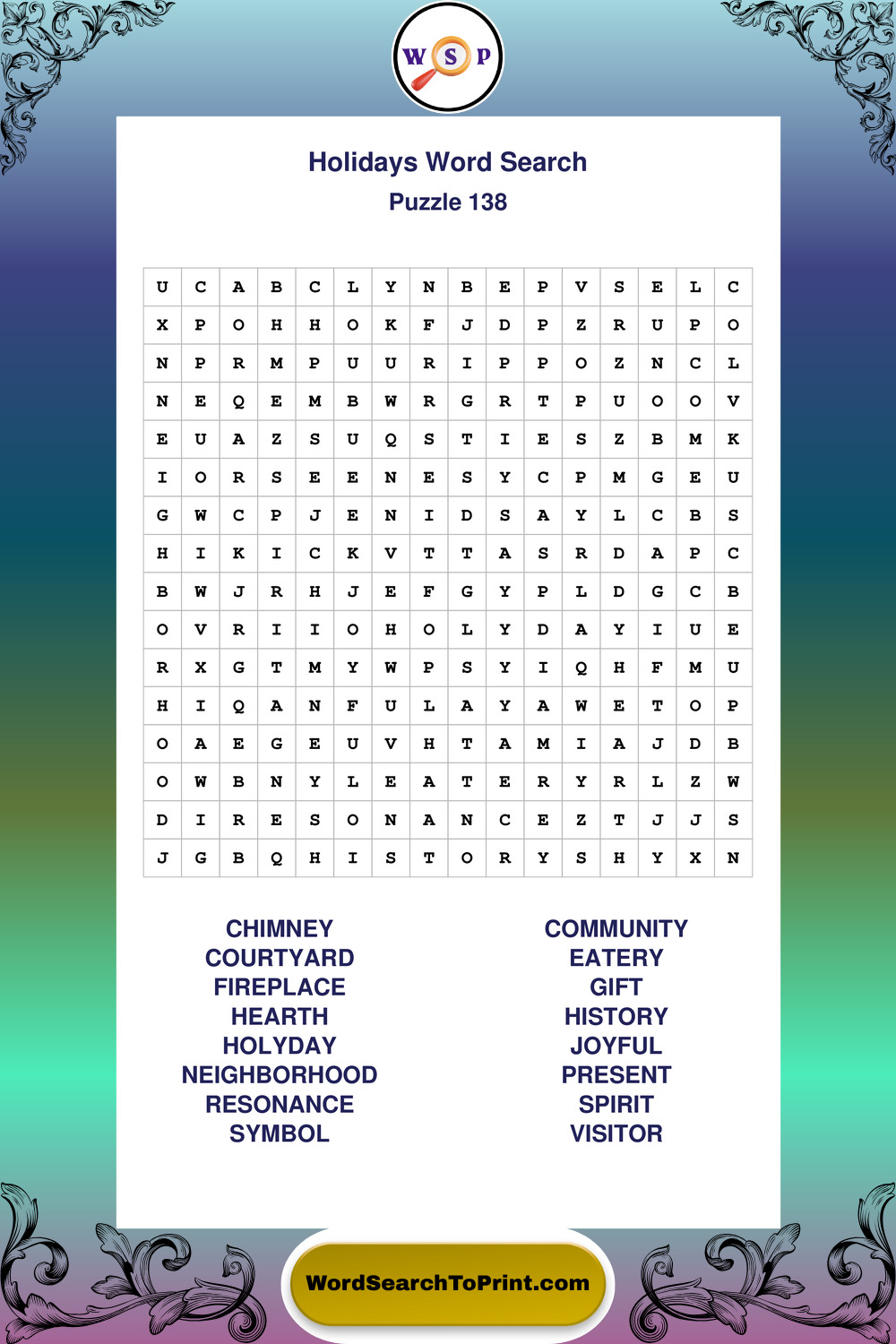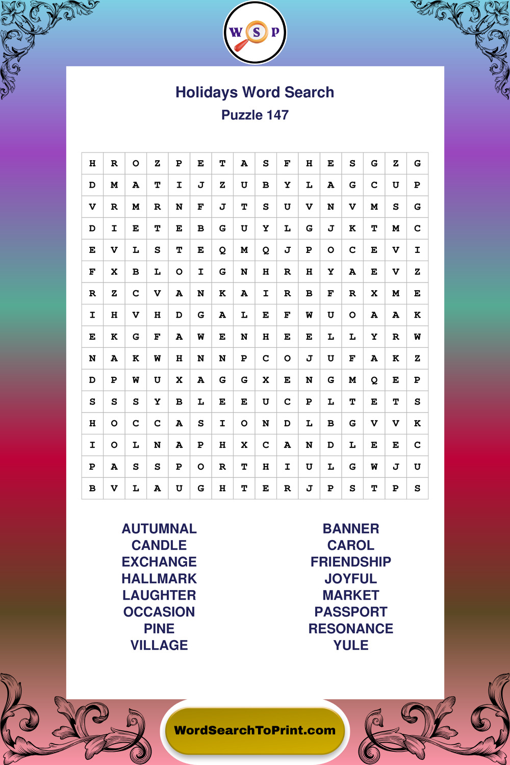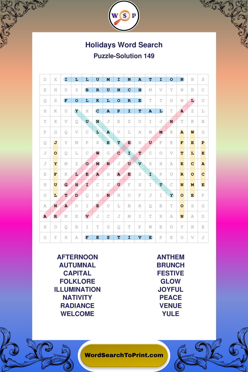 Find easy-to-read large print Holidays wordsearches designed for peaceful focus and simple, enjoyable solving.