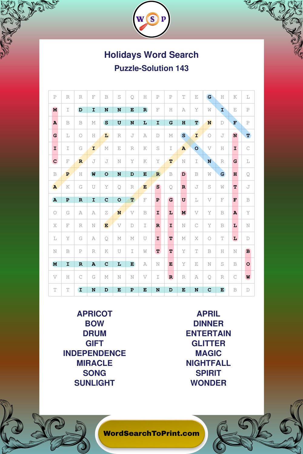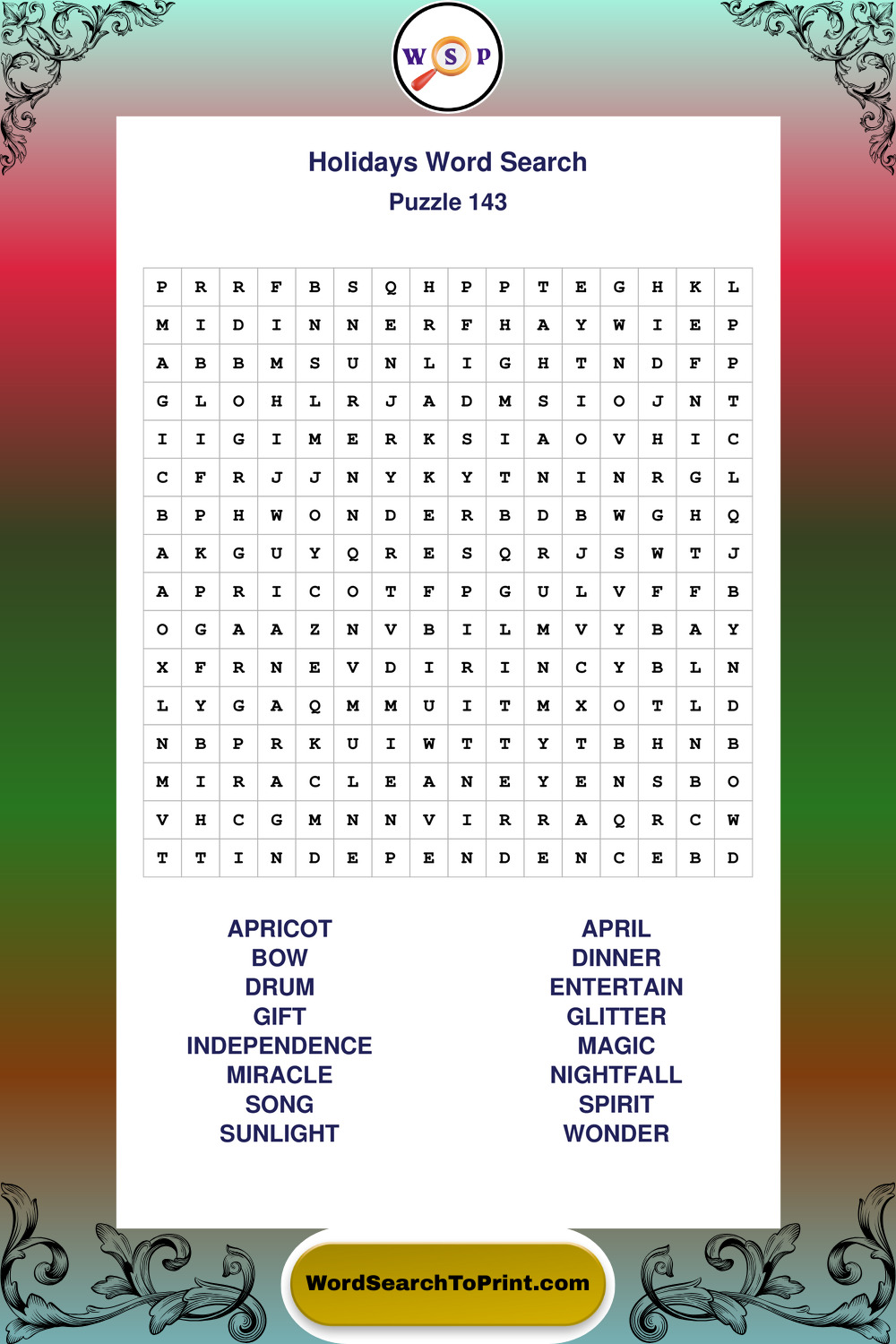 Printable Holidays Wordsearch Puzzles