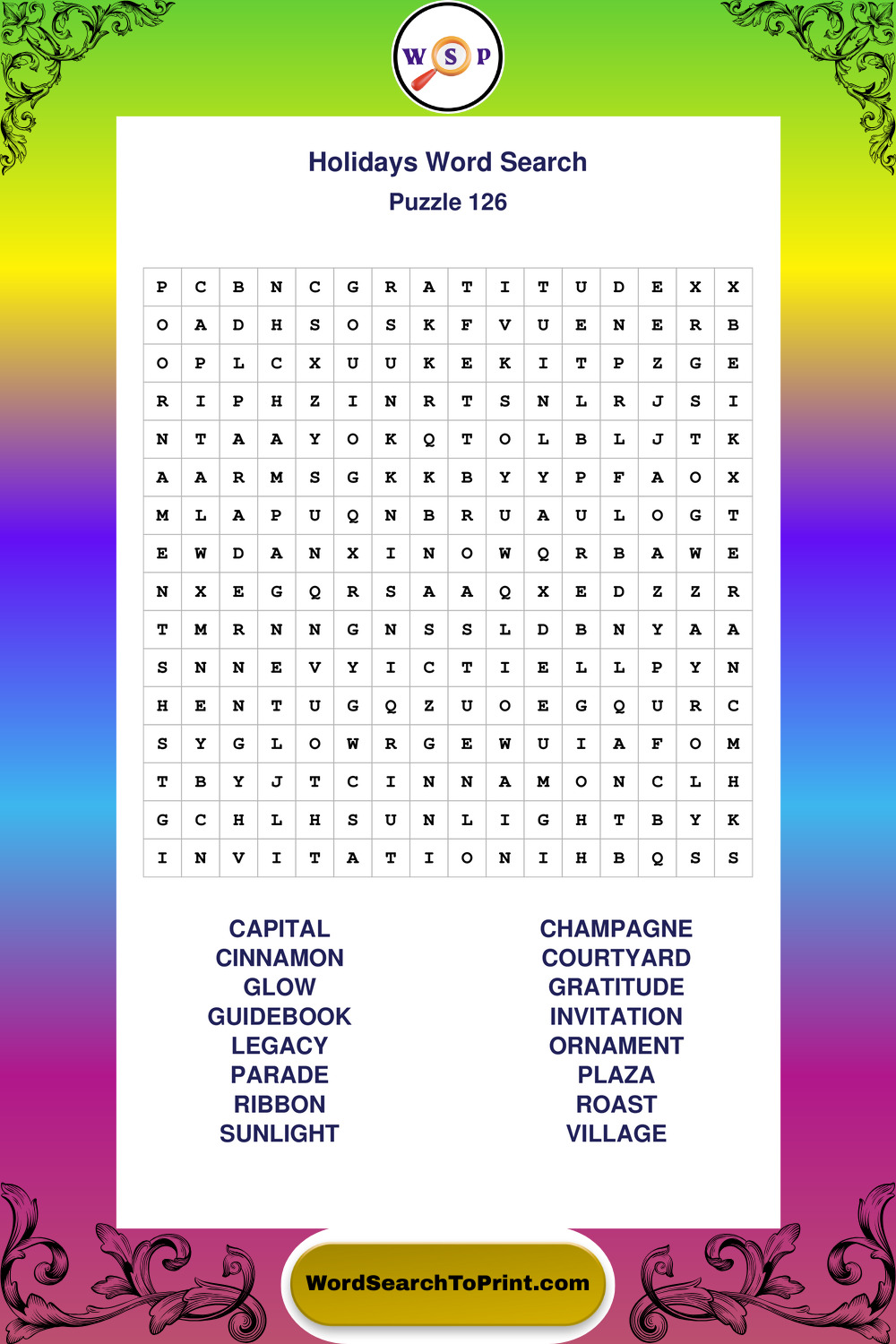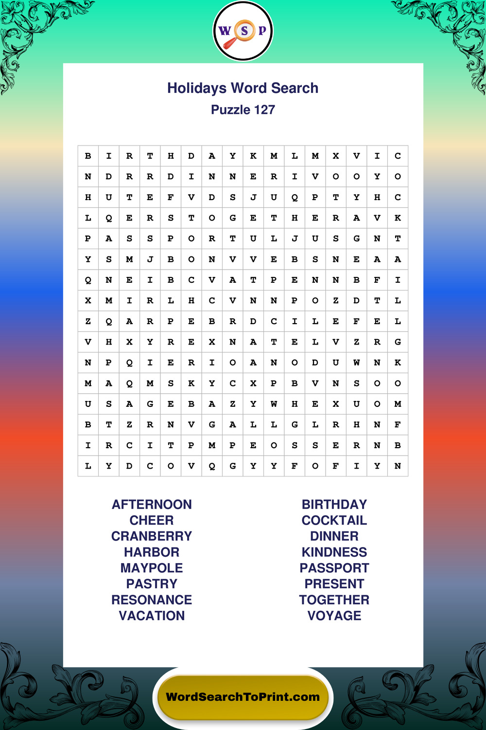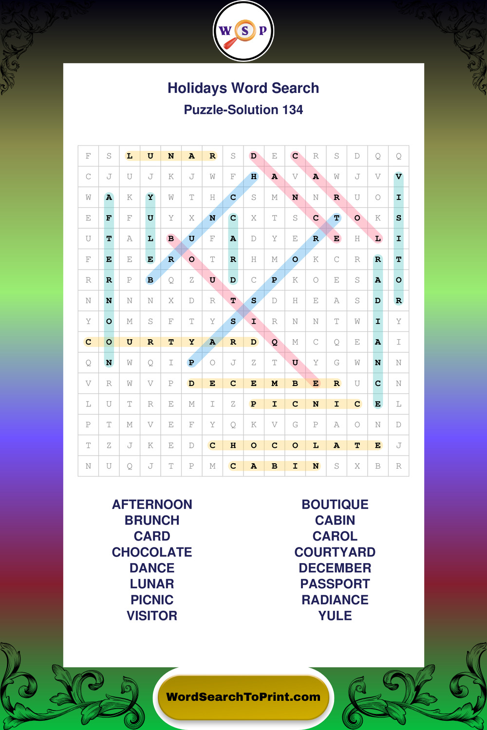 Printable Holidays Wordsearch Puzzles