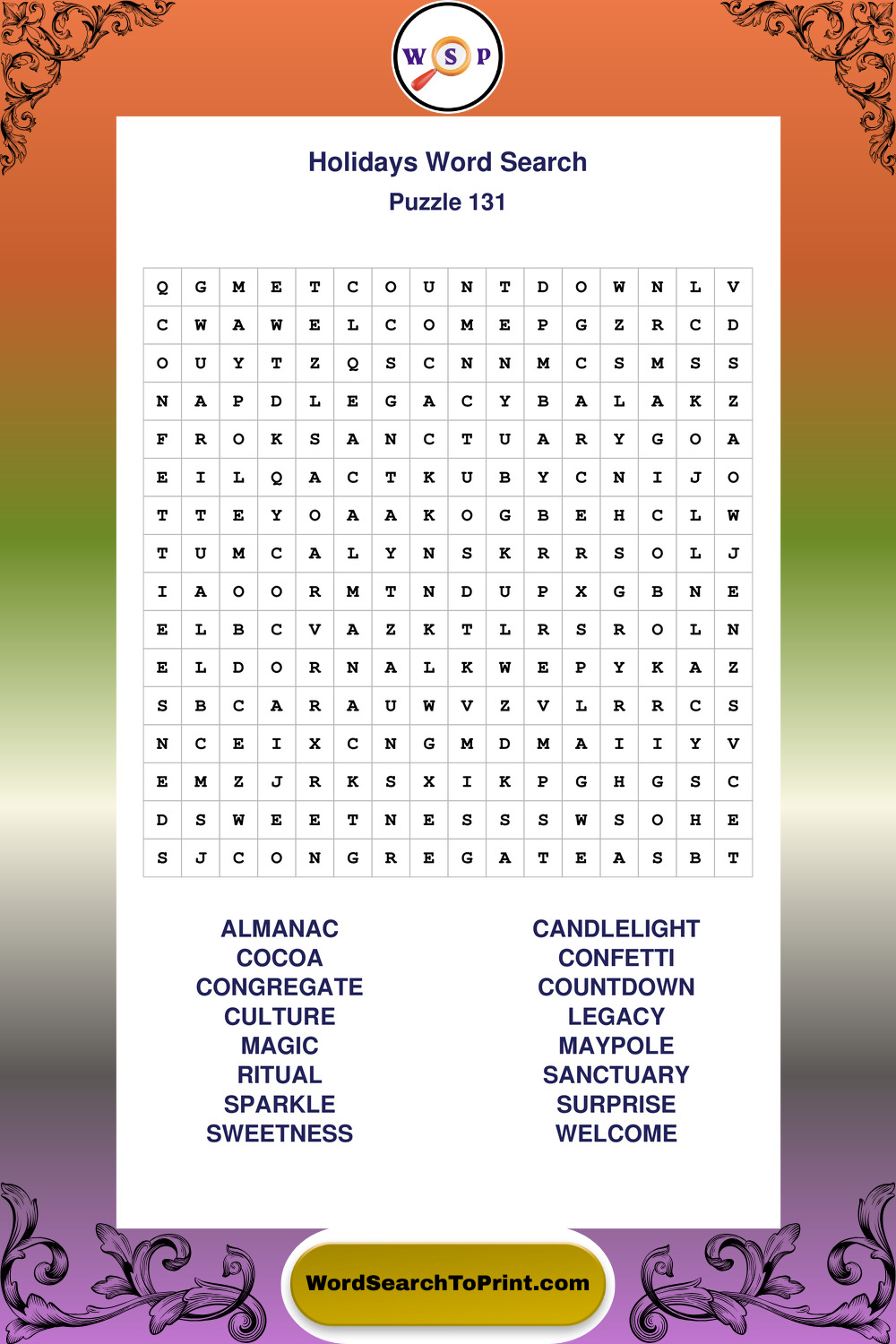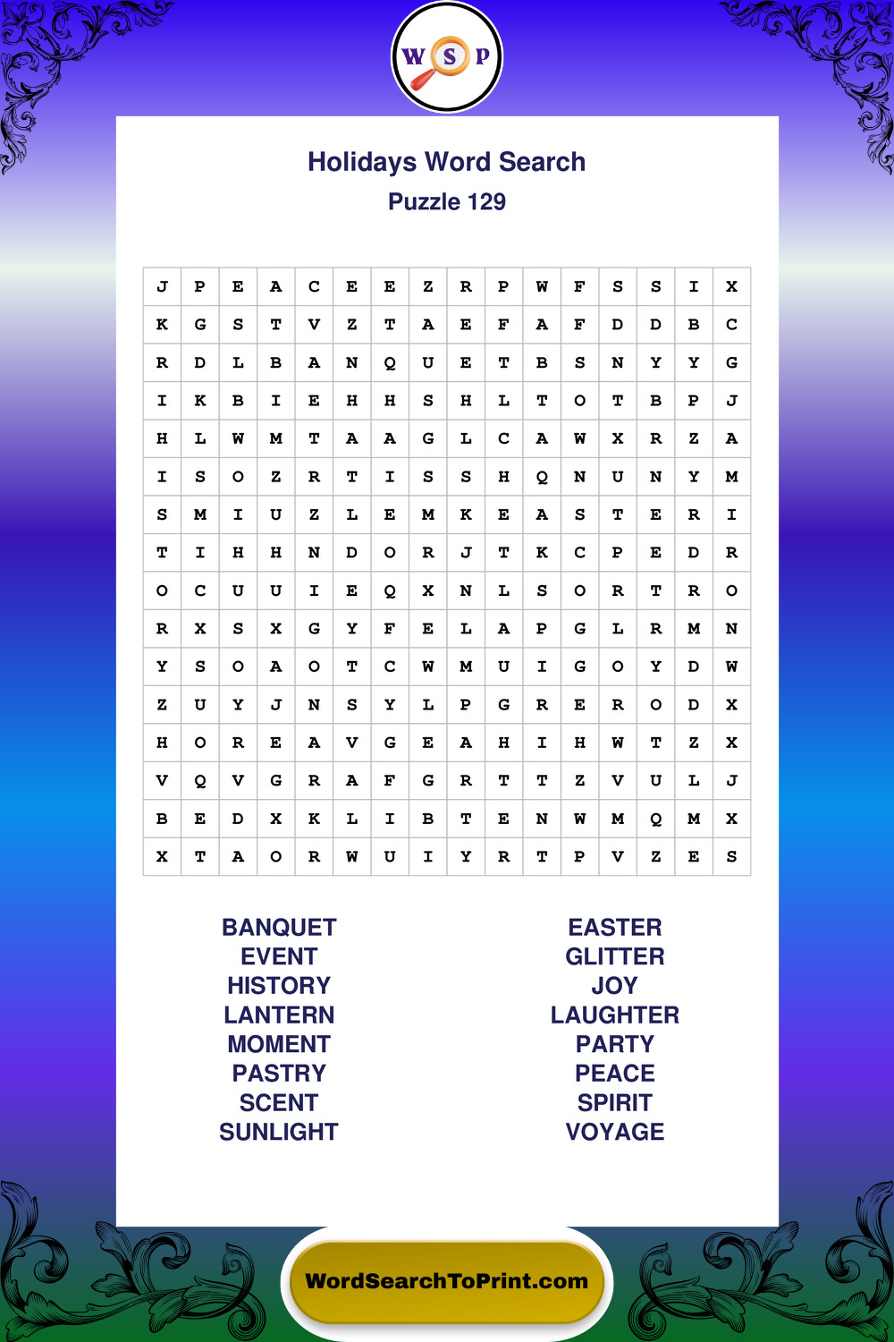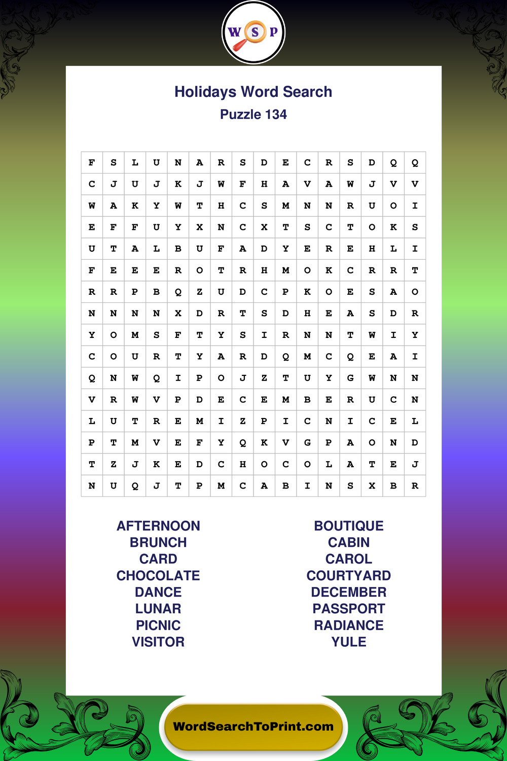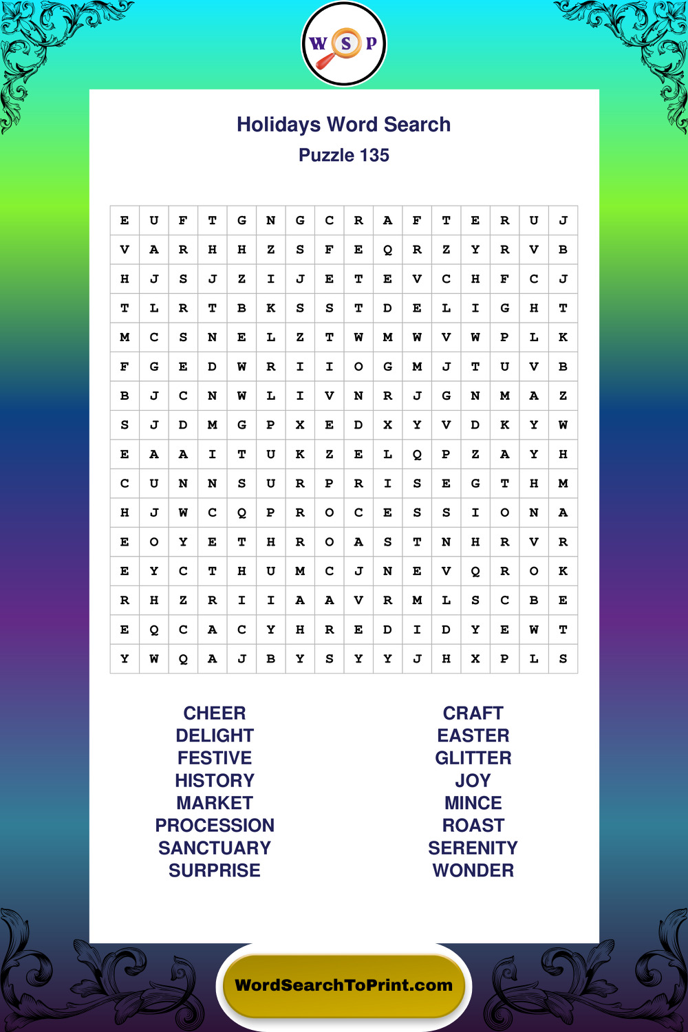 Find easy-to-read large print Holidays wordsearches designed for peaceful focus and simple, enjoyable solving.