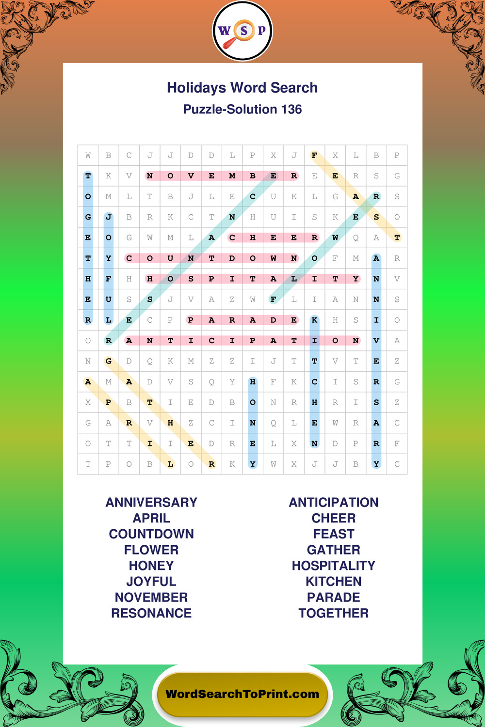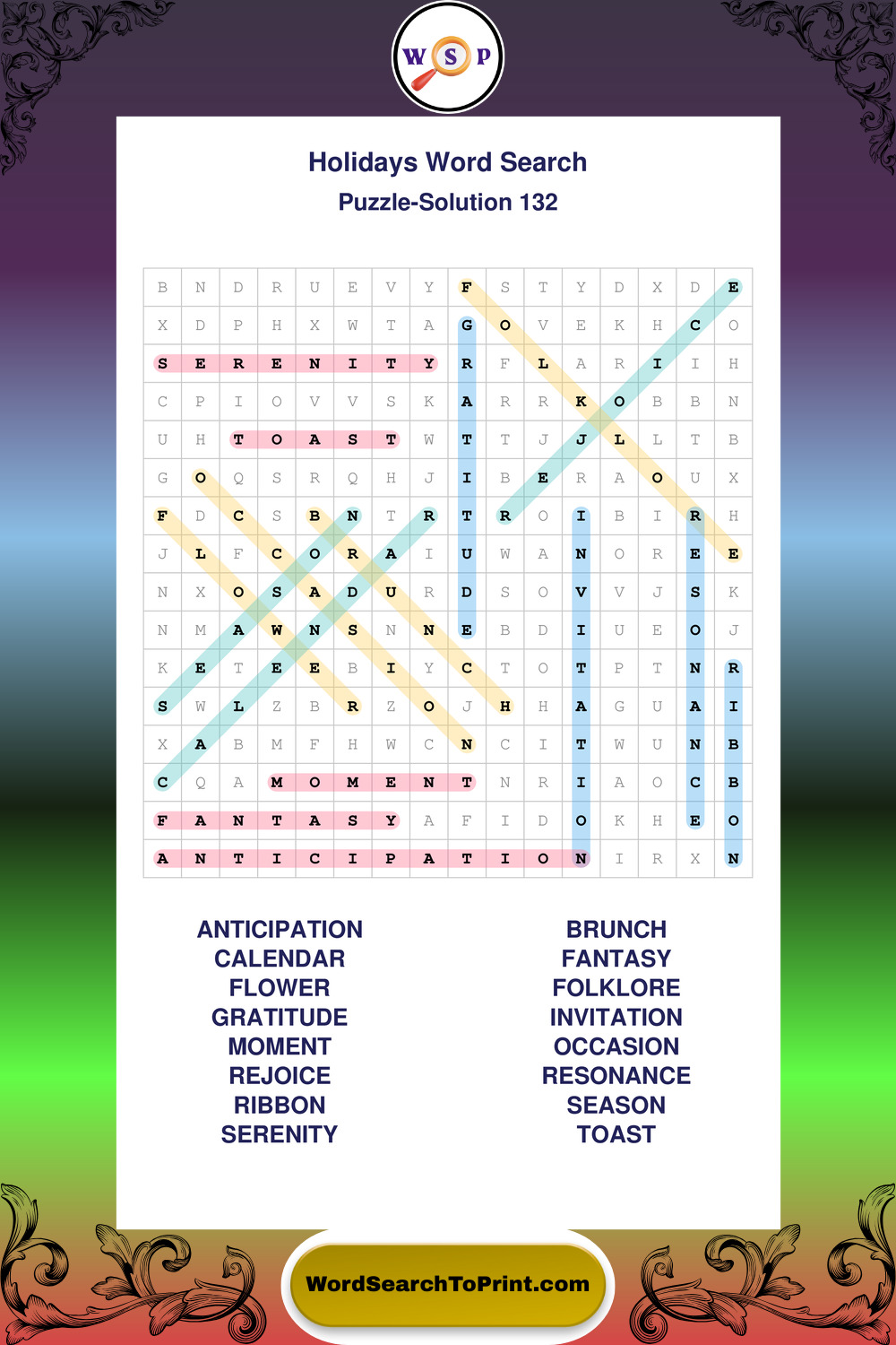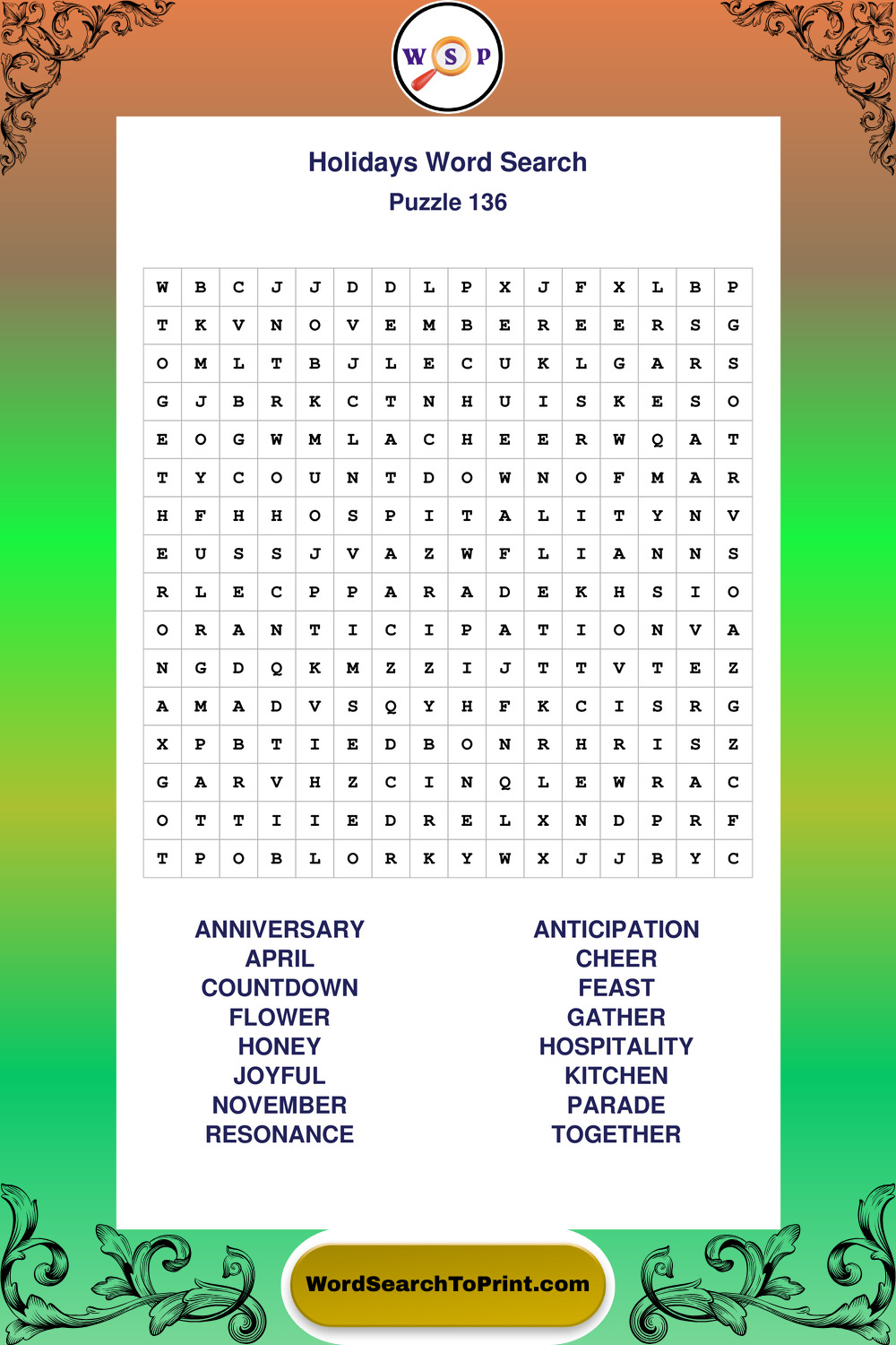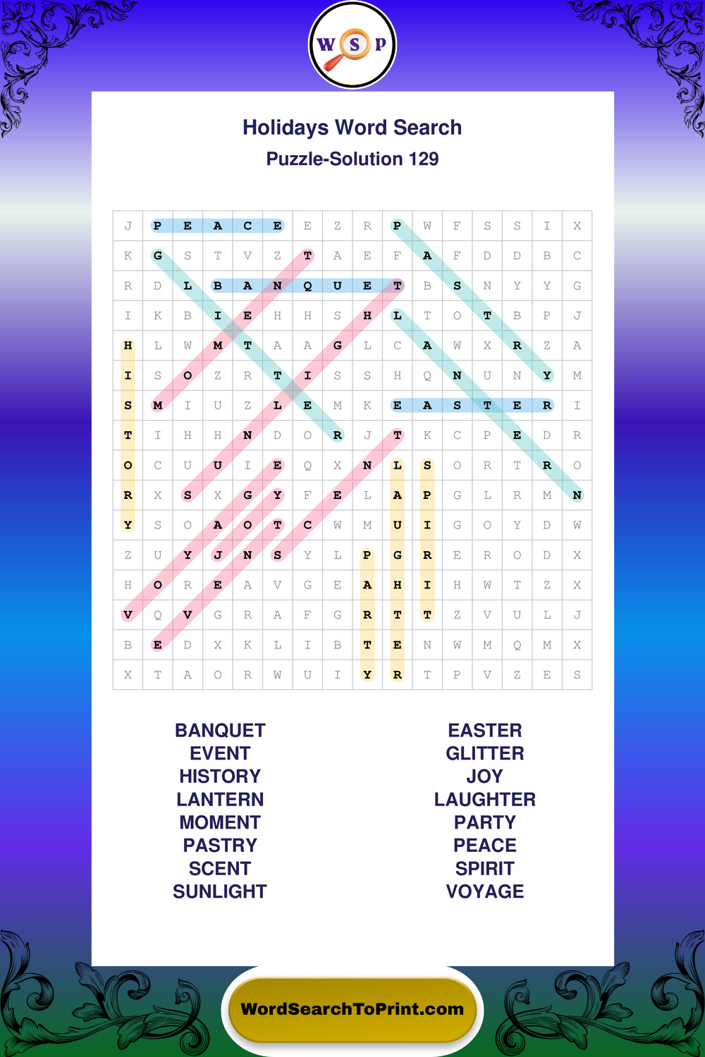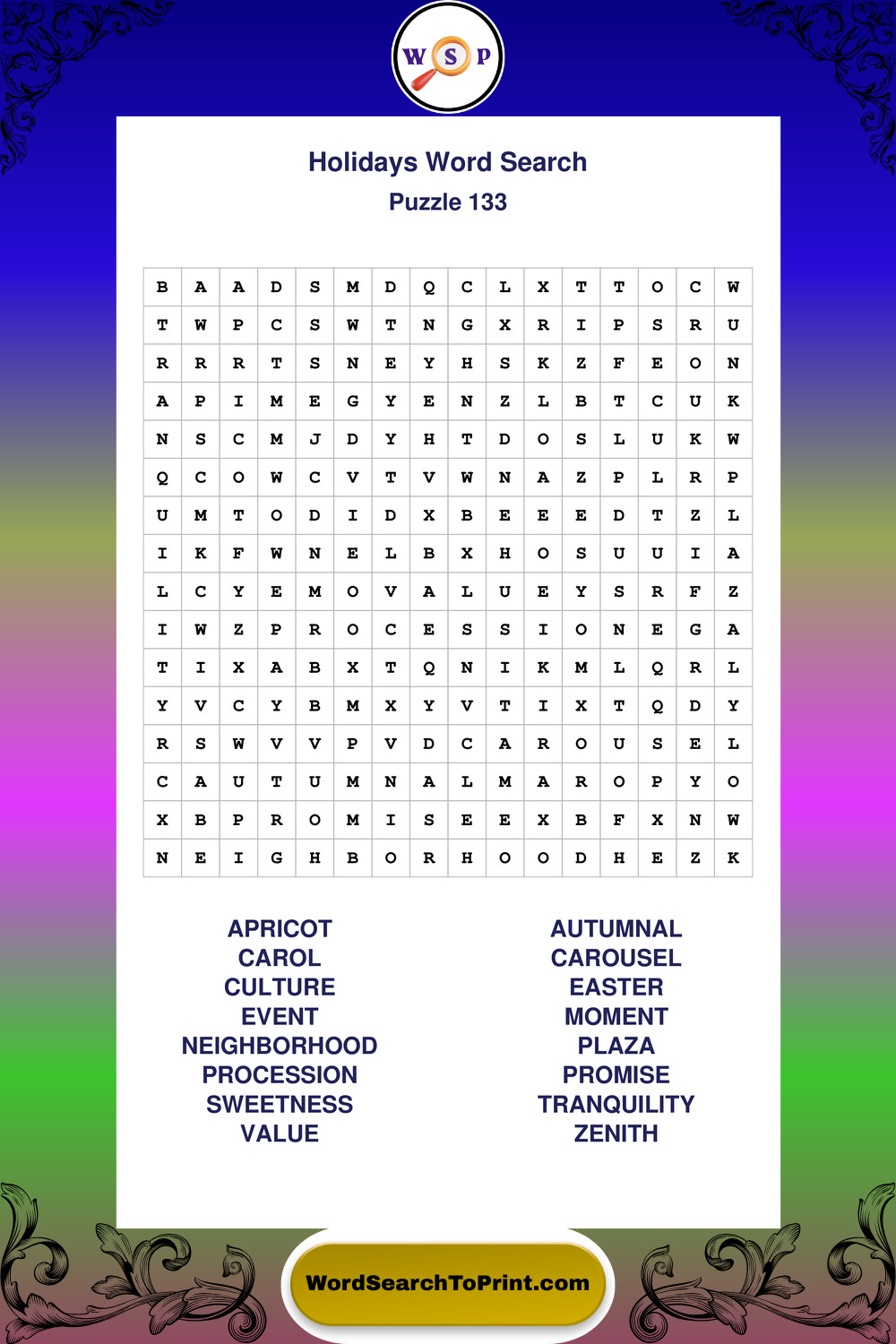 Find easy-to-read large print Holidays wordsearches designed for peaceful focus and simple, enjoyable solving.