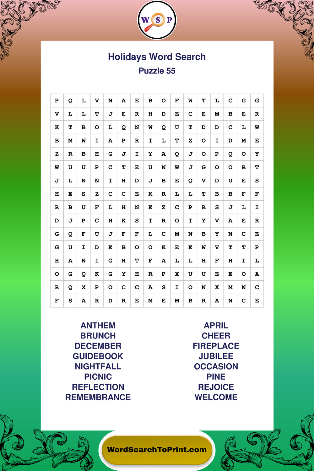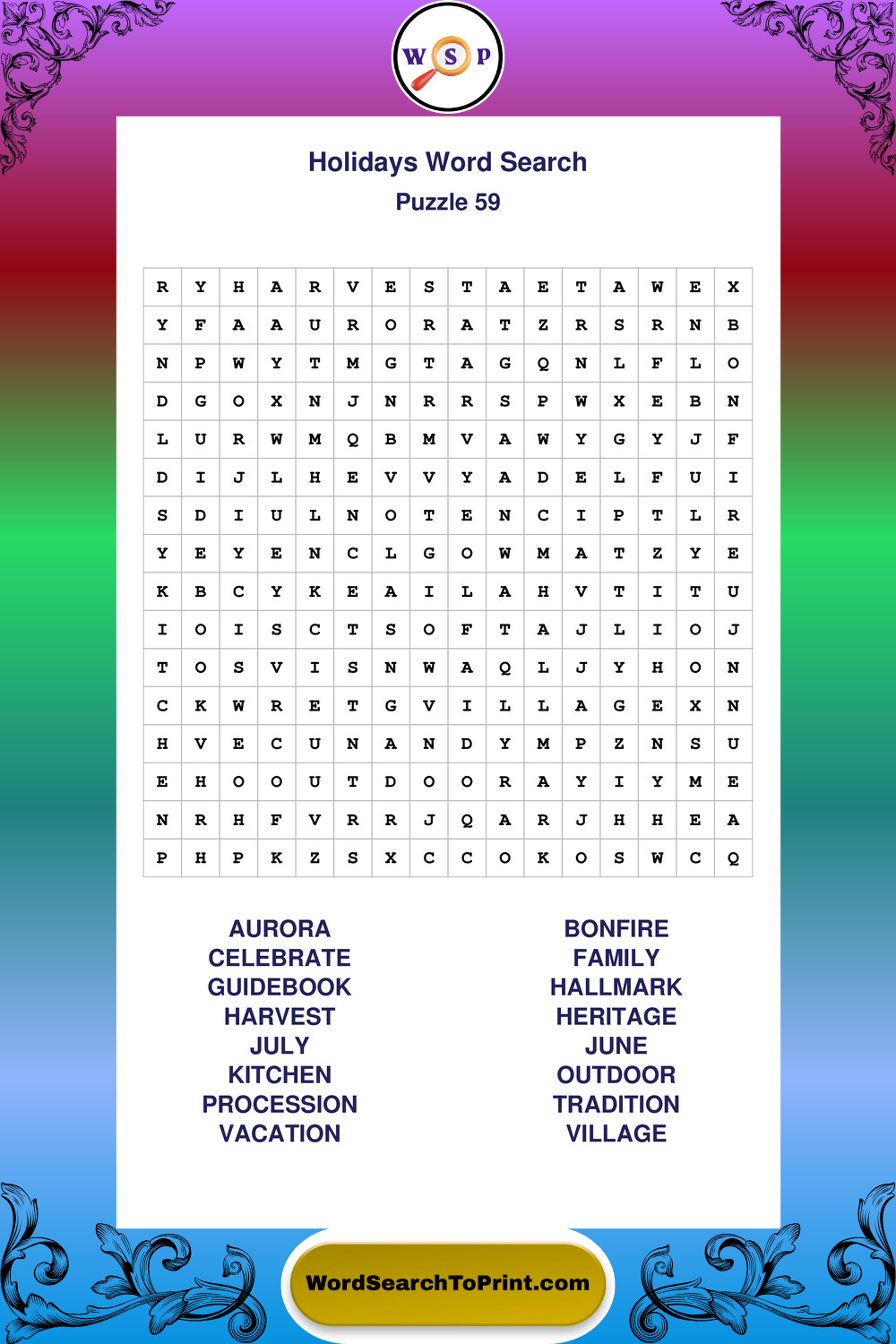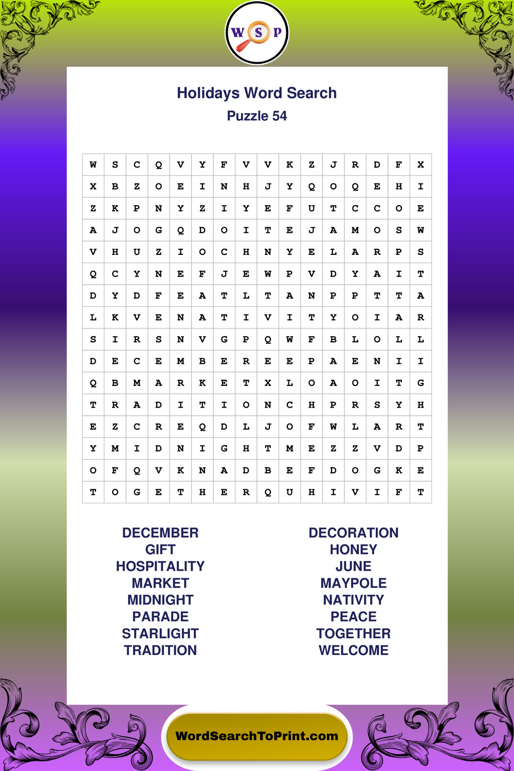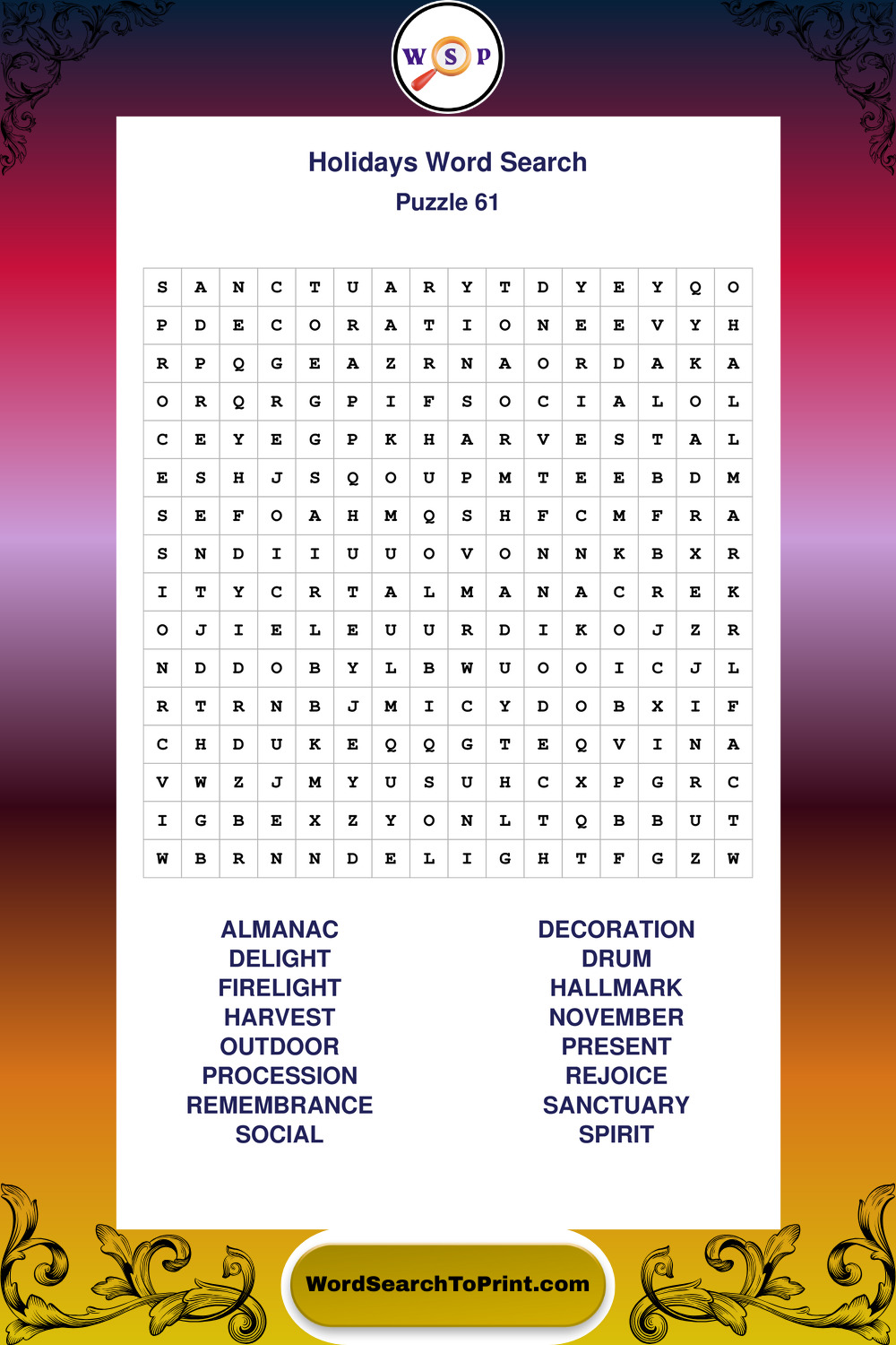 Find easy-to-read large print Holidays wordsearches designed for peaceful focus and simple, enjoyable solving.