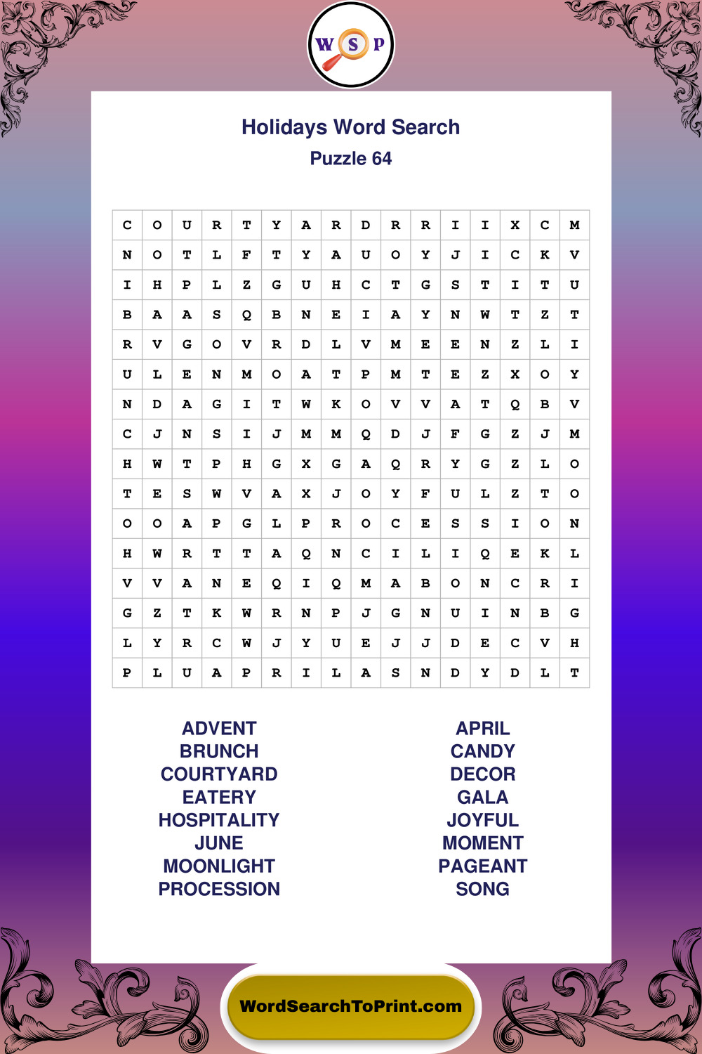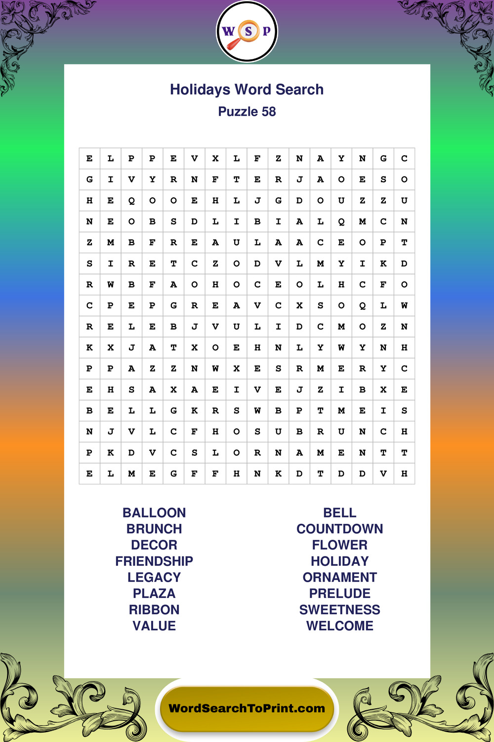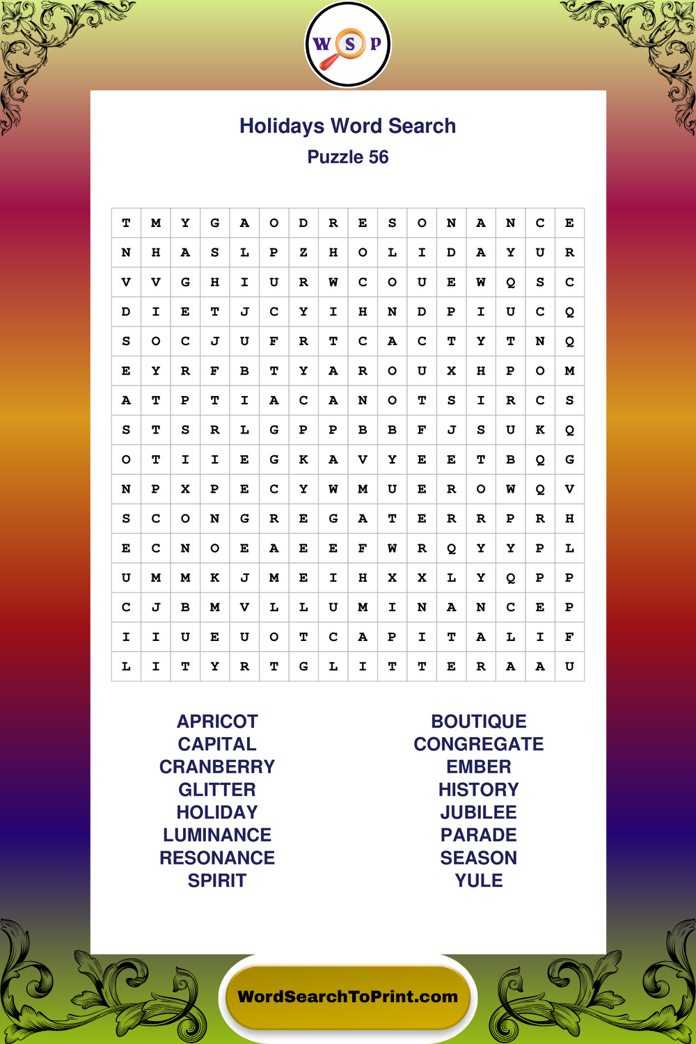 Find easy-to-read large print Holidays wordsearches designed for peaceful focus and simple, enjoyable solving.