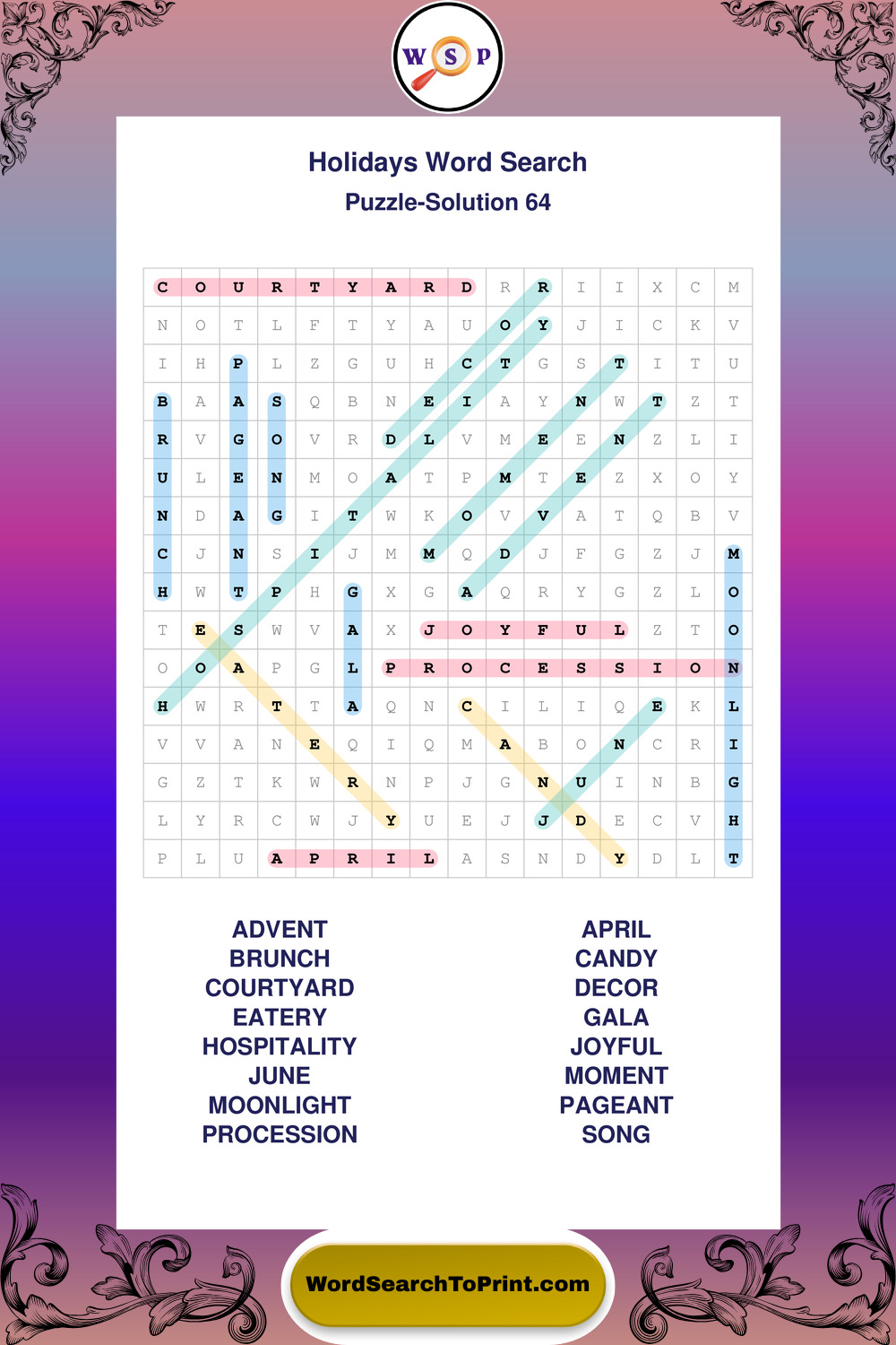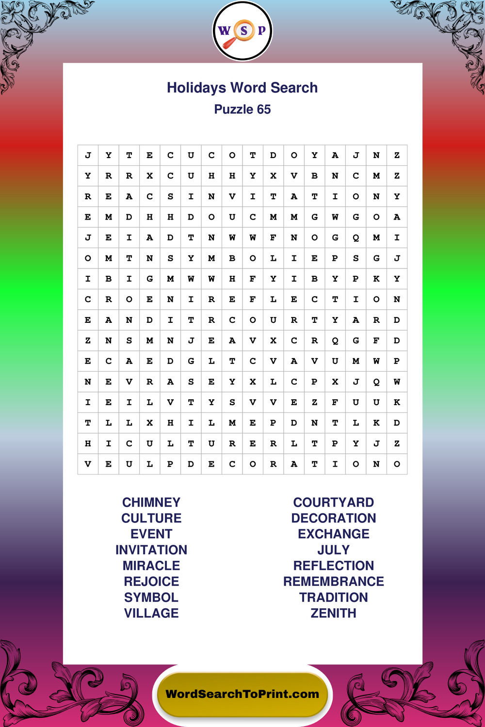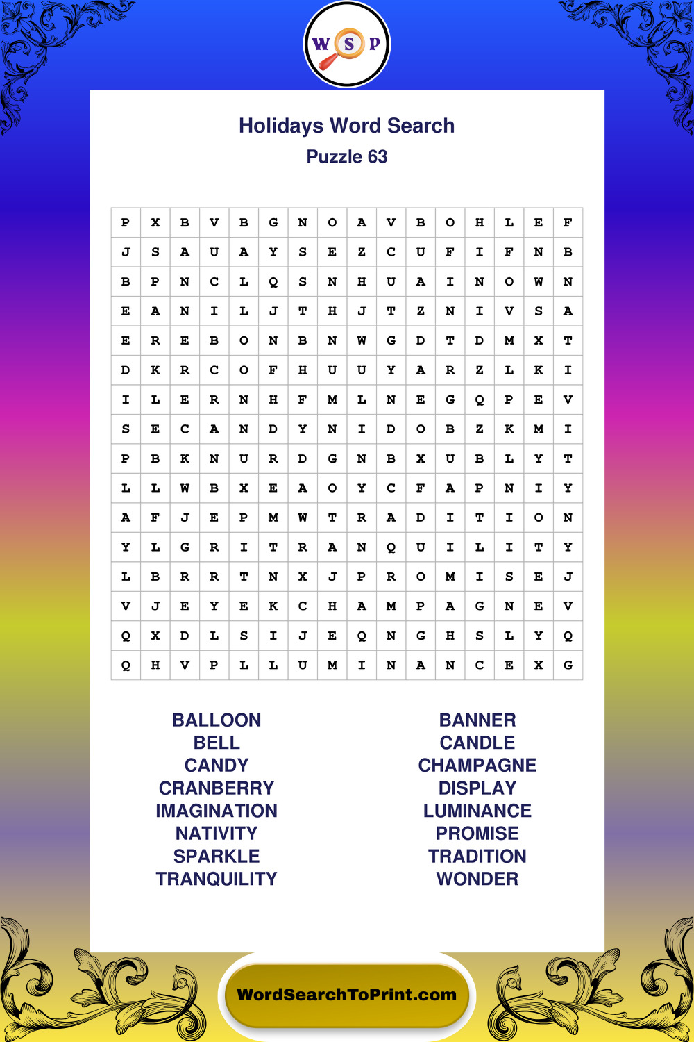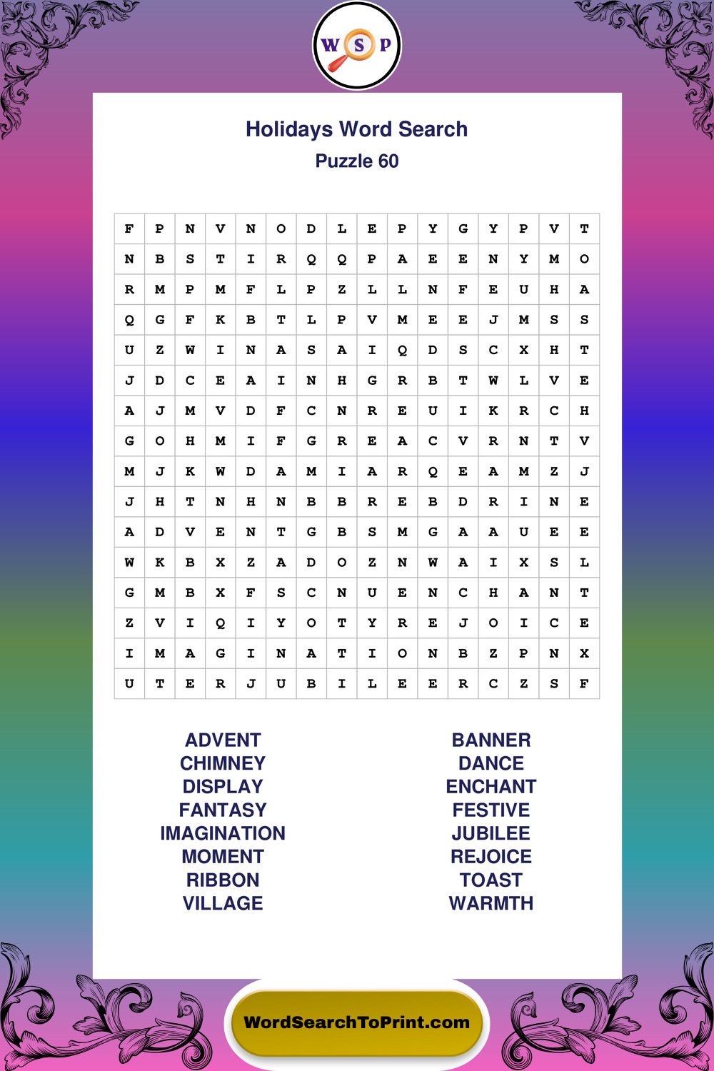 Find easy-to-read large print Holidays wordsearches designed for peaceful focus and simple, enjoyable solving.
