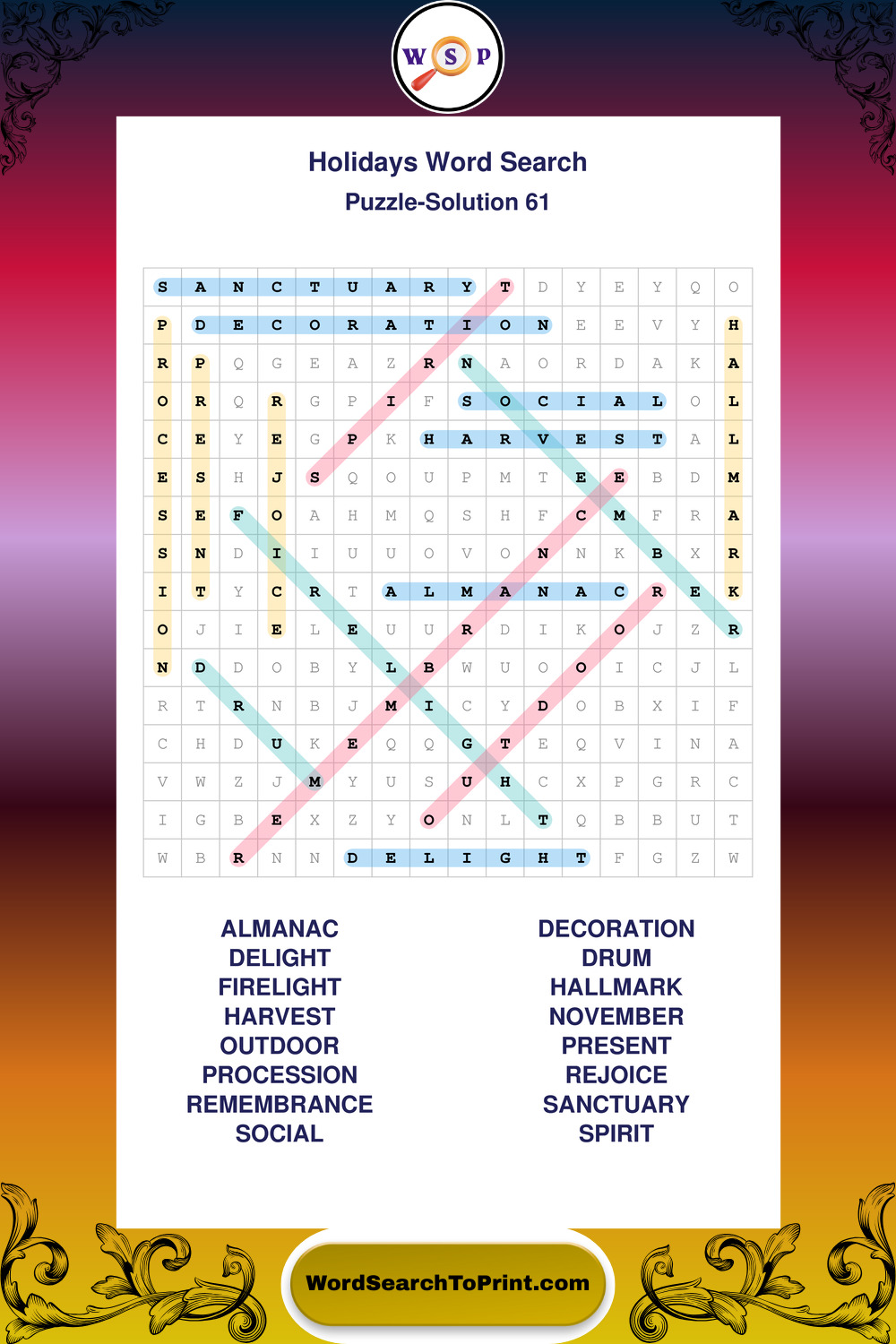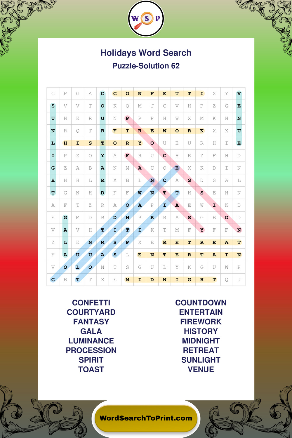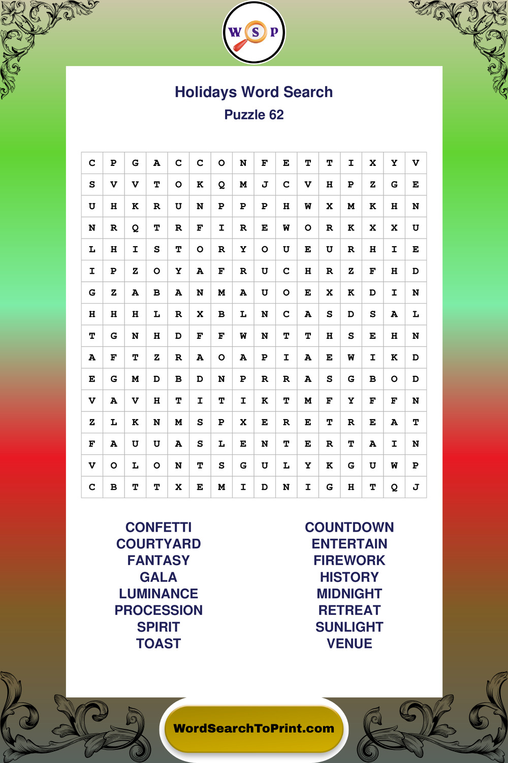 Printable Holidays Wordsearch Puzzles