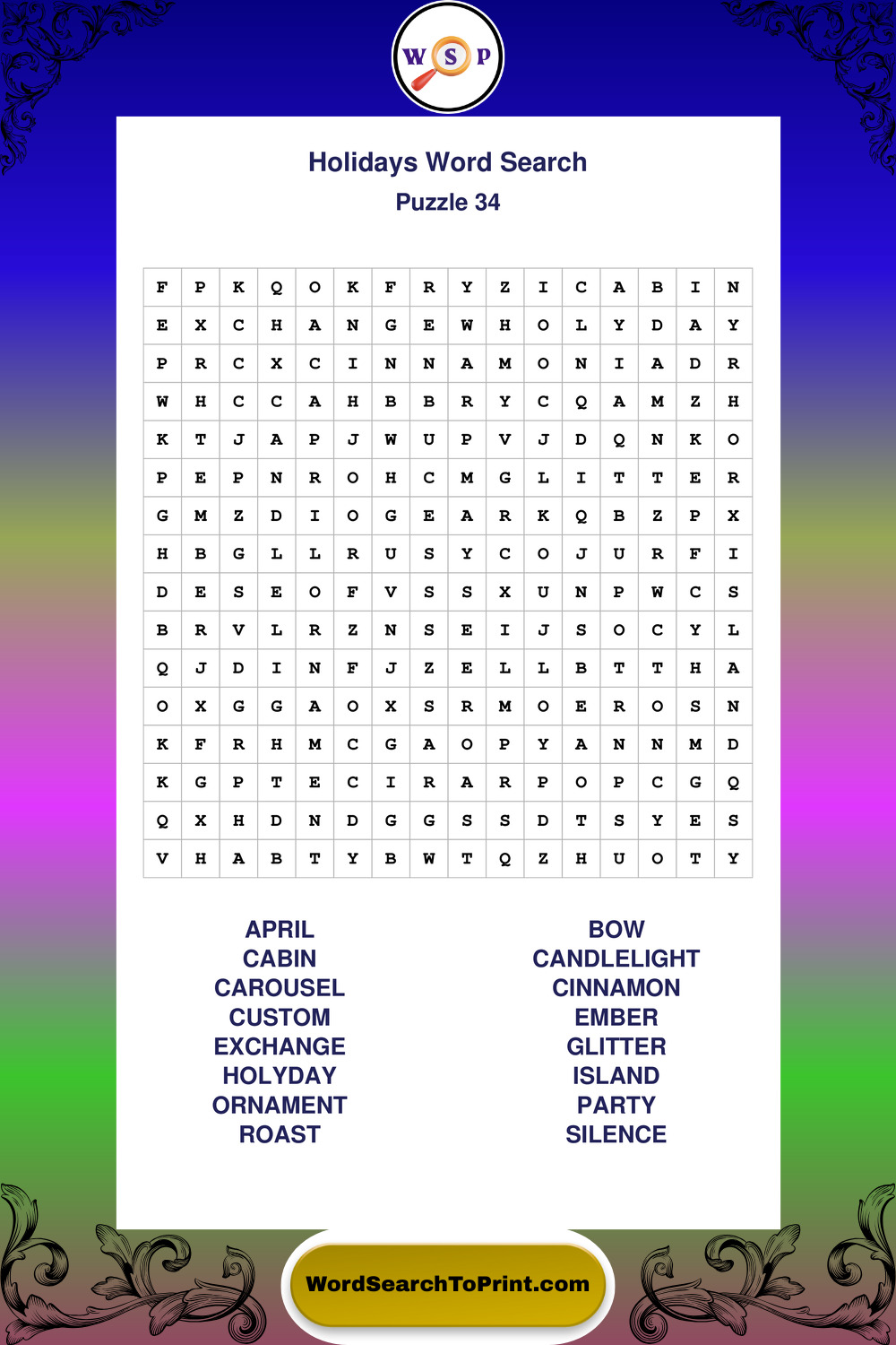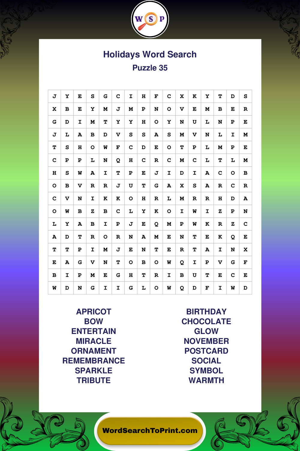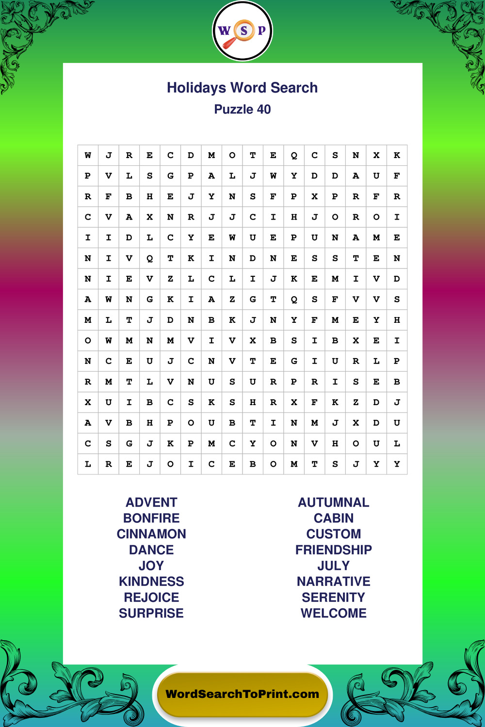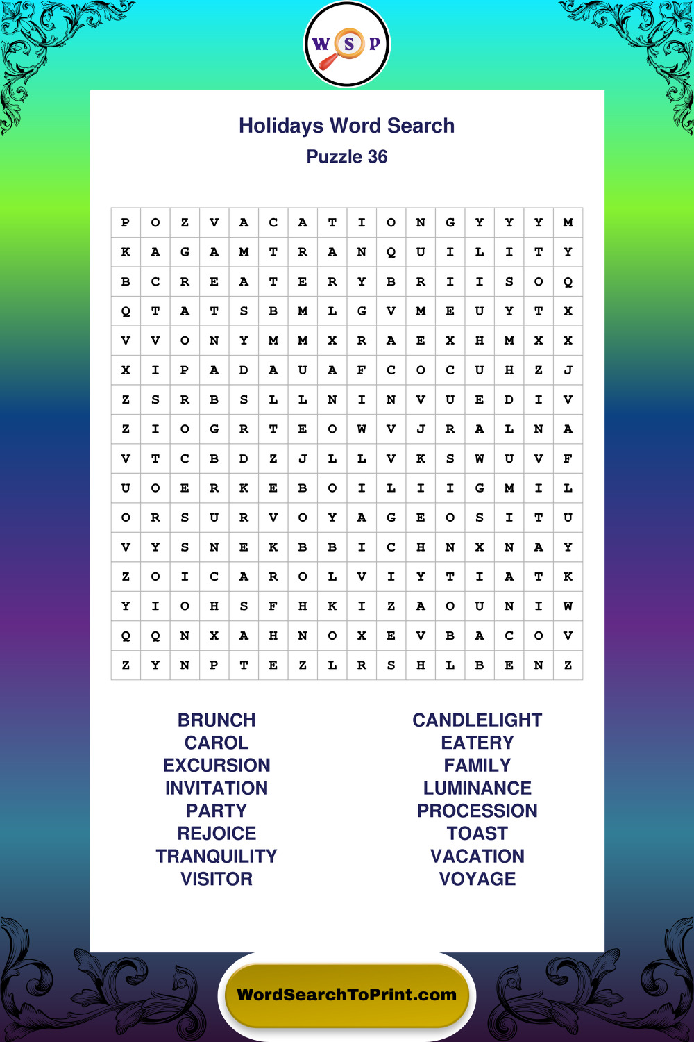Find easy-to-read large print Holidays wordsearches designed for peaceful focus and simple, enjoyable solving.