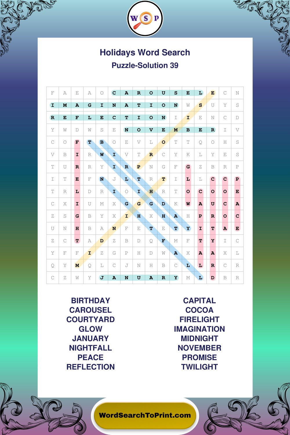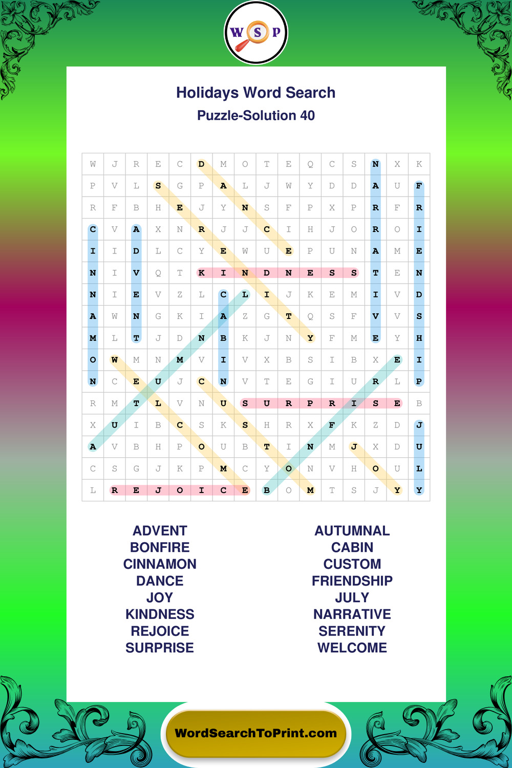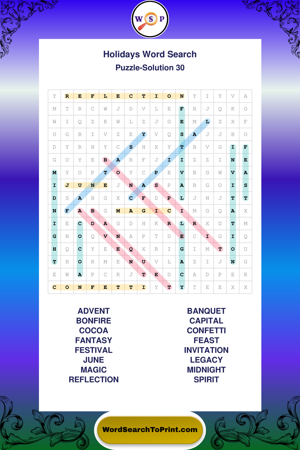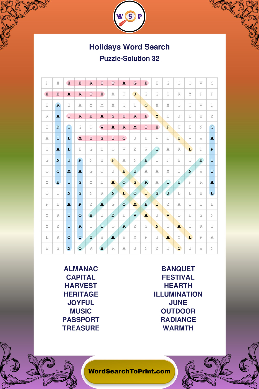 Find easy-to-read large print Holidays wordsearches designed for peaceful focus and simple, enjoyable solving.