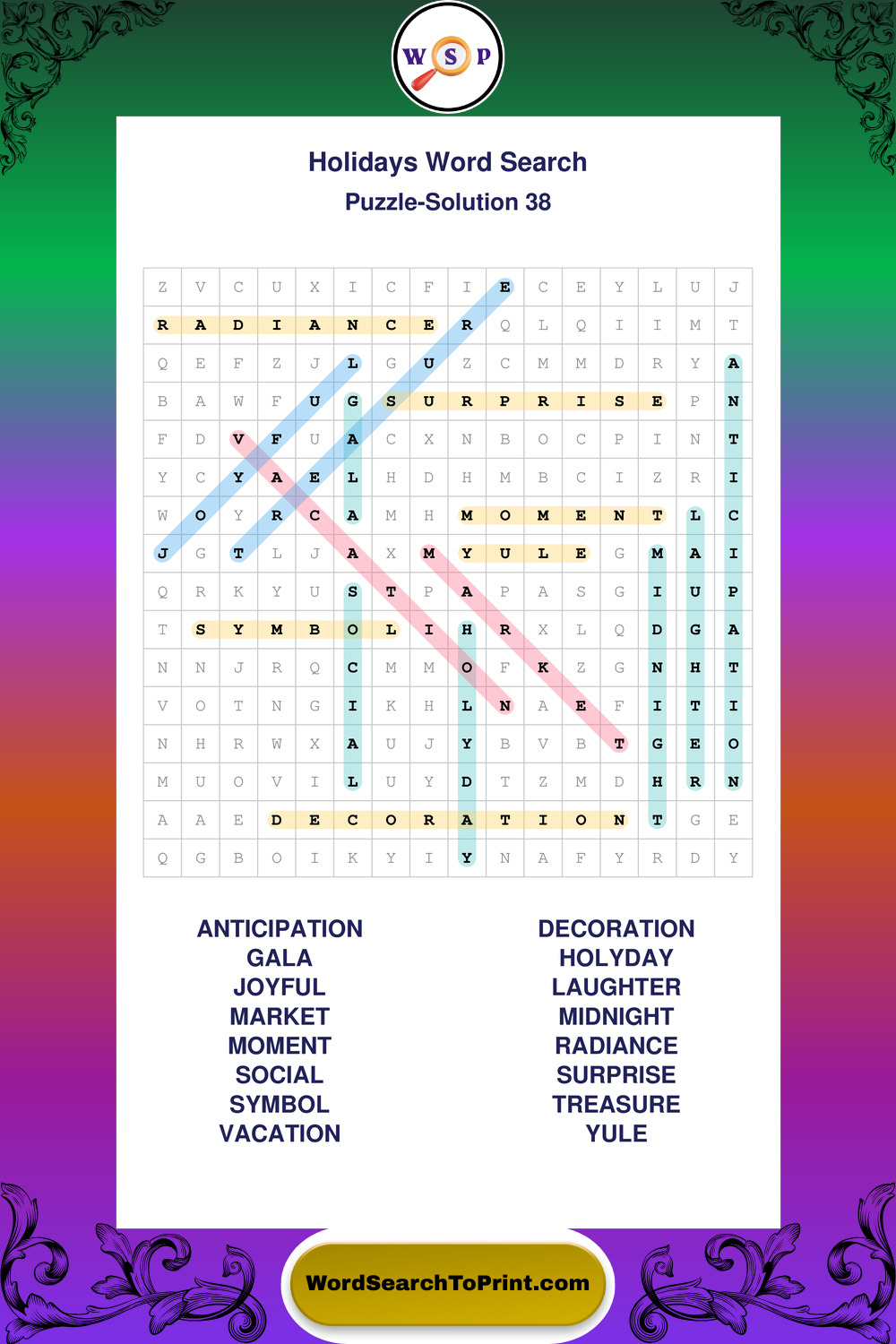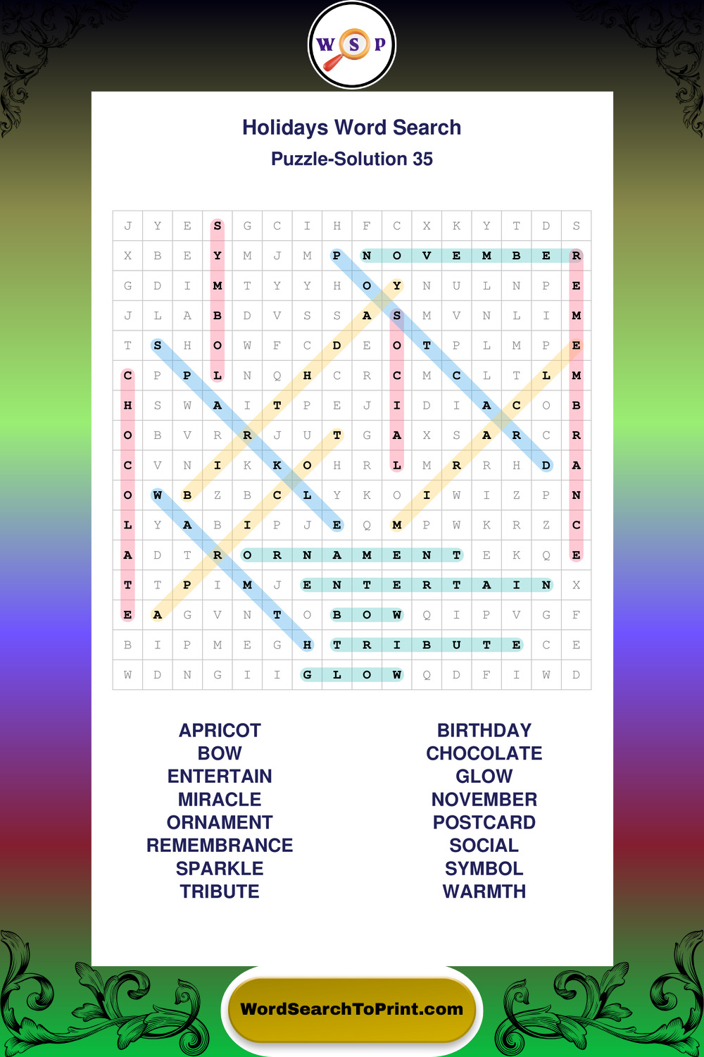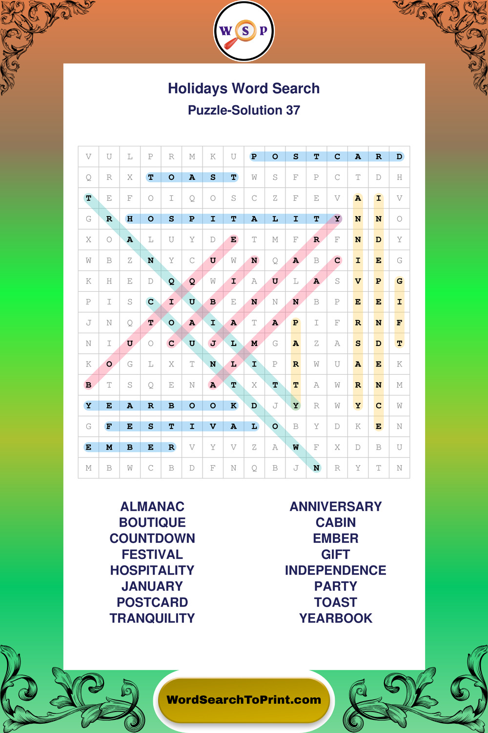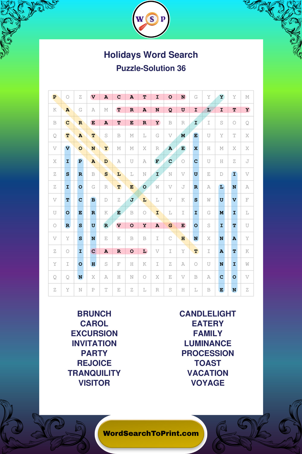 Find easy-to-read large print Holidays wordsearches designed for peaceful focus and simple, enjoyable solving.