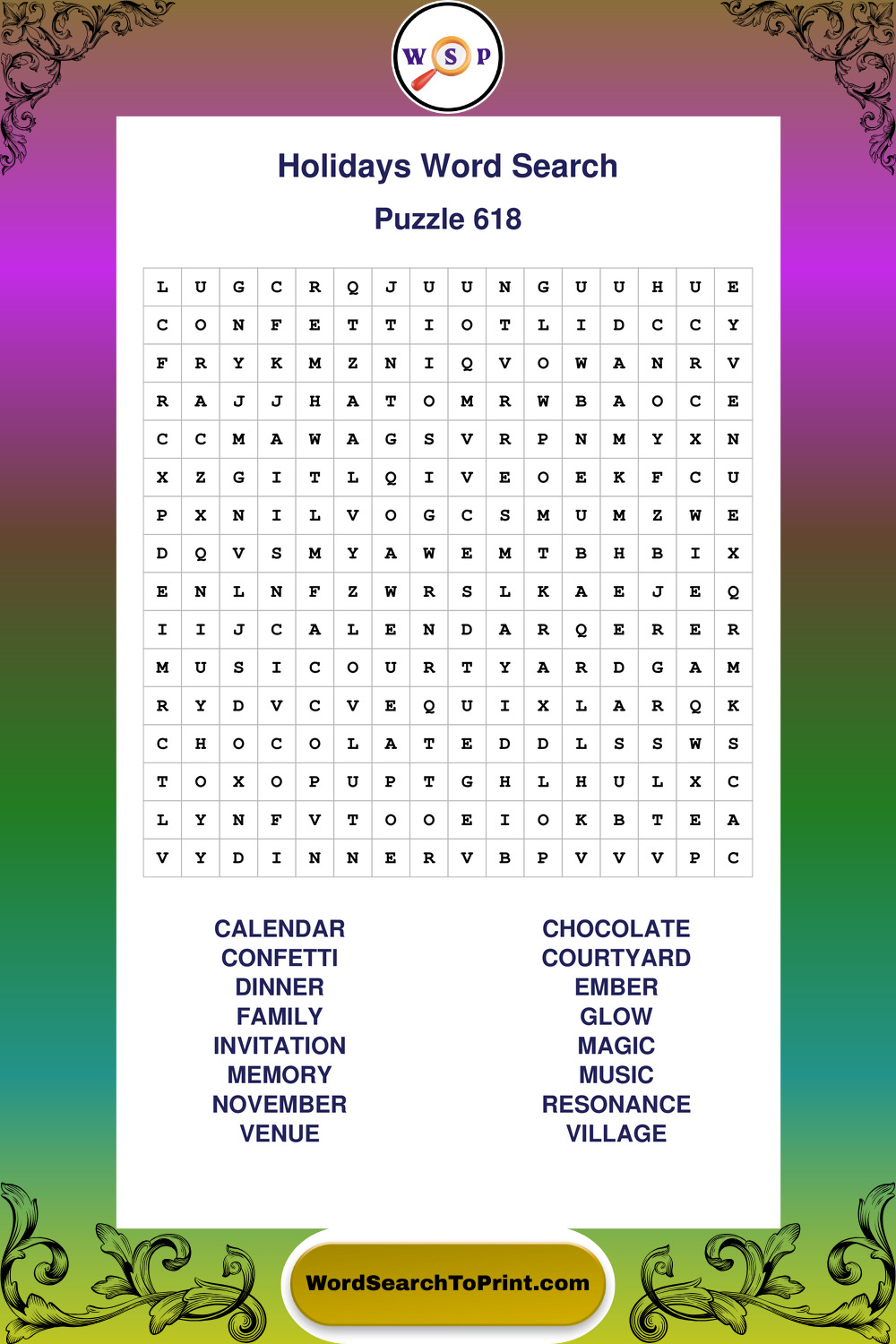 These puzzles include vocabulary connected to traditions, celebrations, festive events, and meaningful moments throughout the year. They offer a structured and engaging way to explore this topic while strengthening concentration and vocabulary recognition. You may also enjoy our St Patrick word search puzzles and Valentine word search puzzles.