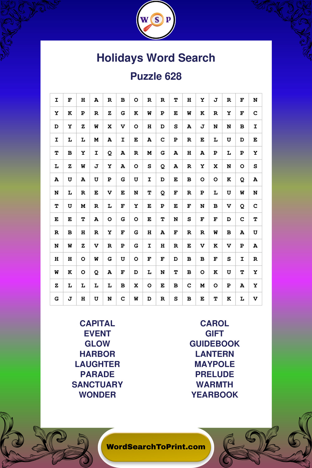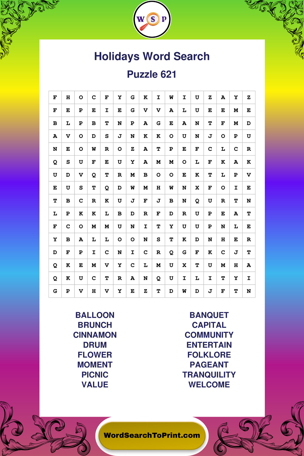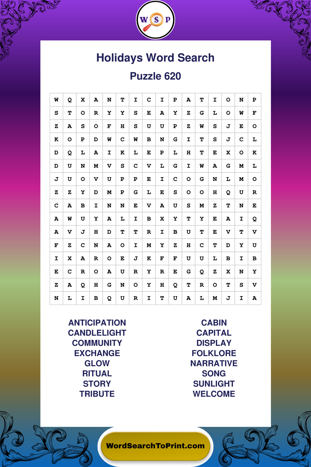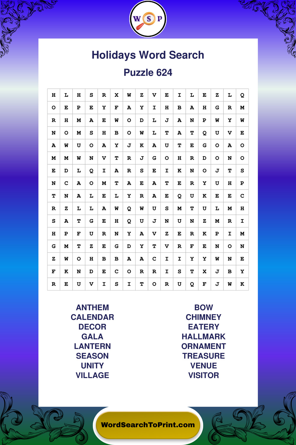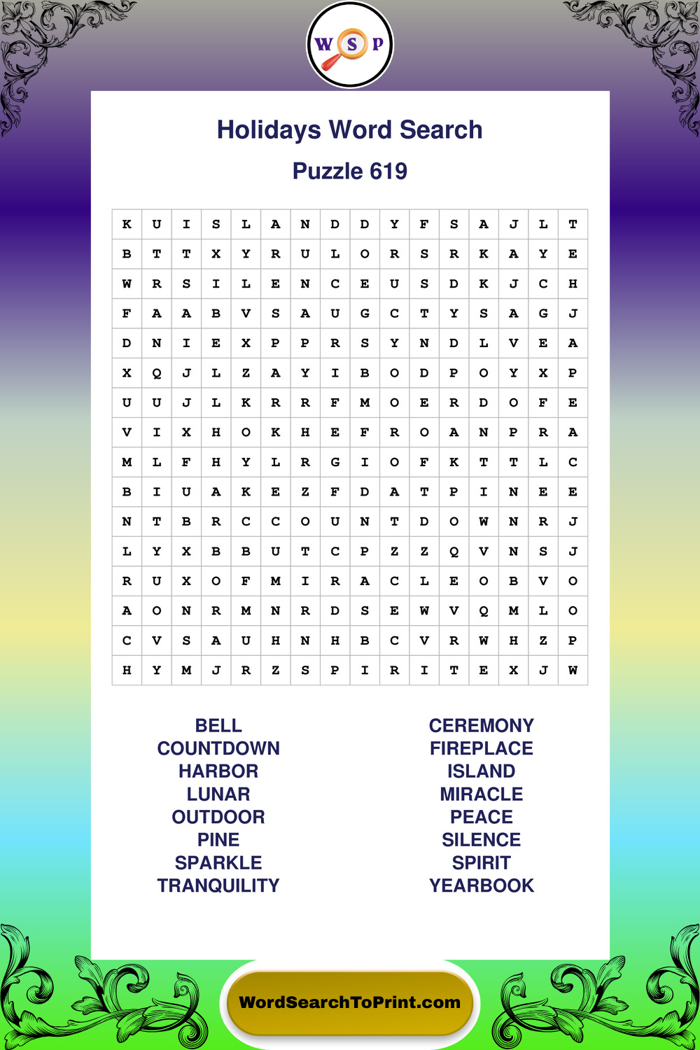 Find easy-to-read large print Holidays wordsearches designed for peaceful focus and simple, enjoyable solving.