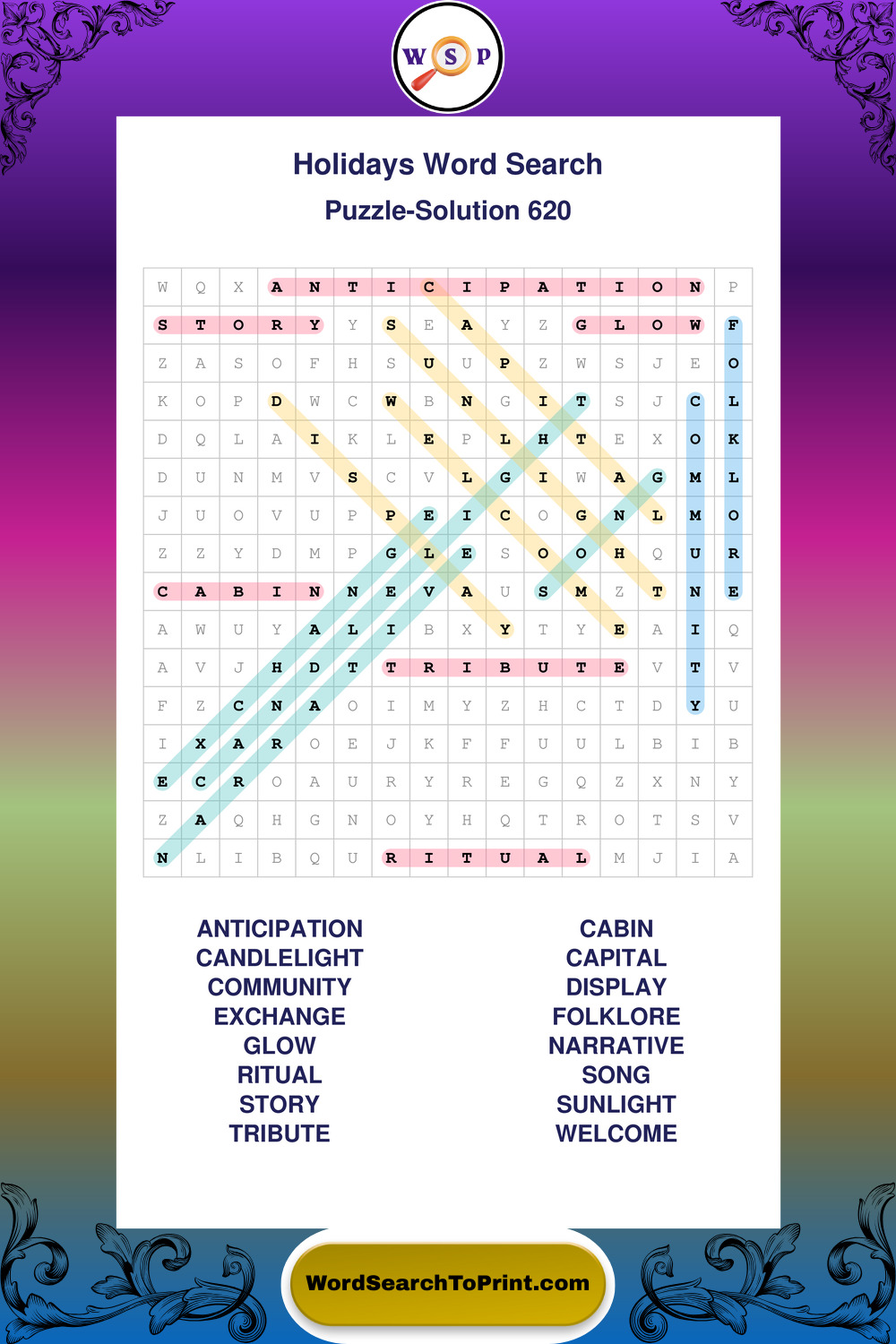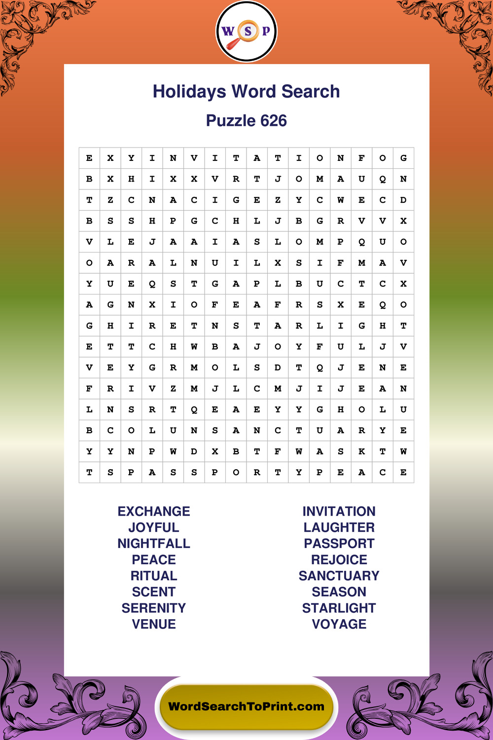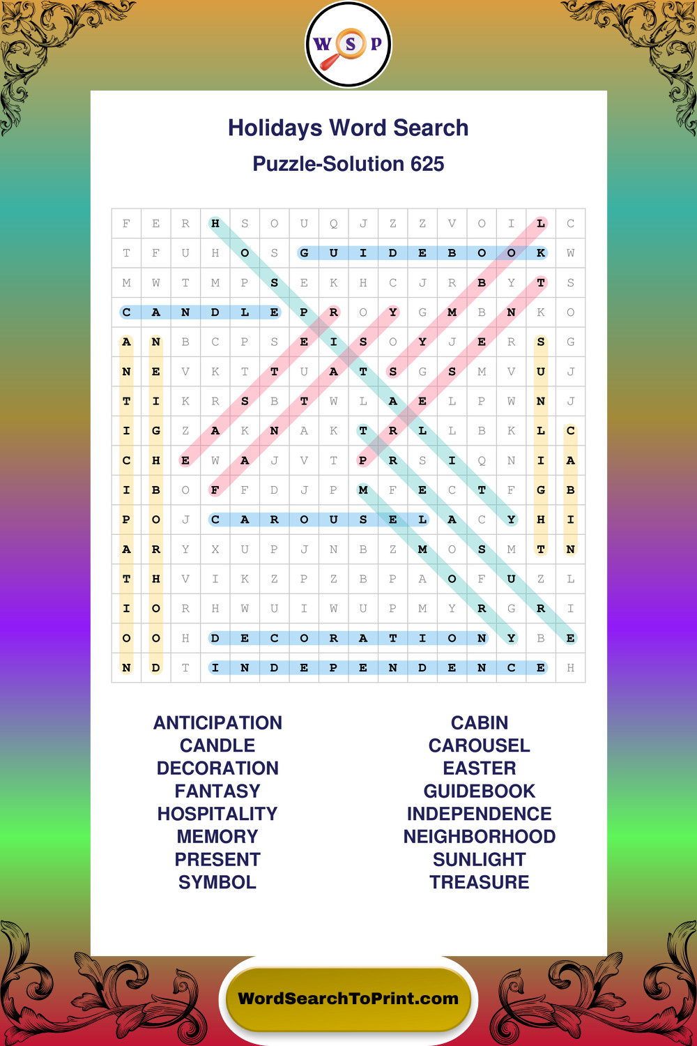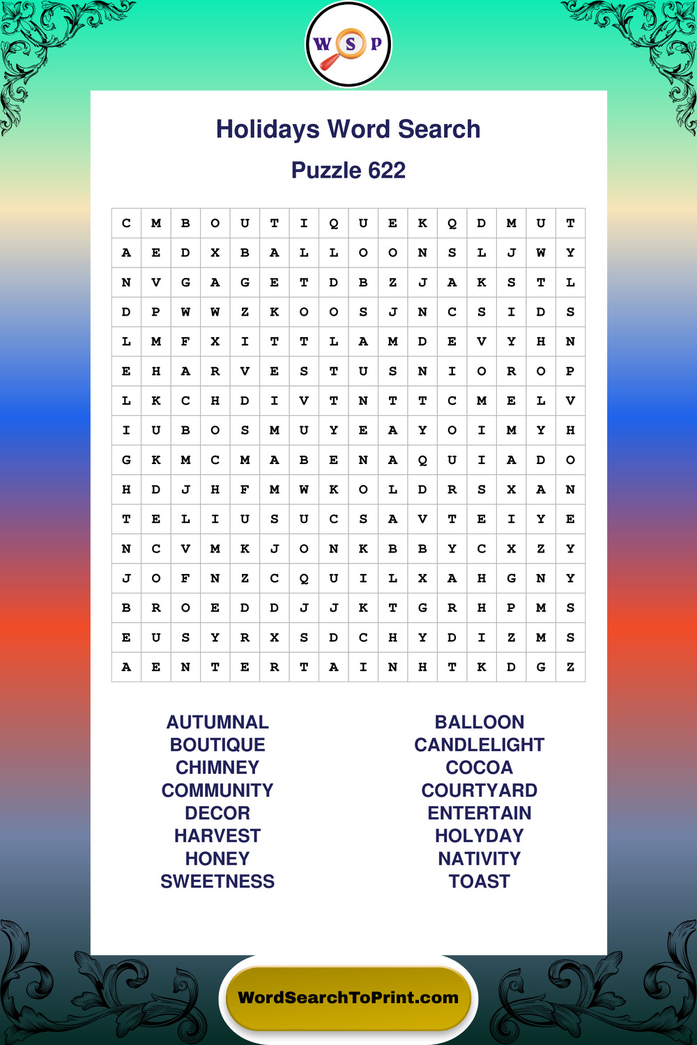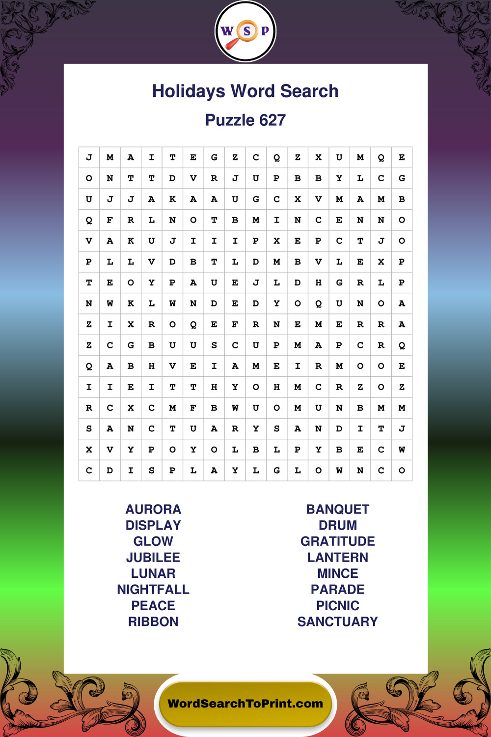 Find easy-to-read large print Holidays wordsearches designed for peaceful focus and simple, enjoyable solving.