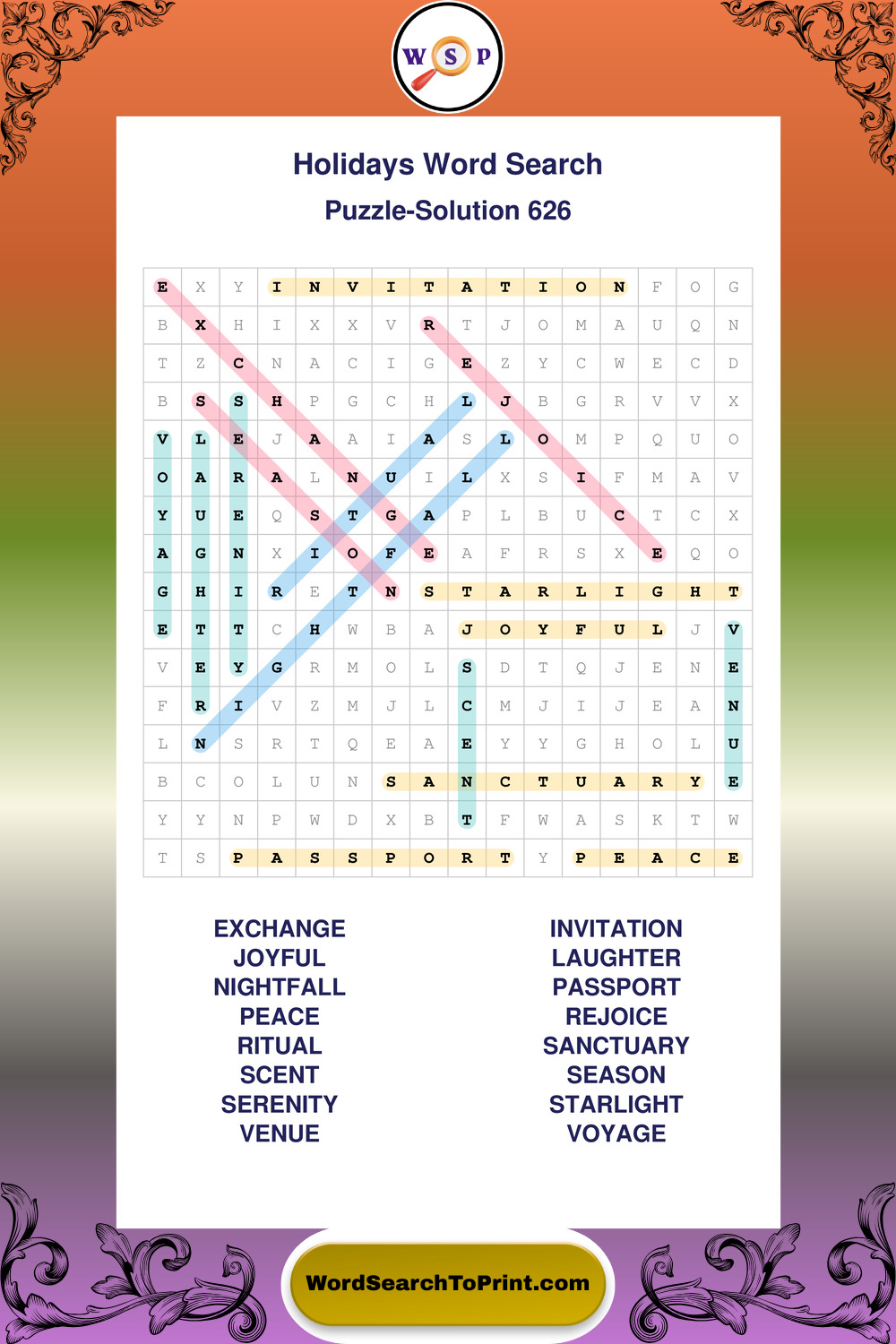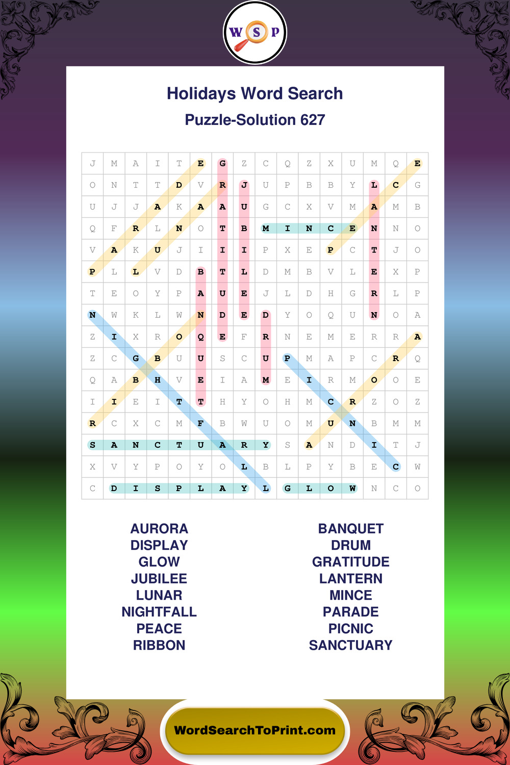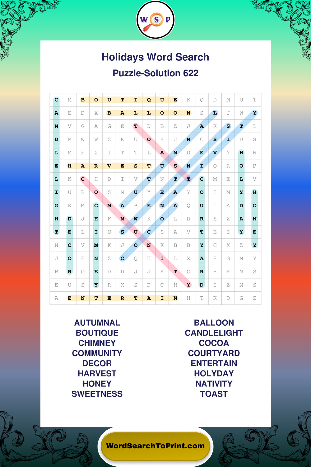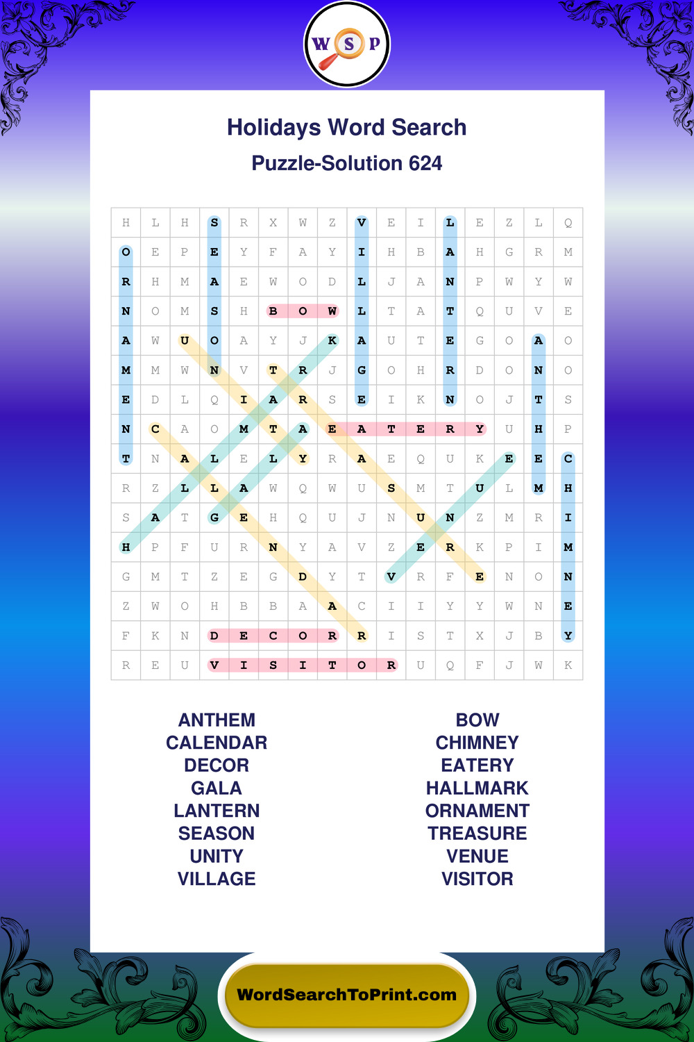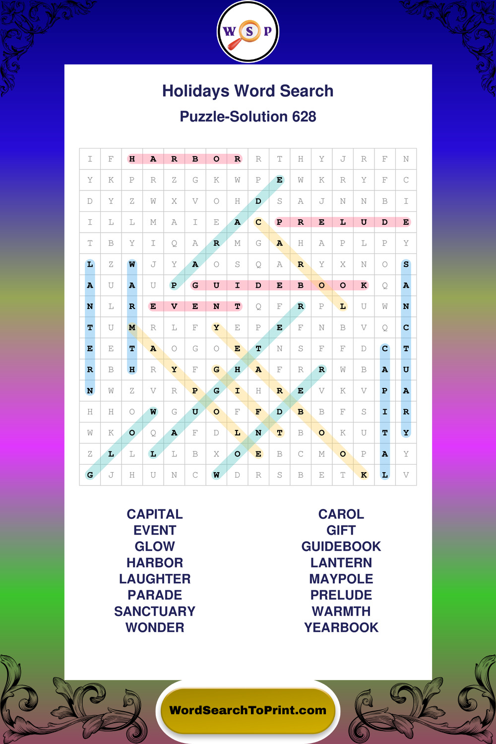 Find easy-to-read large print Holidays wordsearches designed for peaceful focus and simple, enjoyable solving.