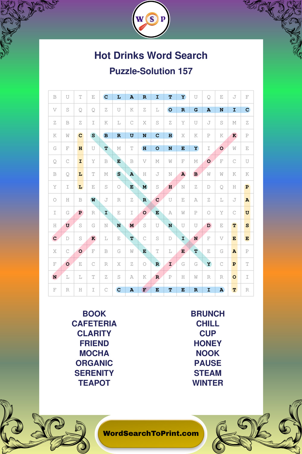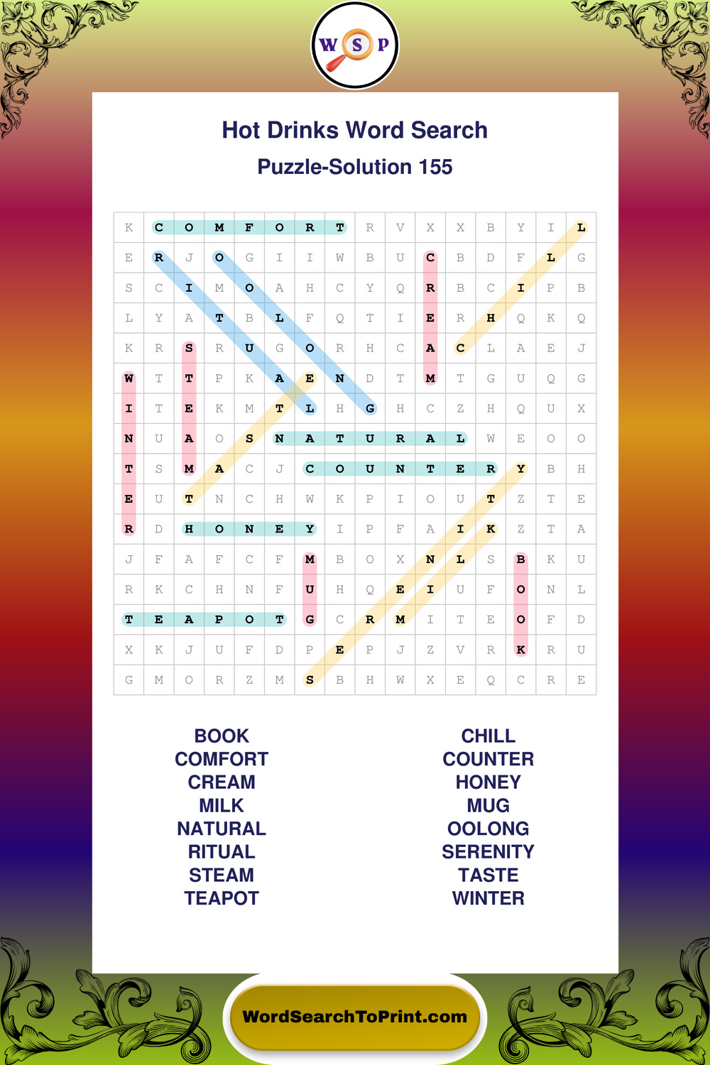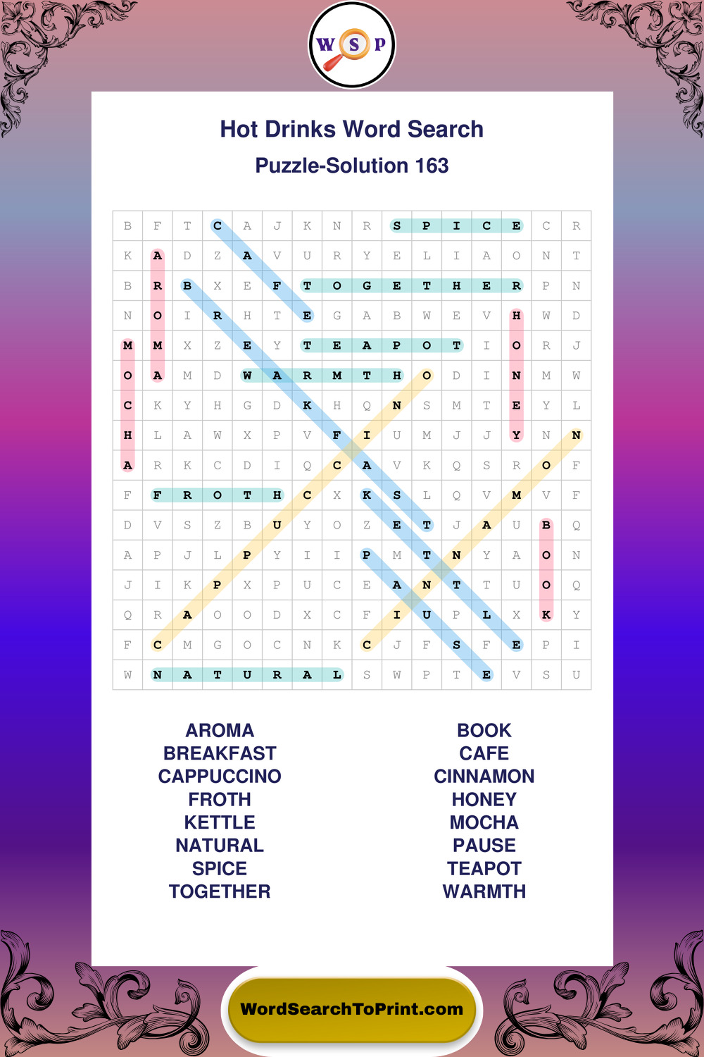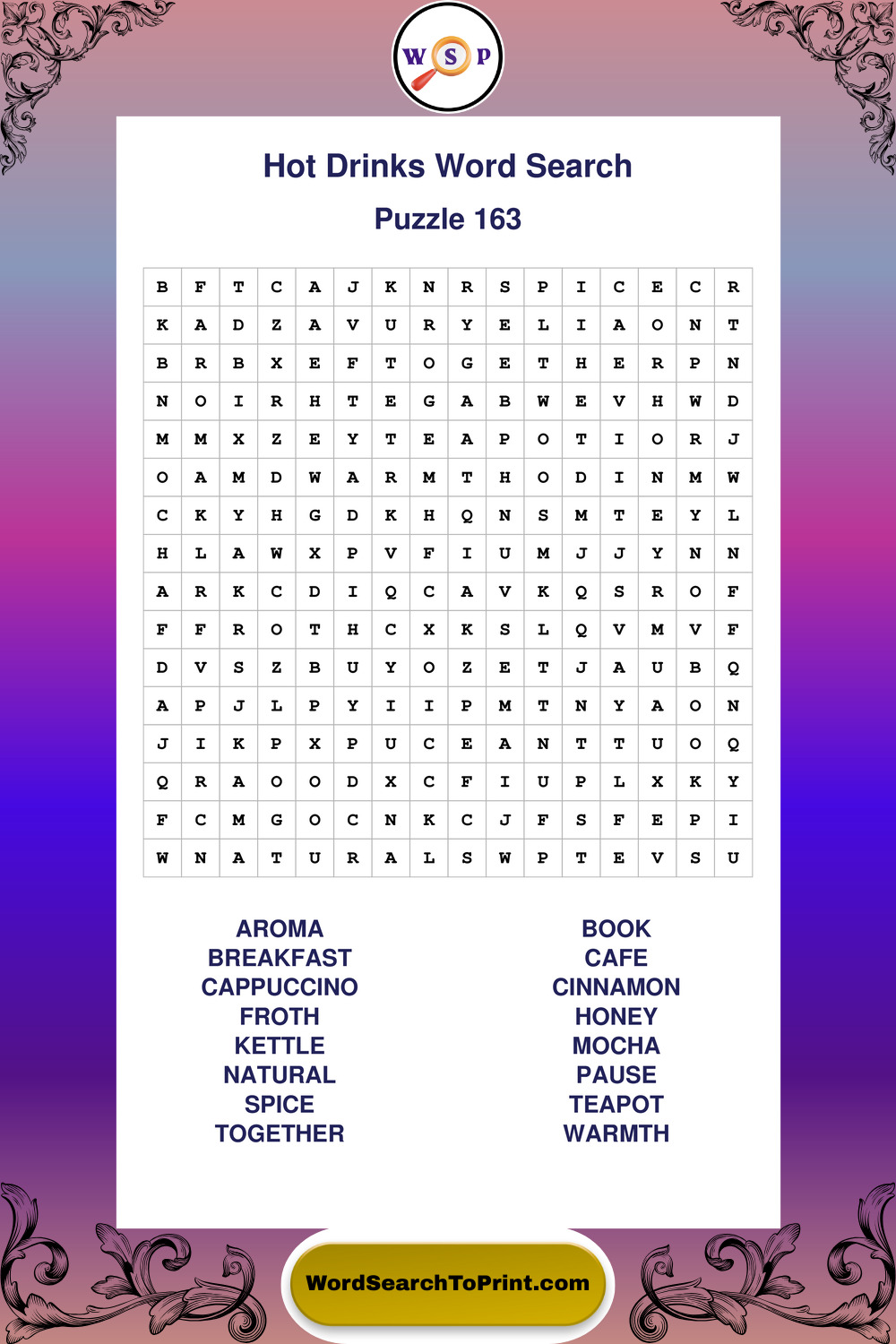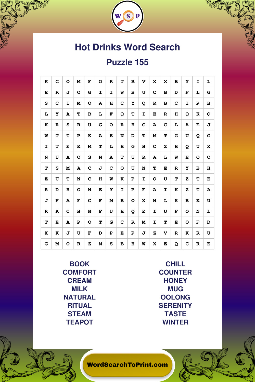 Enjoy large print Hot Drinks wordsearches that balance clarity, simplicity, and enjoyable mental activity.