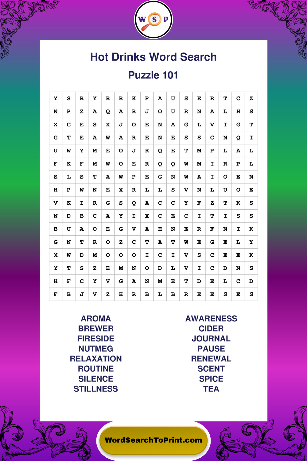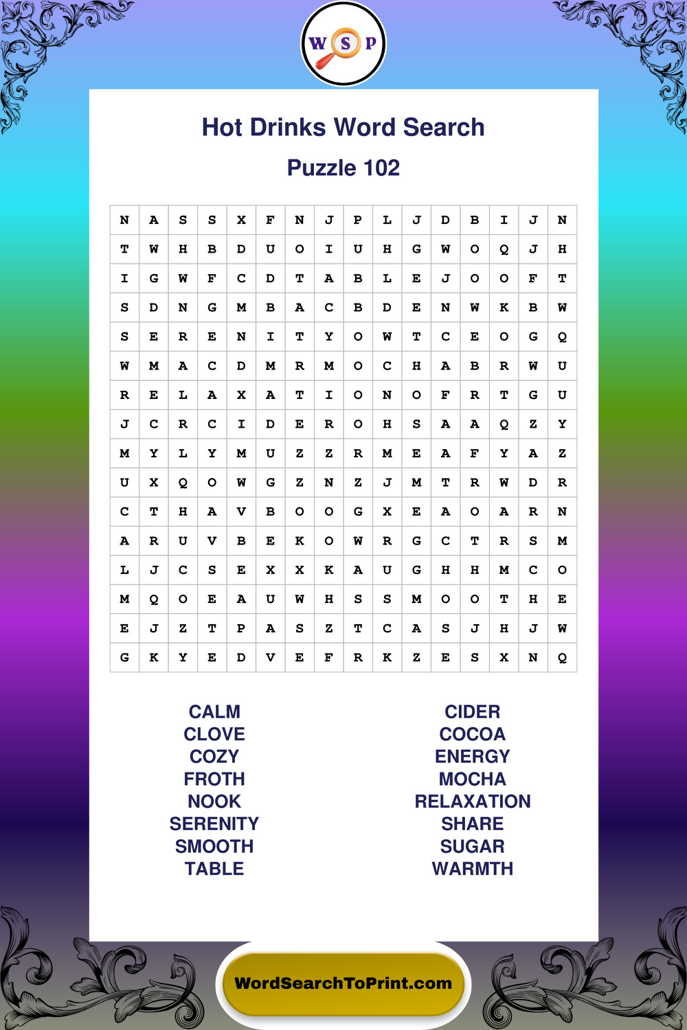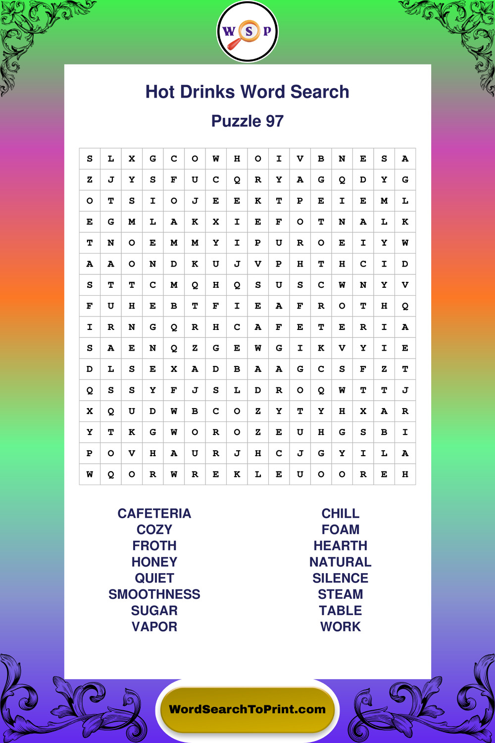 Enjoy large print Hot Drinks wordsearches that balance clarity, simplicity, and enjoyable mental activity.