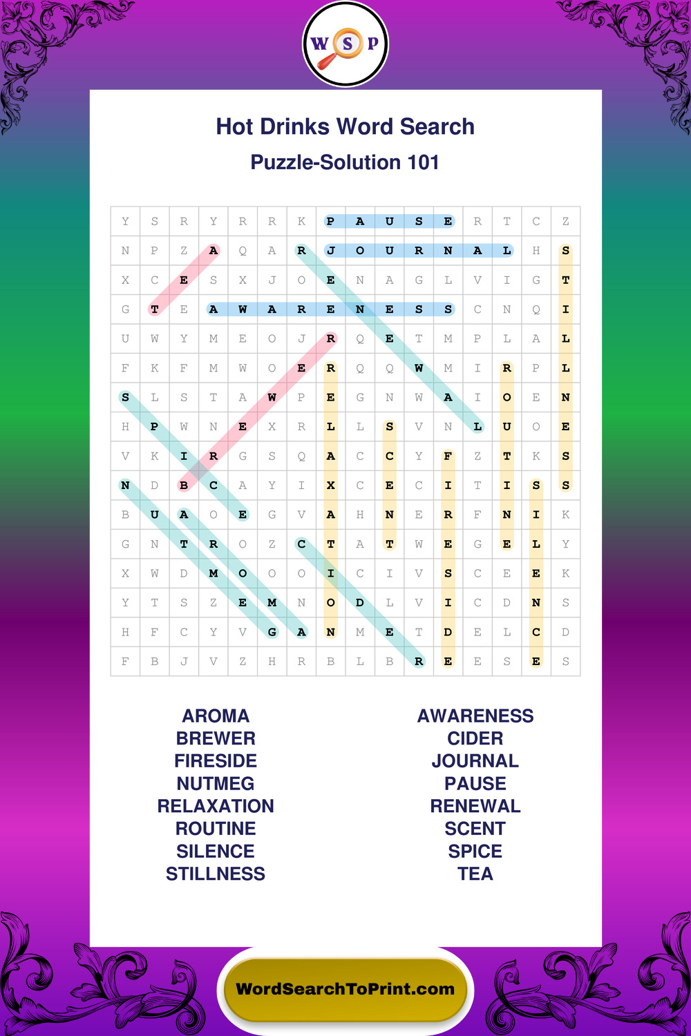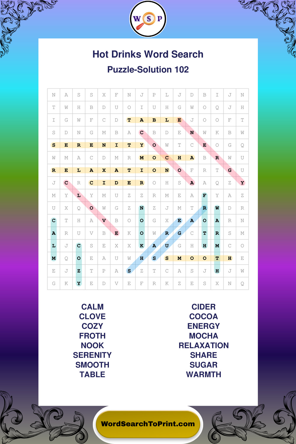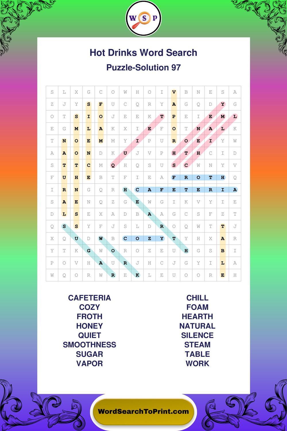 Enjoy large print Hot Drinks wordsearches that balance clarity, simplicity, and enjoyable mental activity.