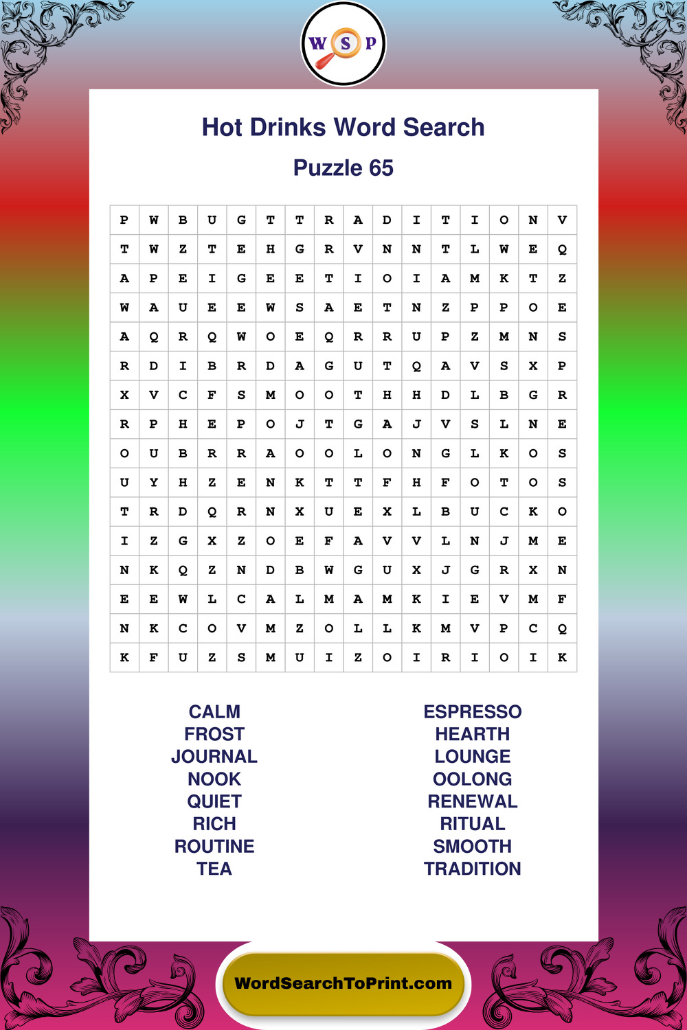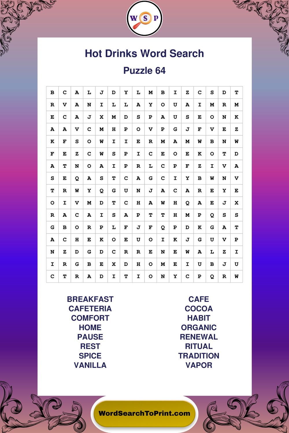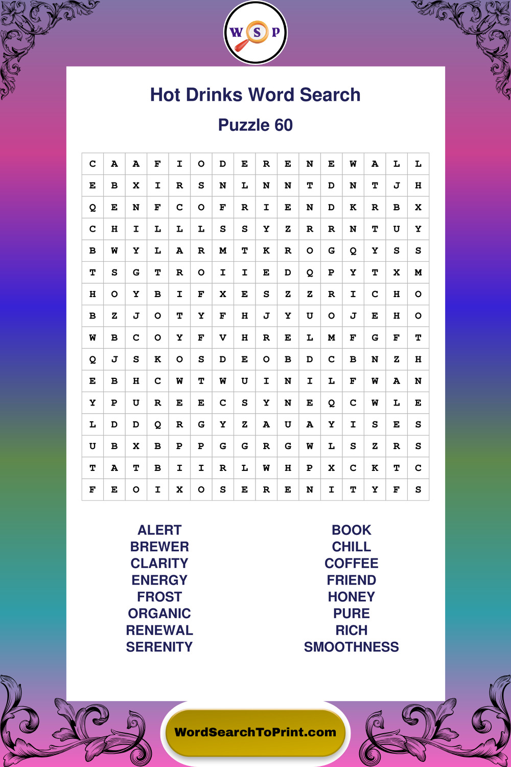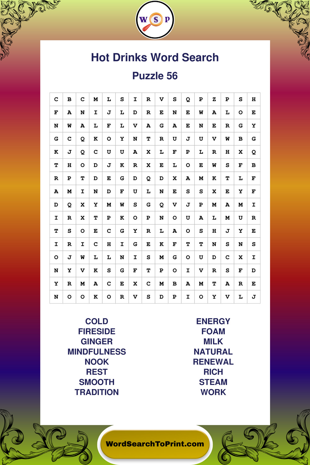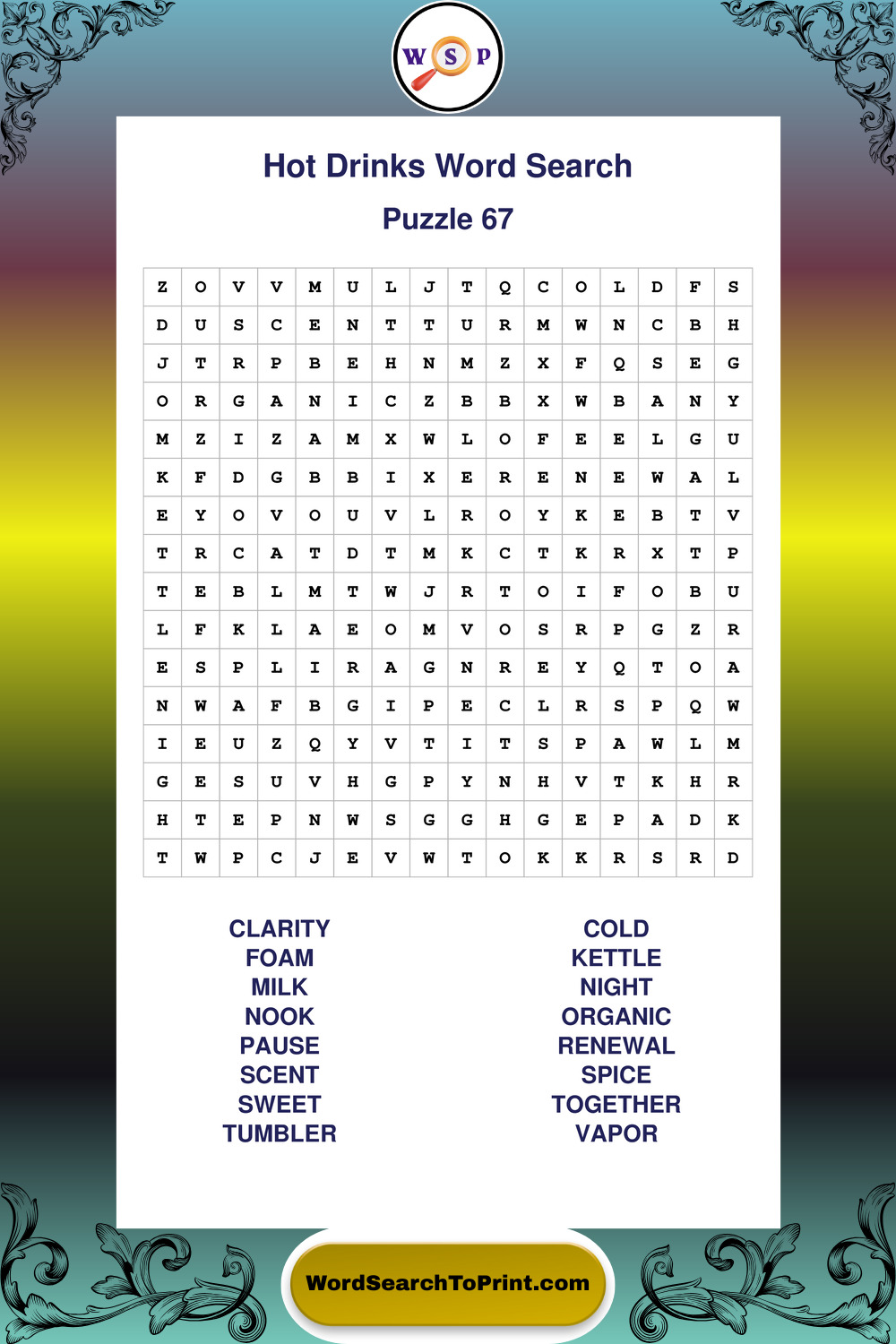 Enjoy large print Hot Drinks wordsearches that balance clarity, simplicity, and enjoyable mental activity.
