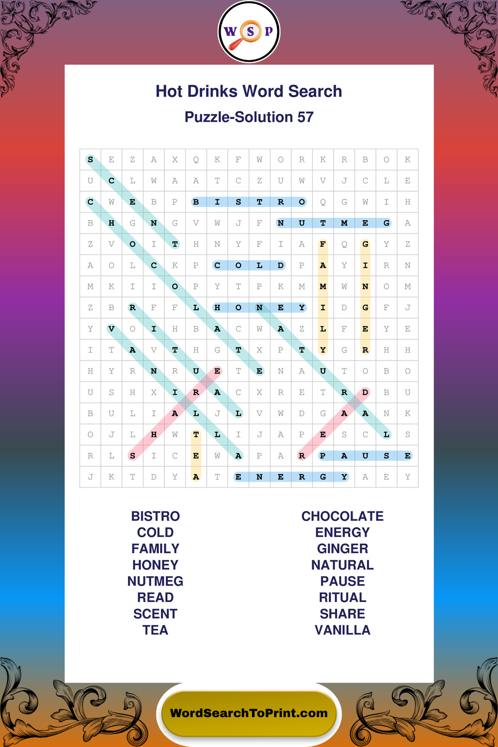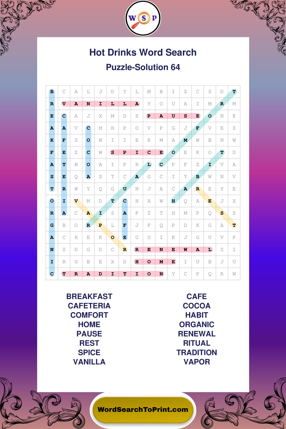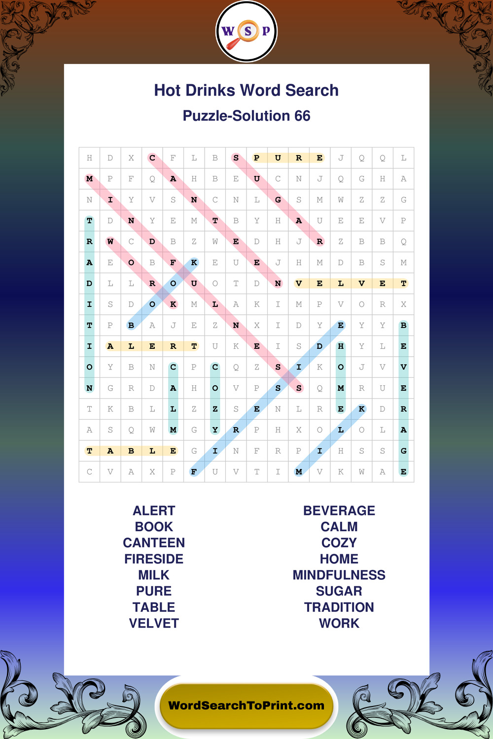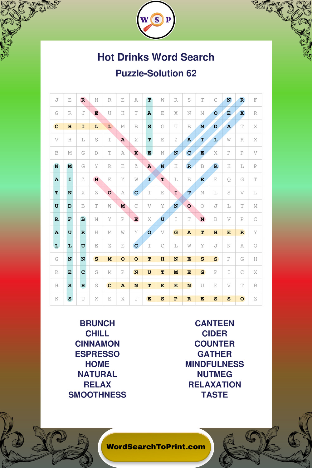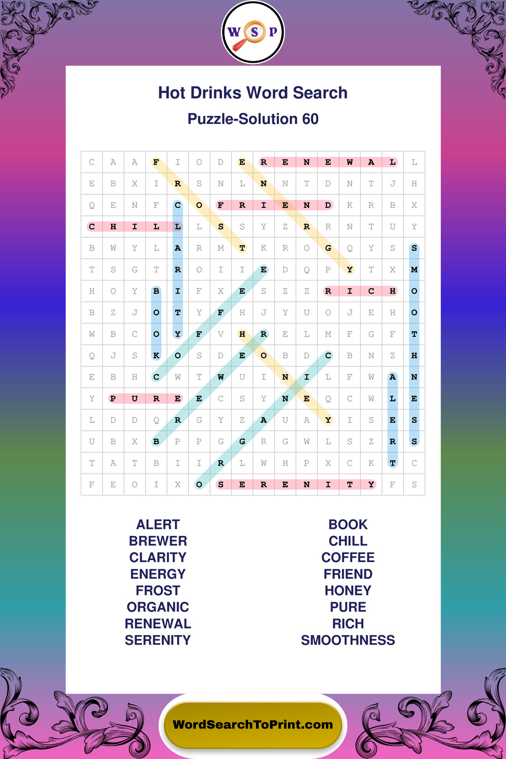 Enjoy large print Hot Drinks wordsearches that balance clarity, simplicity, and enjoyable mental activity.
