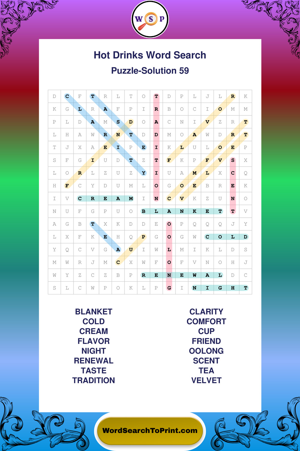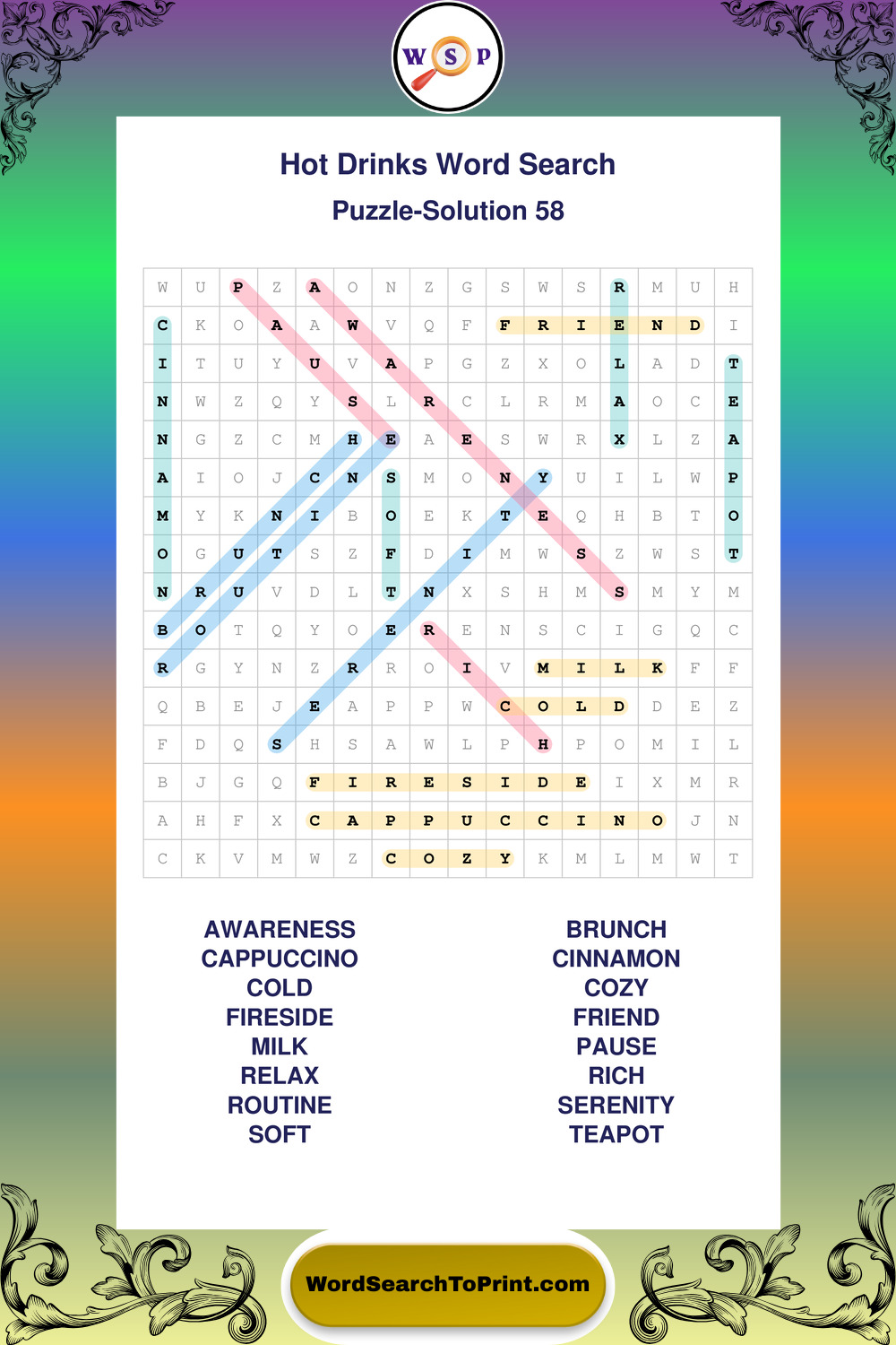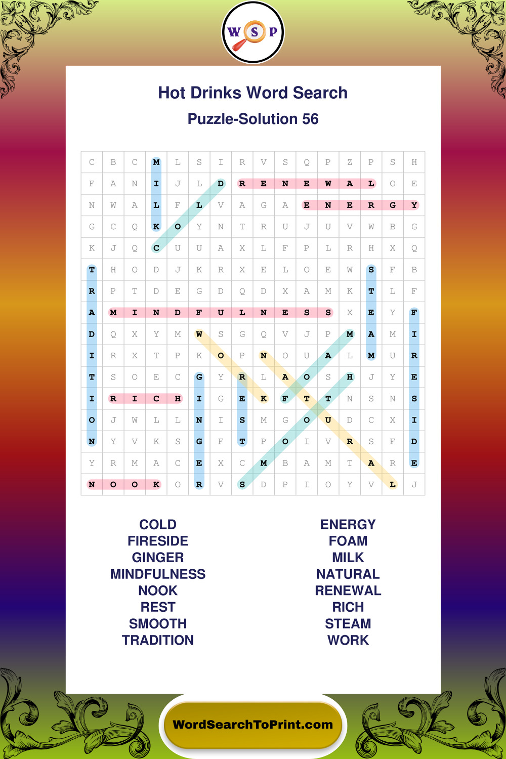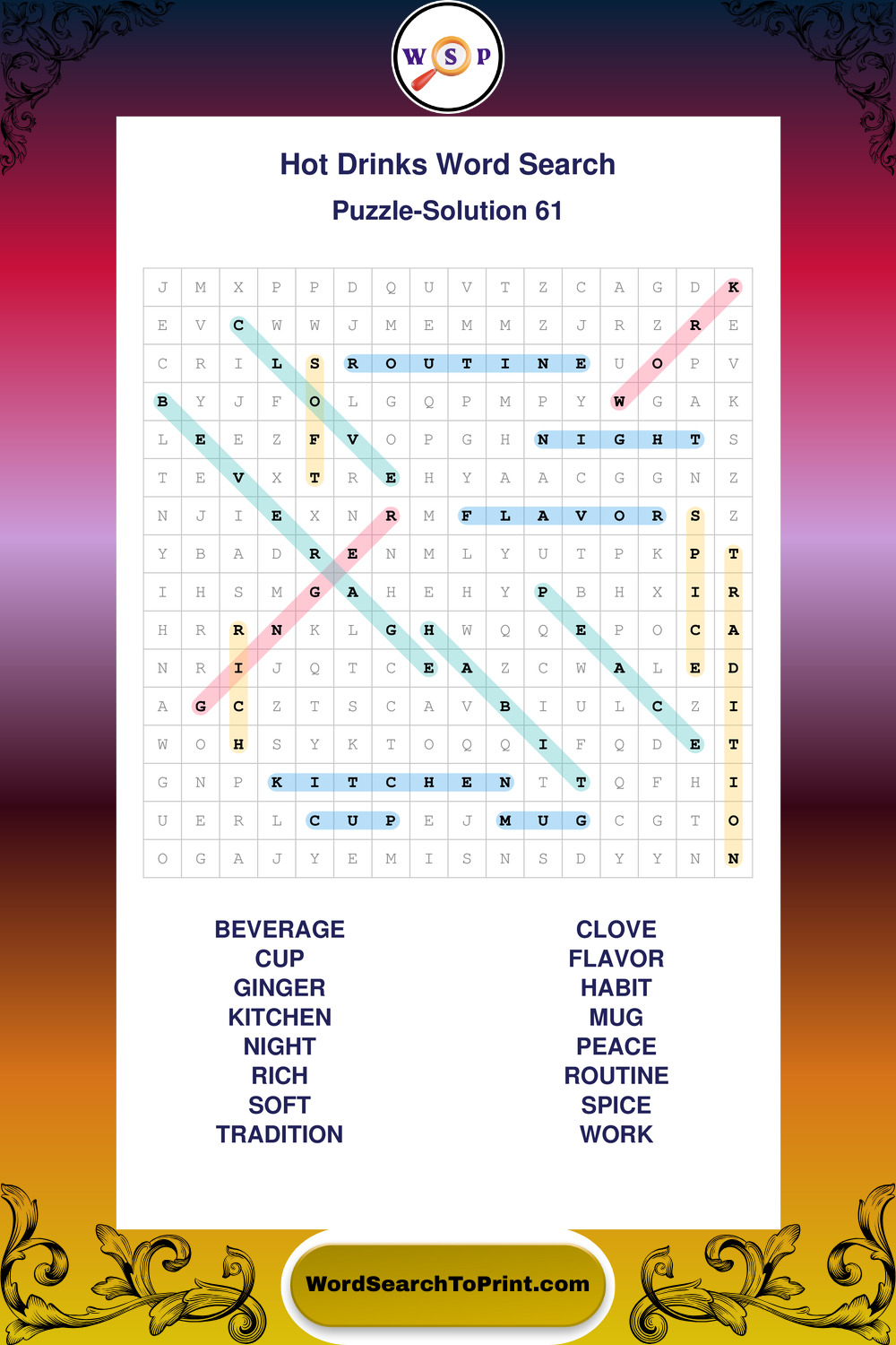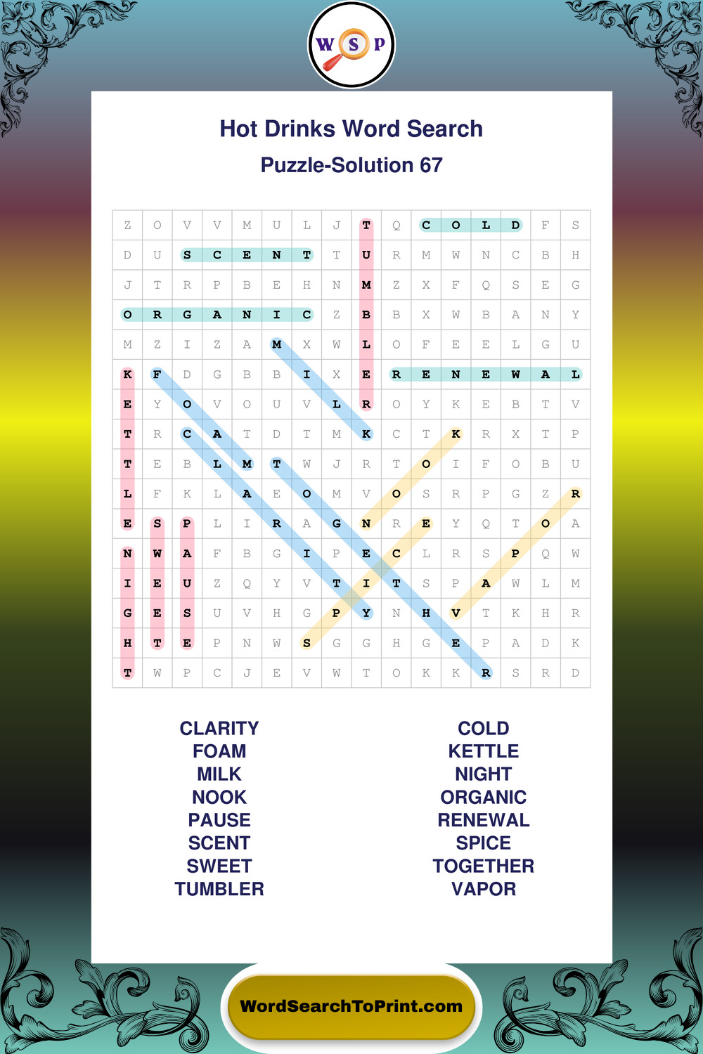 Enjoy large print Hot Drinks wordsearches that balance clarity, simplicity, and enjoyable mental activity.