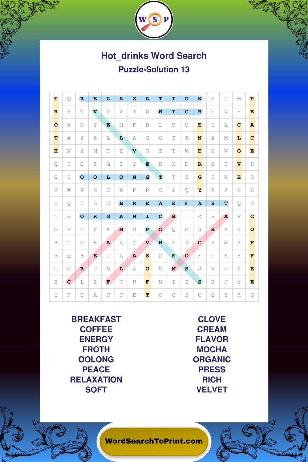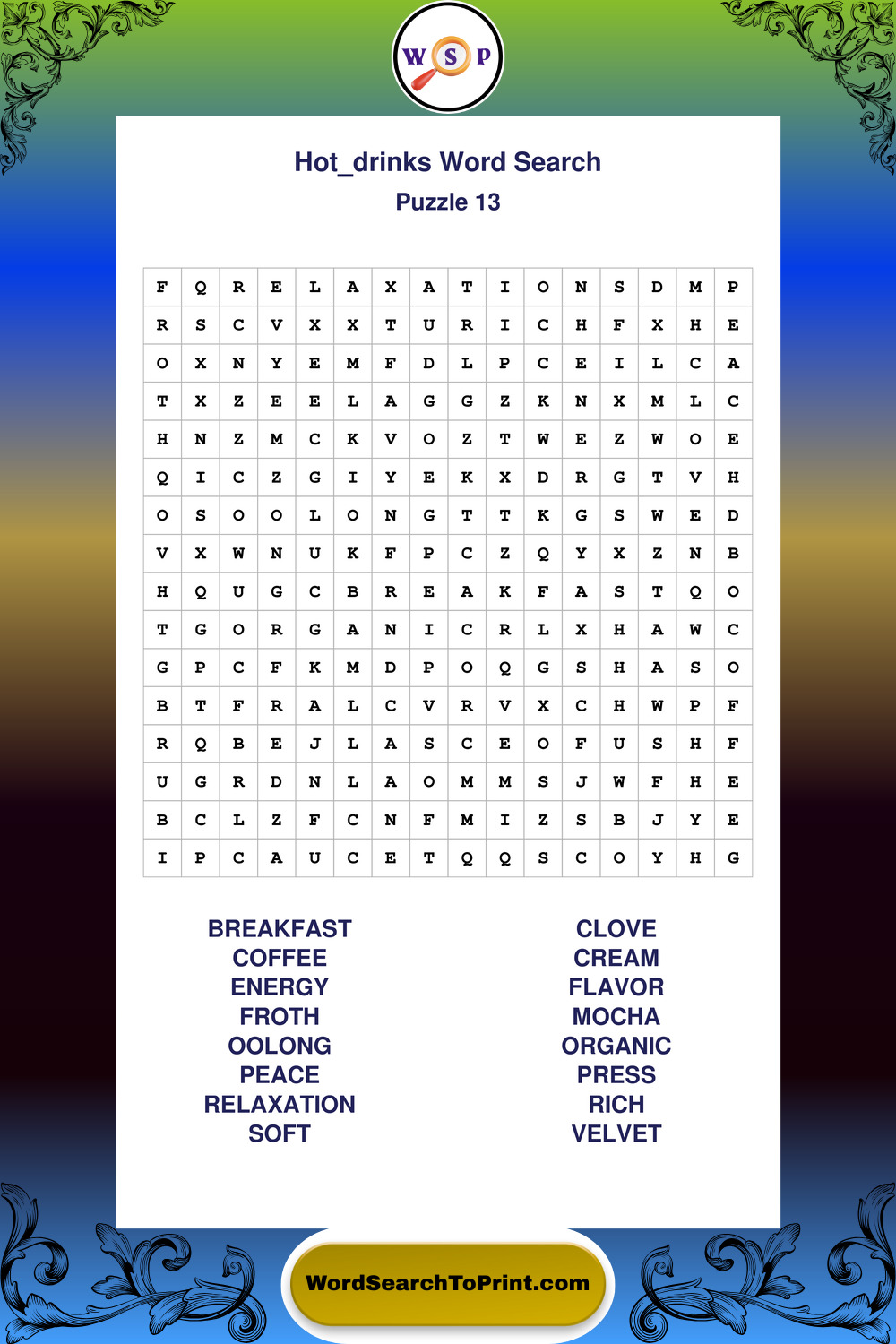 Enjoy large print Hot Drinks wordsearches that balance clarity, simplicity, and enjoyable mental activity.