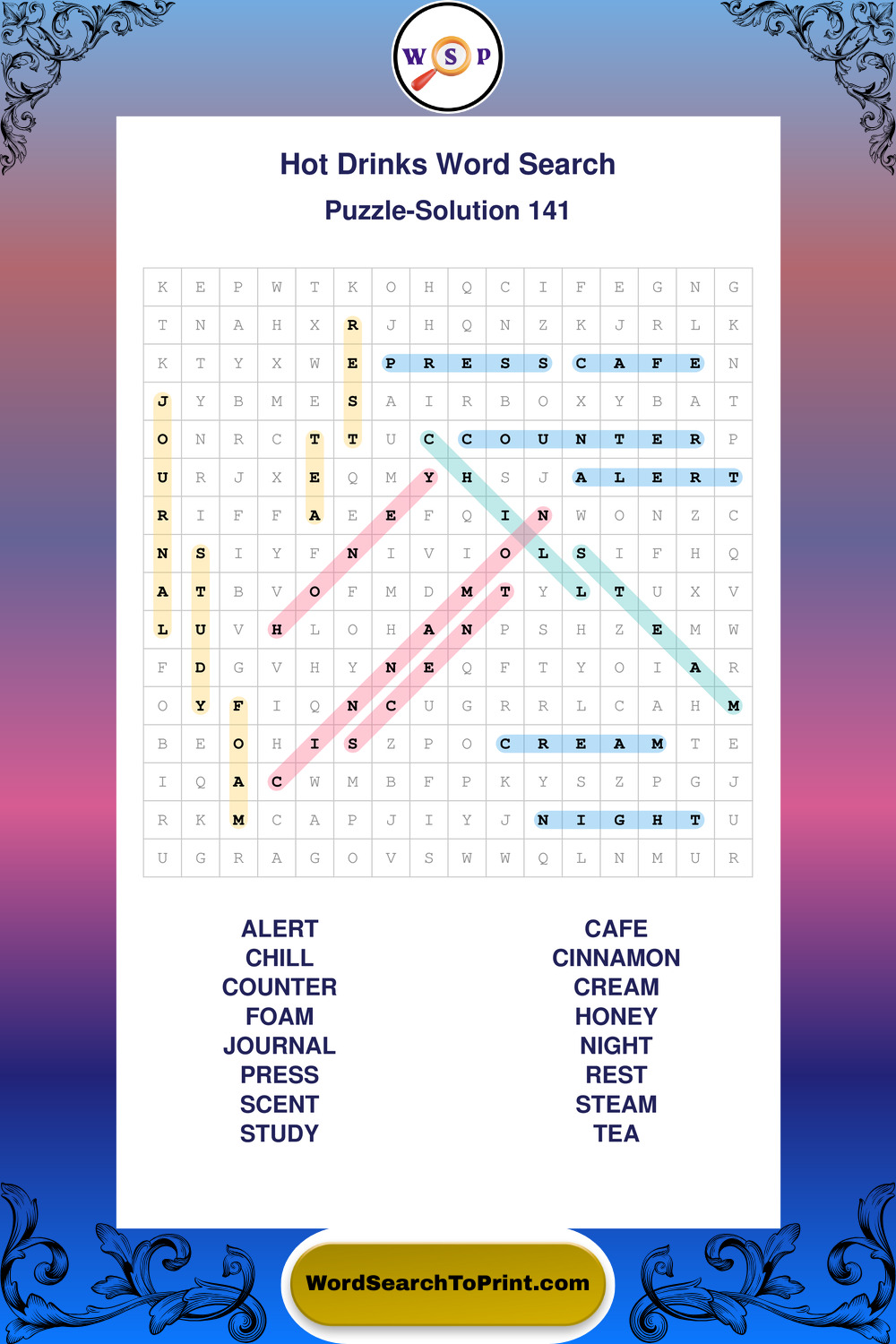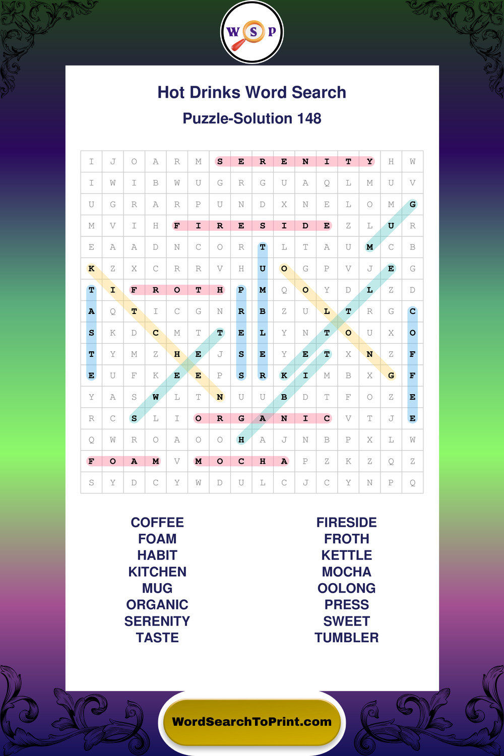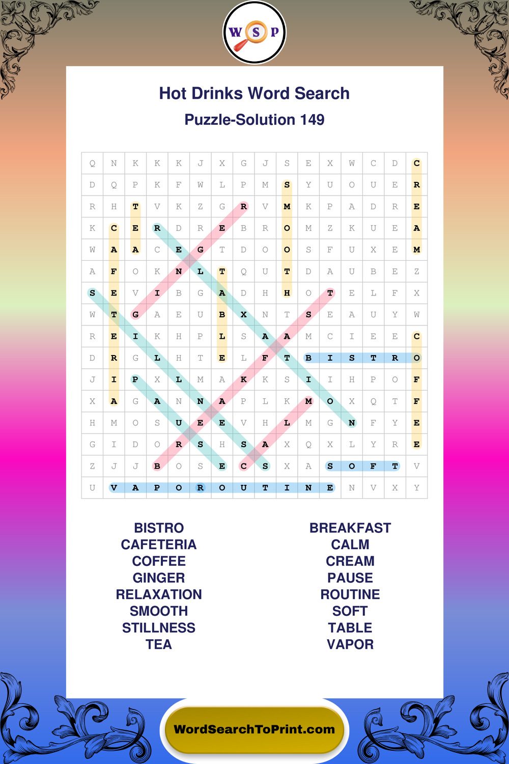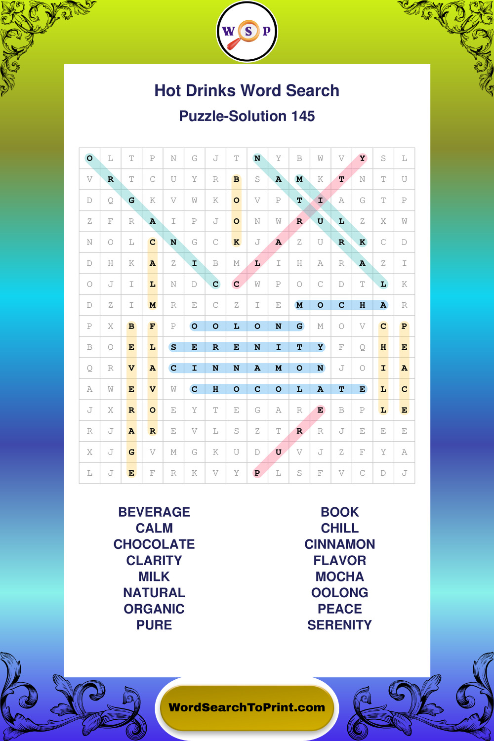Enjoy large print Hot Drinks wordsearches that balance clarity, simplicity, and enjoyable mental activity.