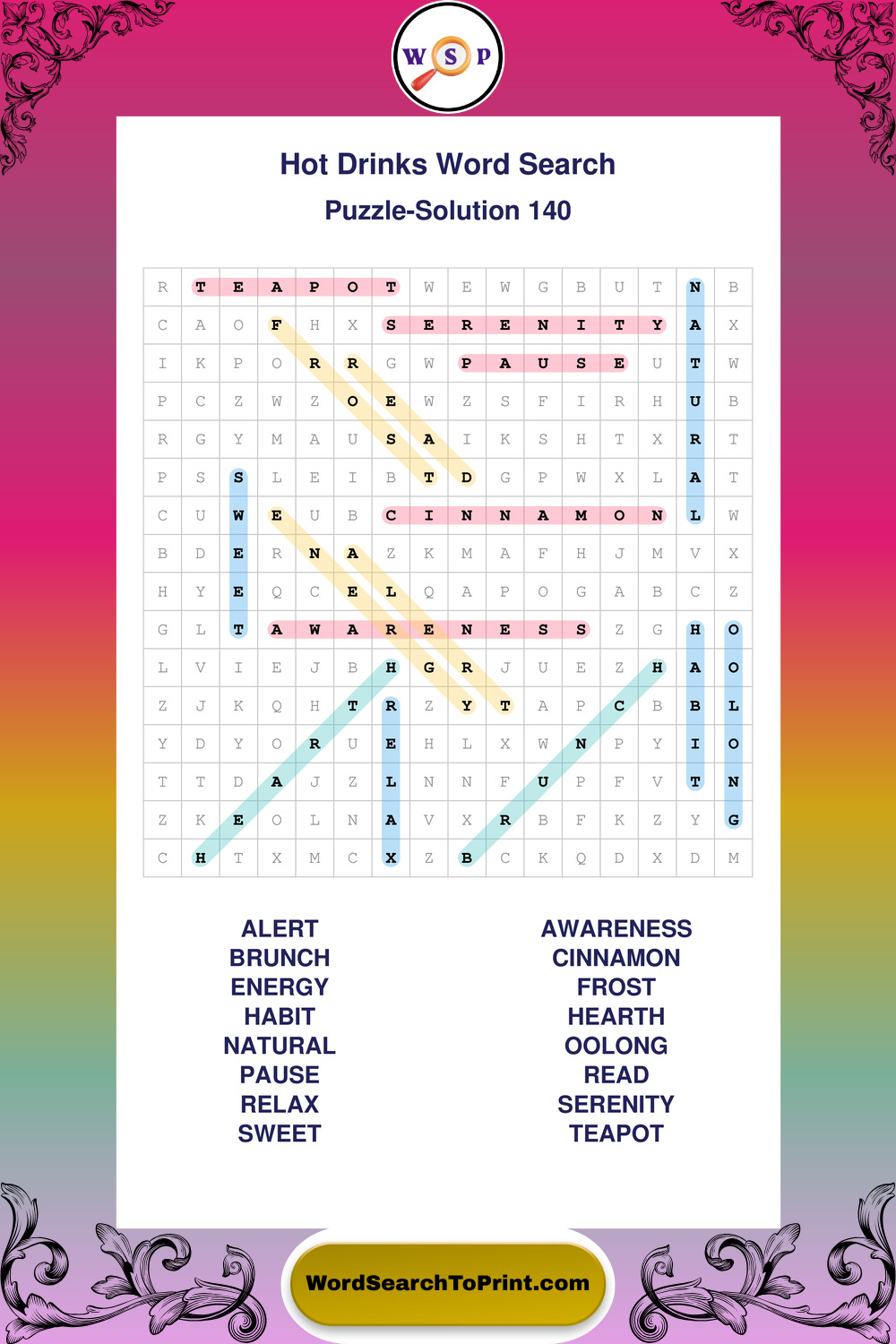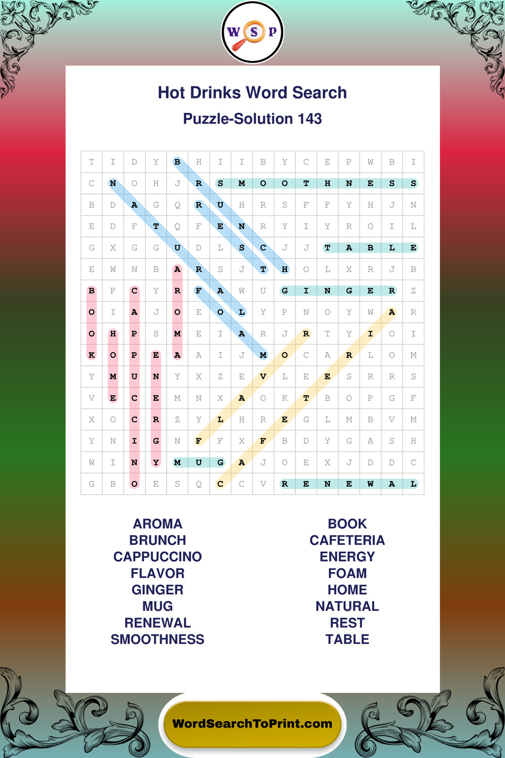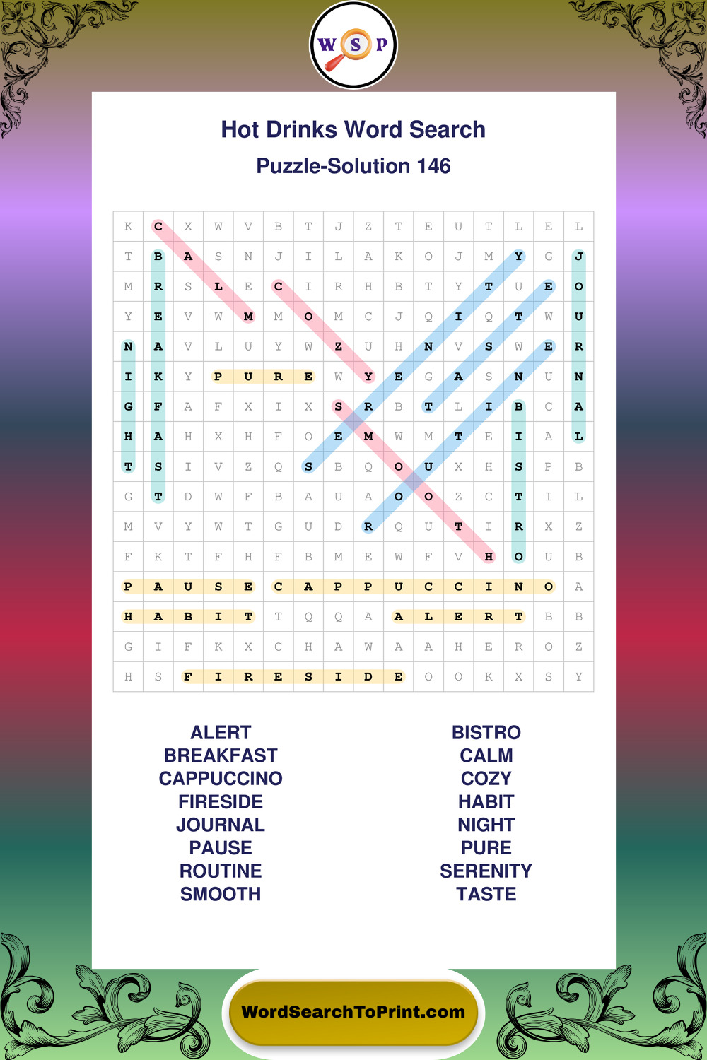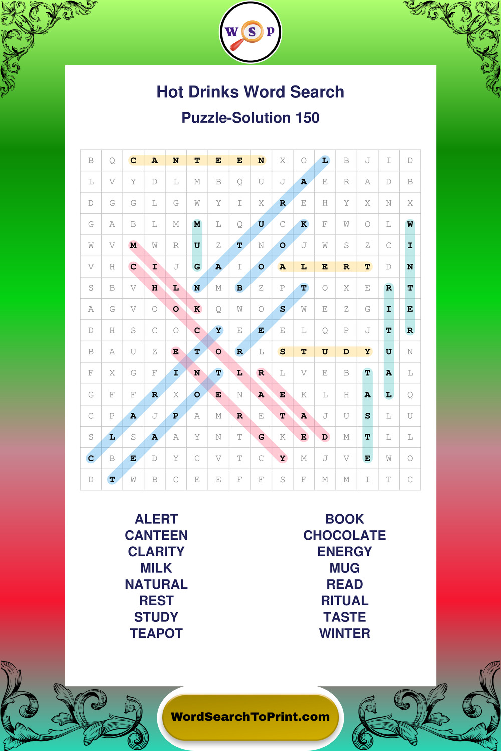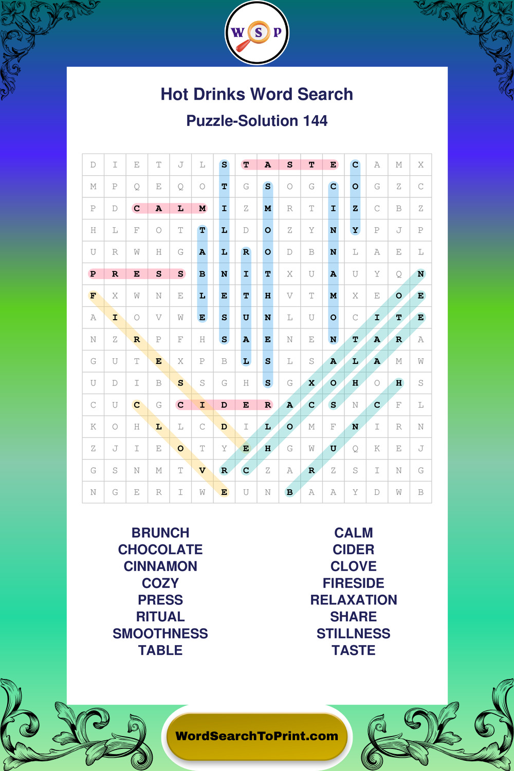 Enjoy large print Hot Drinks wordsearches that balance clarity, simplicity, and enjoyable mental activity.