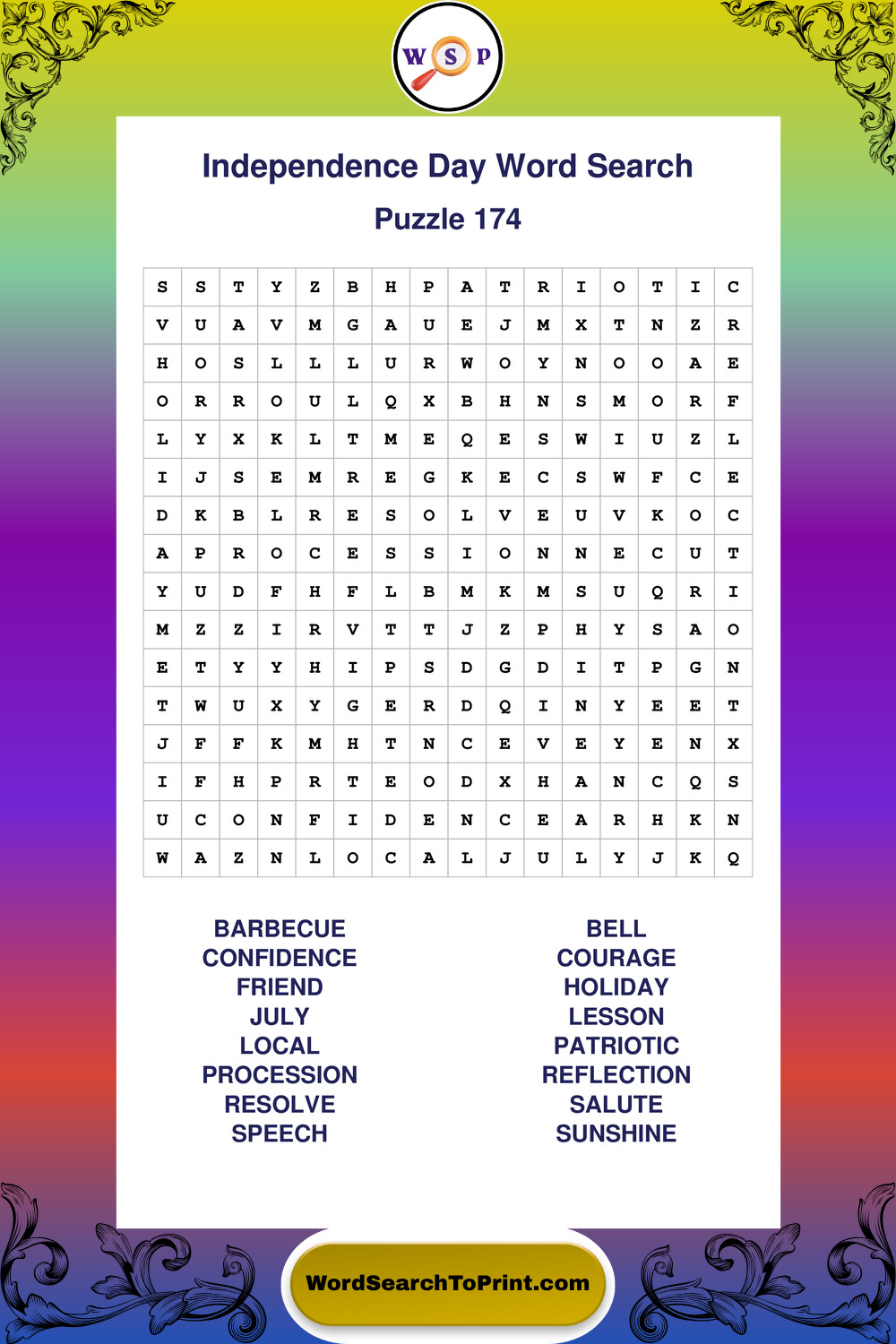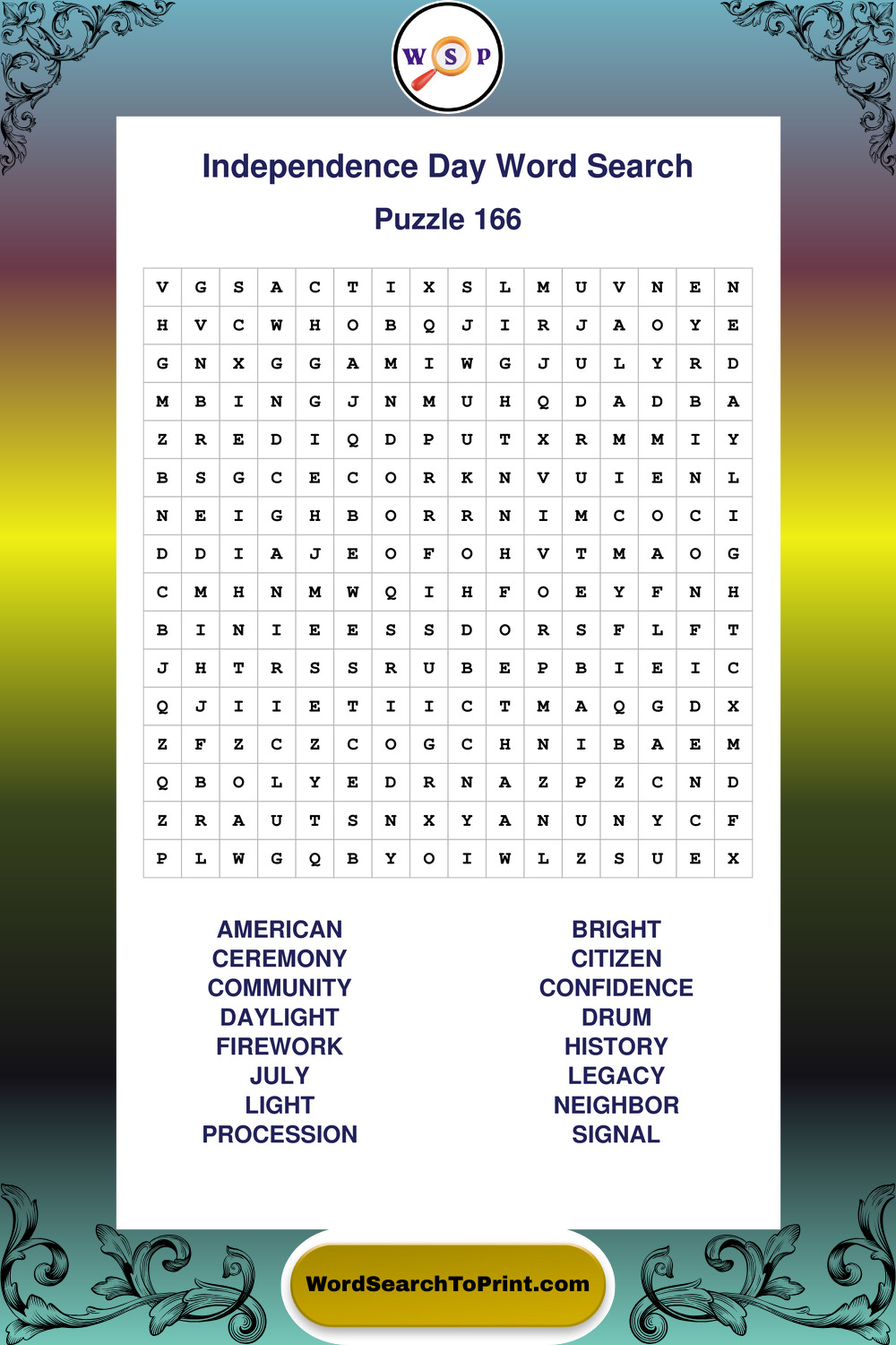 Enjoy large print Independence Day wordsearches that balance clarity, simplicity, and enjoyable mental activity.