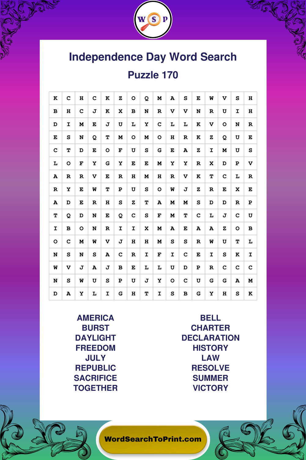 Printable Independence Day Wordsearch Puzzles