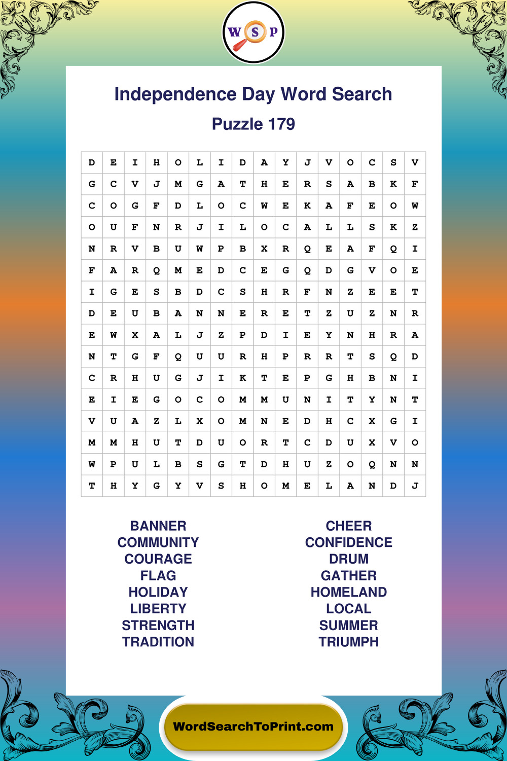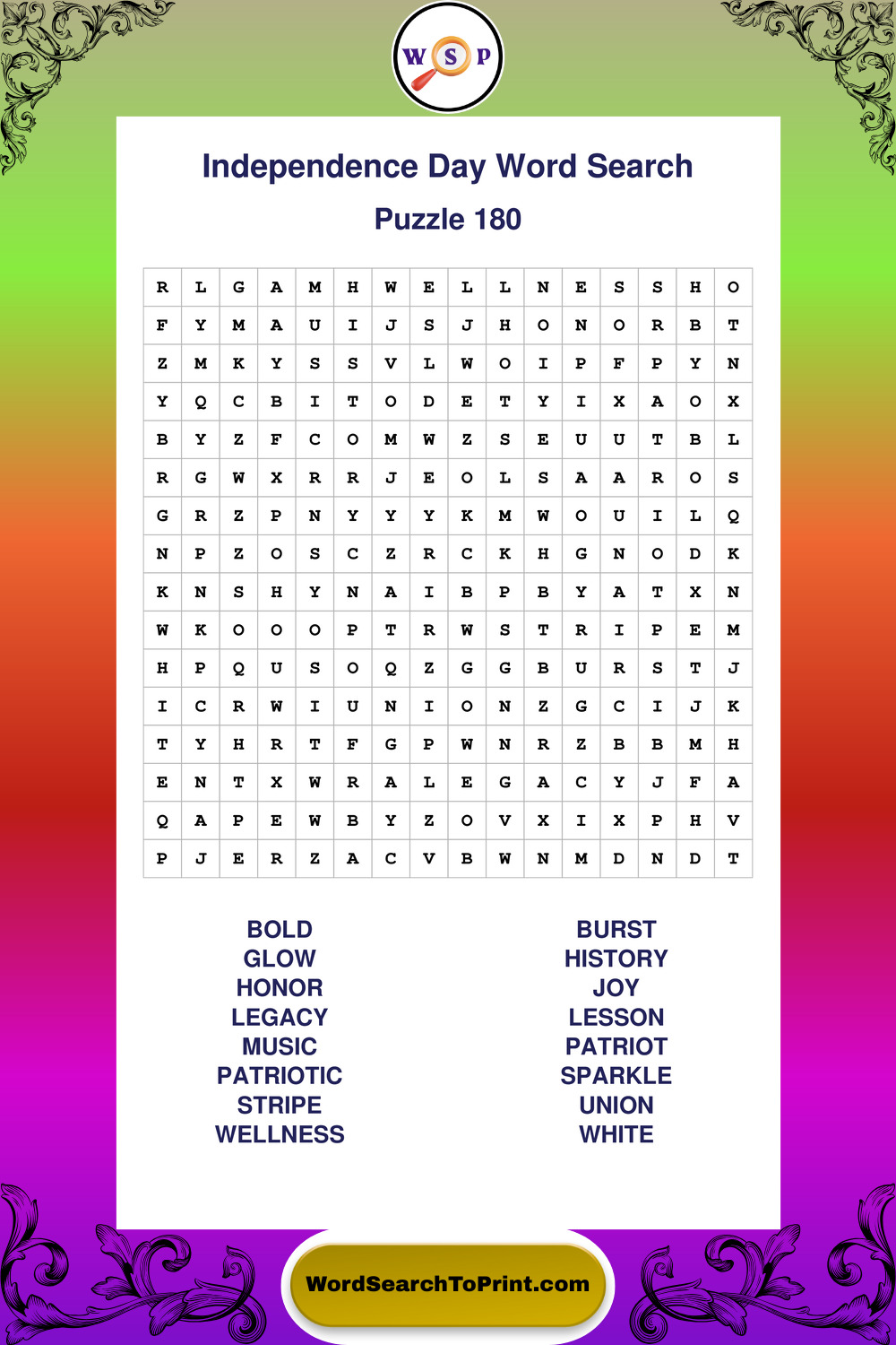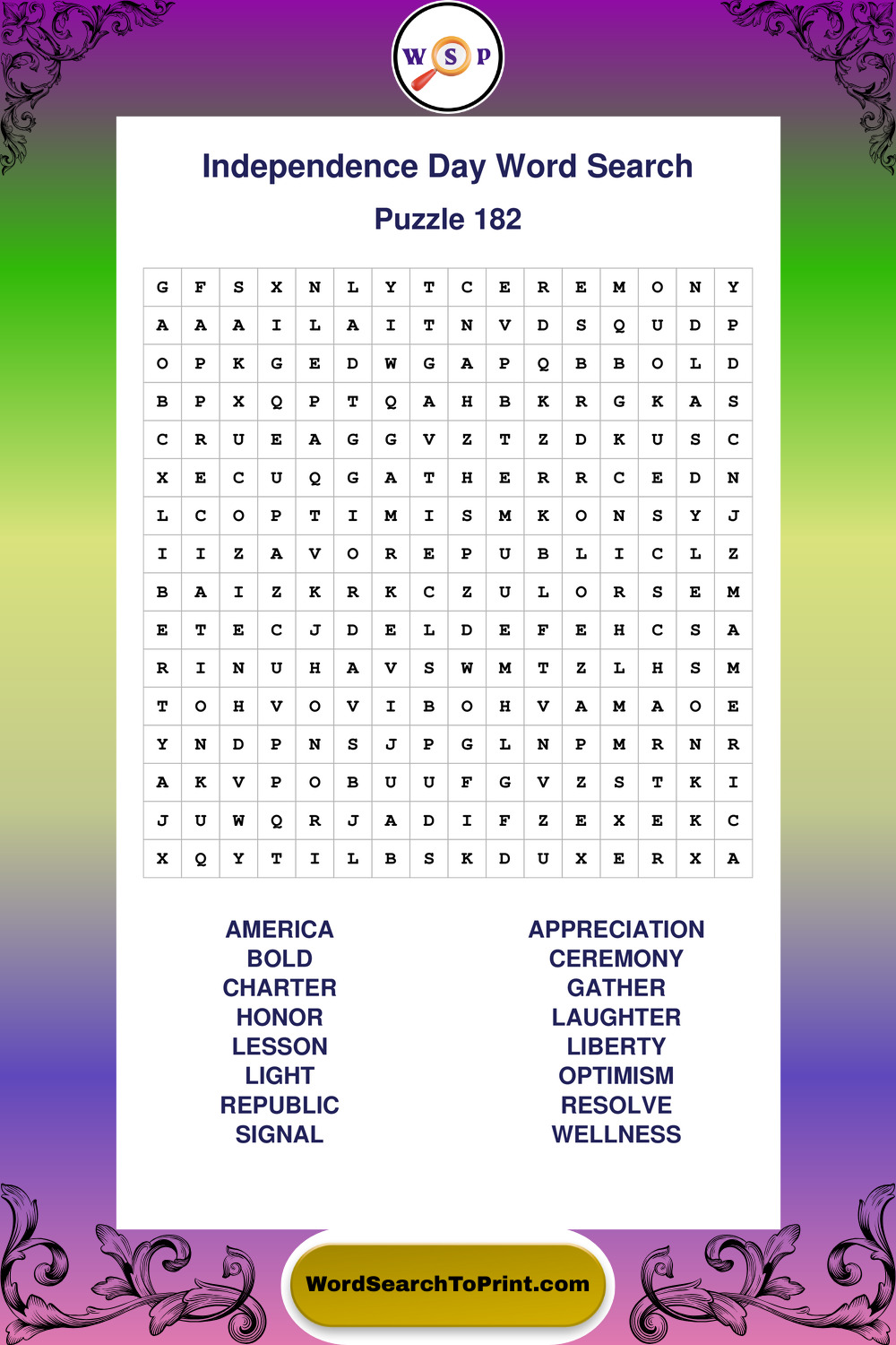 Enjoy large print Independence Day wordsearches that balance clarity, simplicity, and enjoyable mental activity.