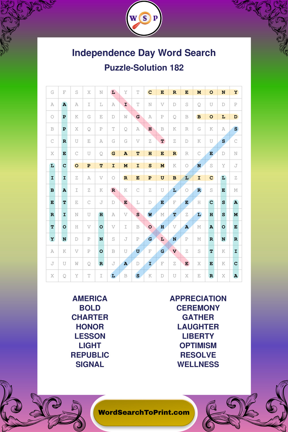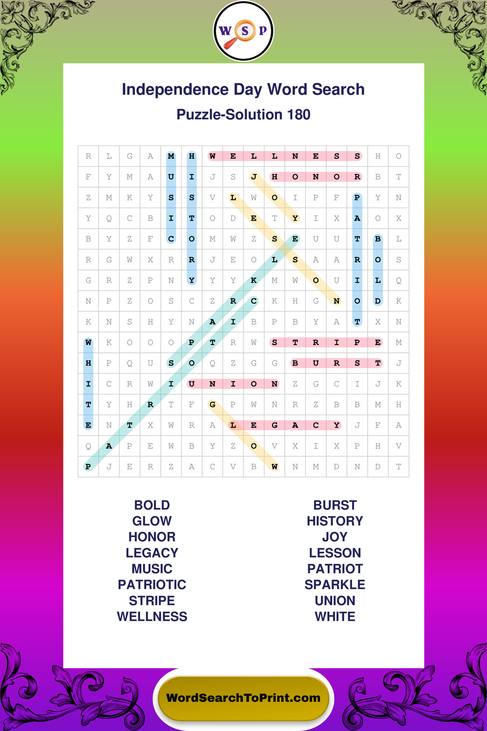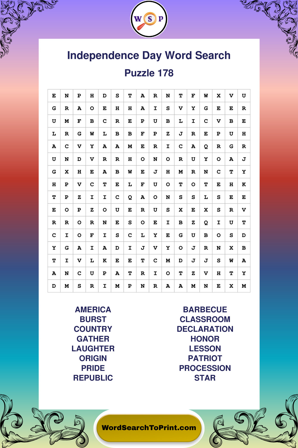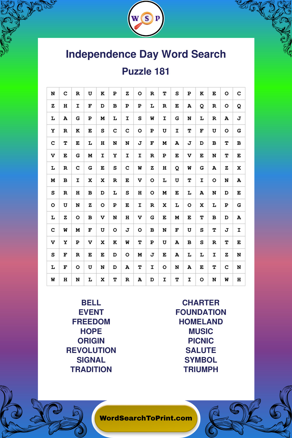 Enjoy large print Independence Day wordsearches that balance clarity, simplicity, and enjoyable mental activity.