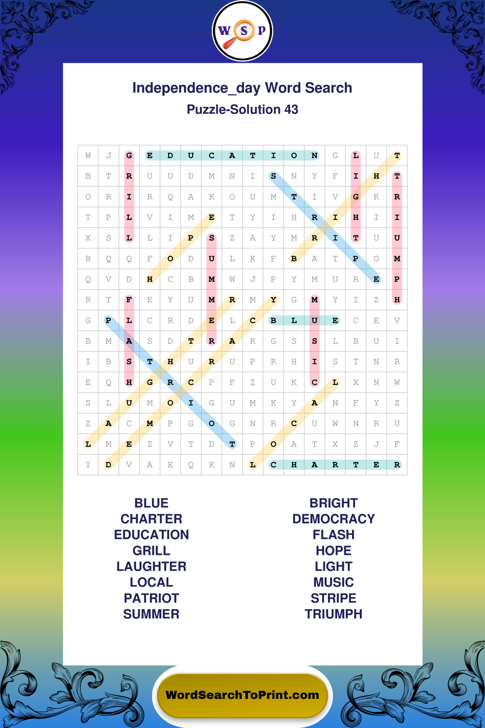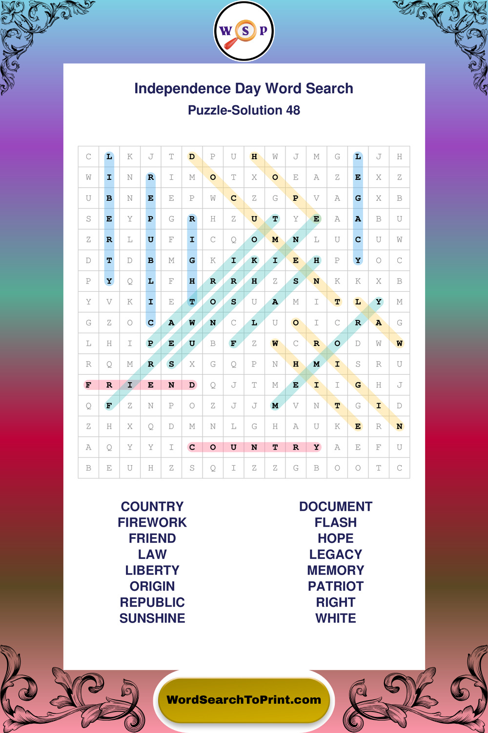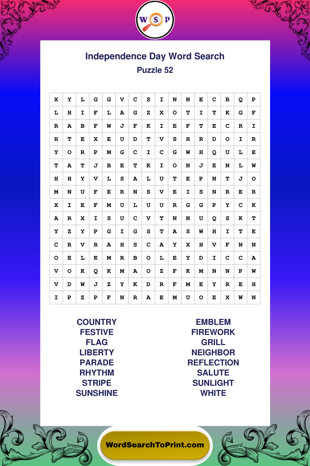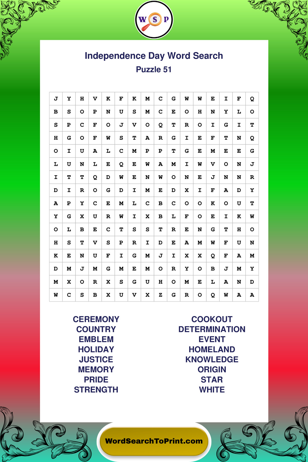 Enjoy large print Independence Day wordsearches that balance clarity, simplicity, and enjoyable mental activity.