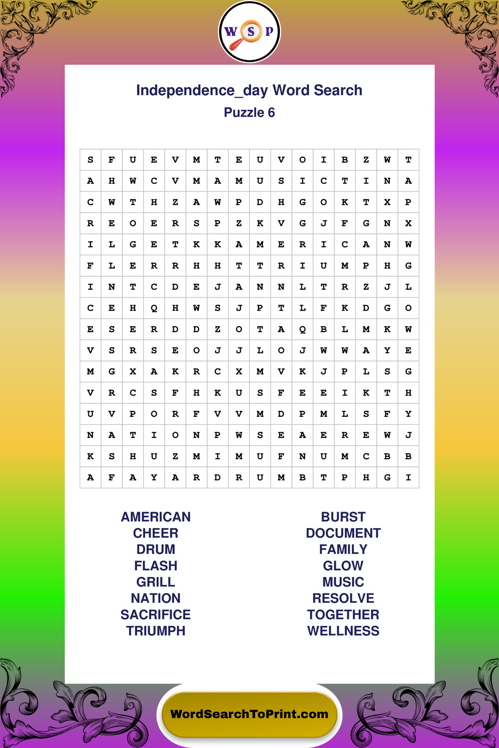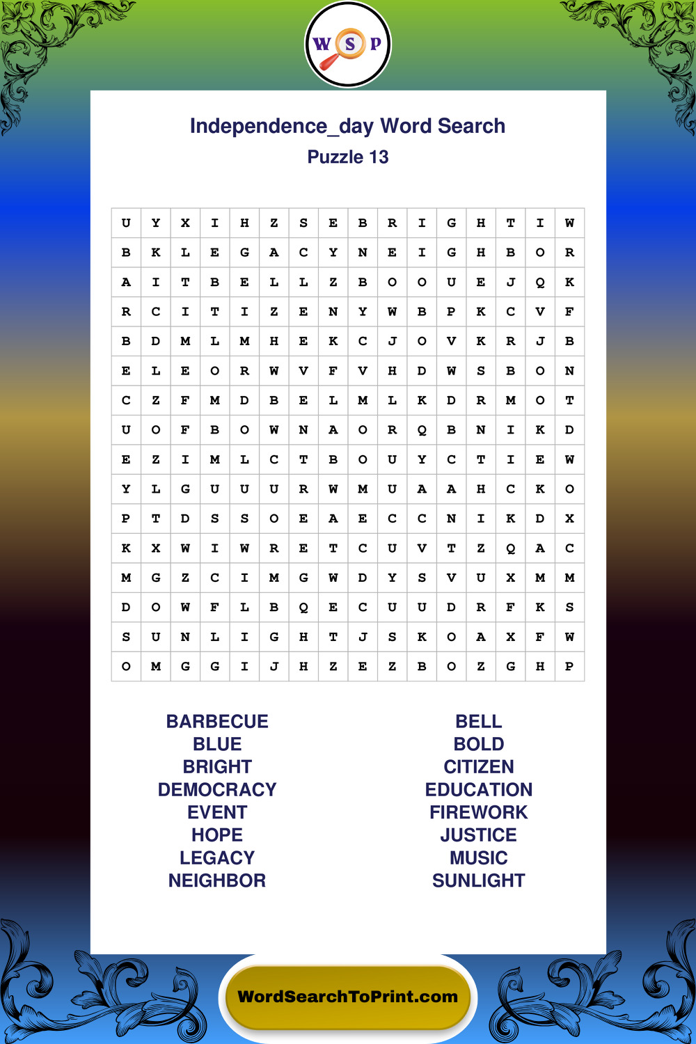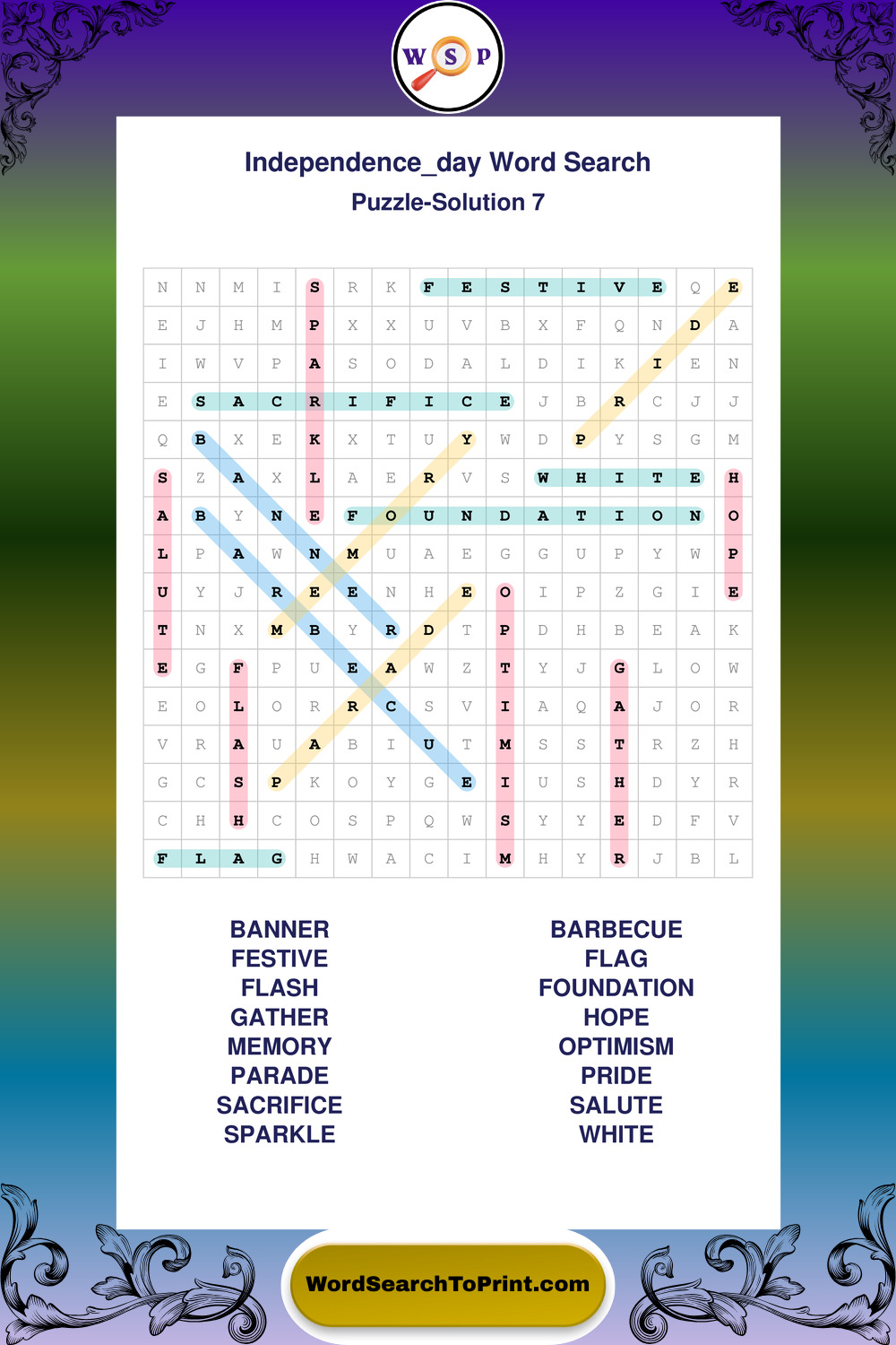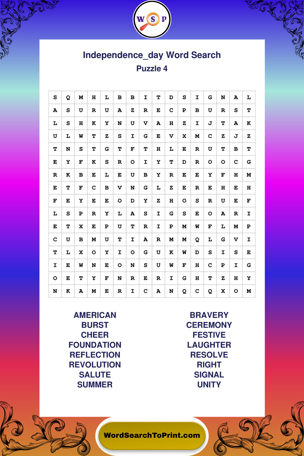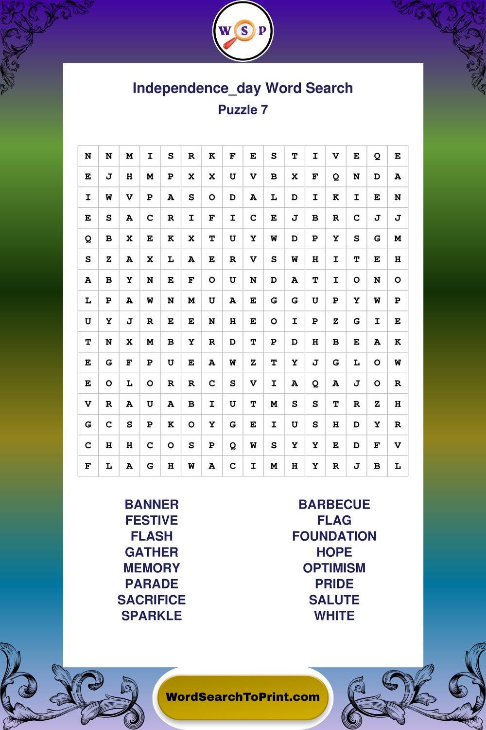 Enjoy large print Independence Day wordsearches that balance clarity, simplicity, and enjoyable mental activity.