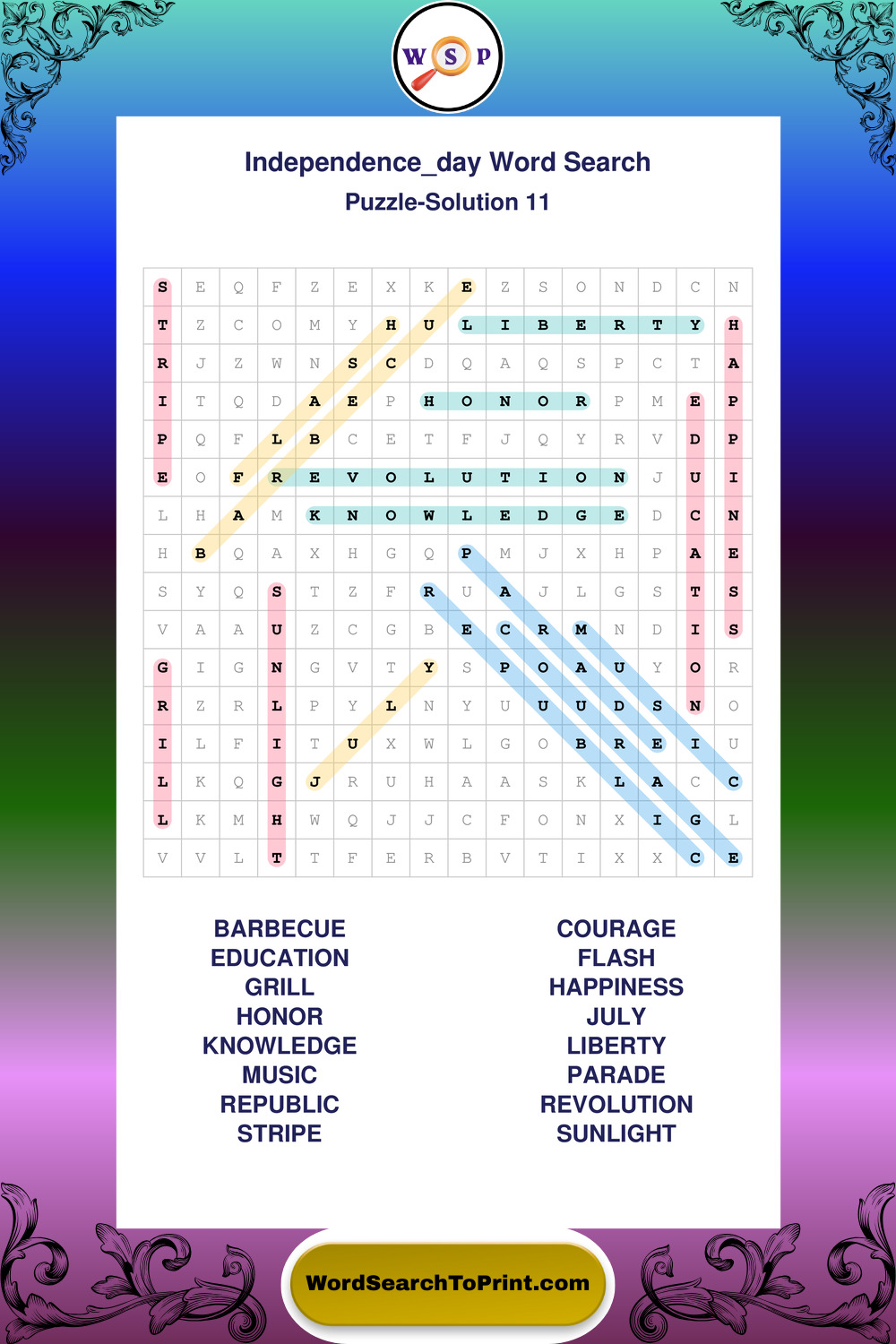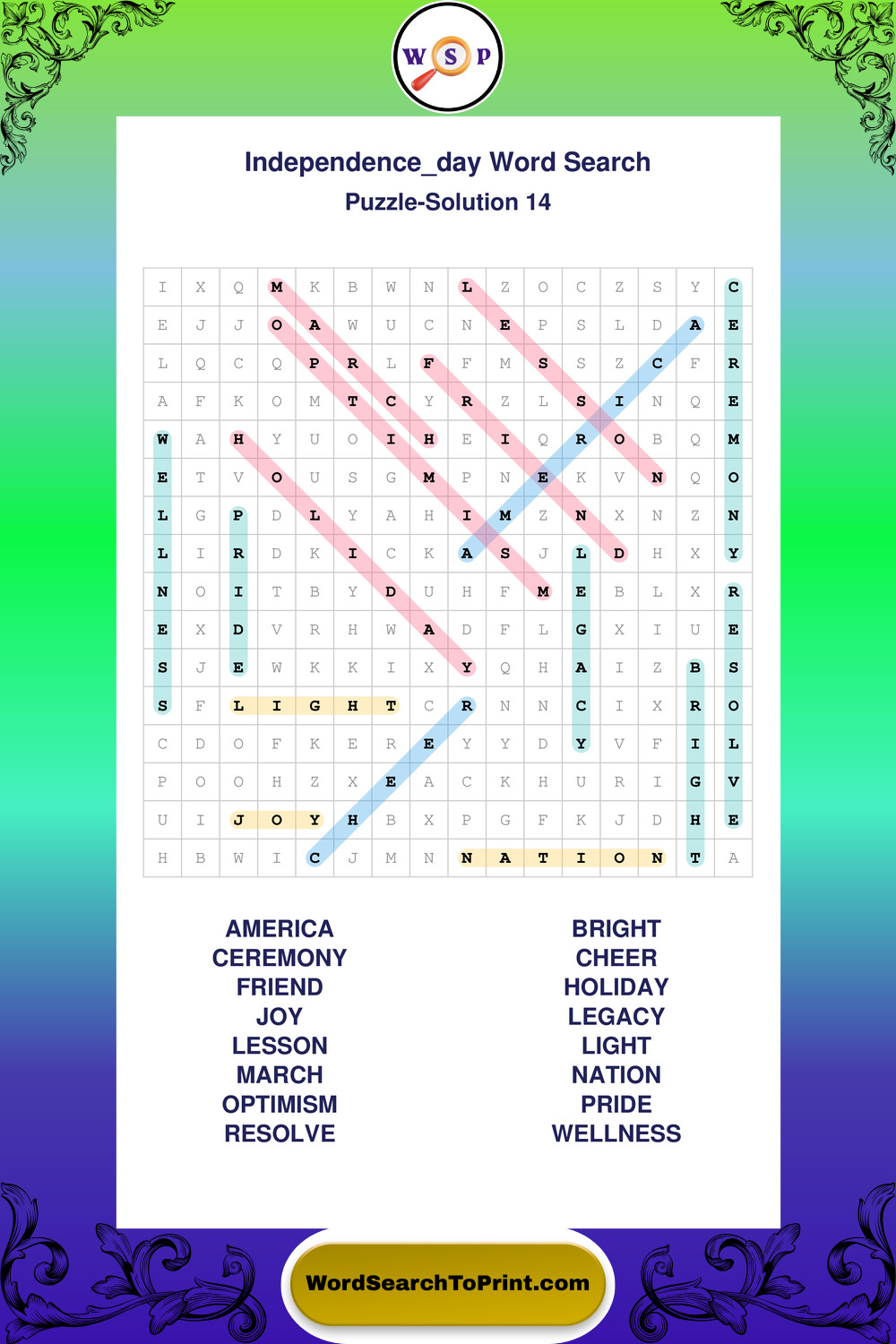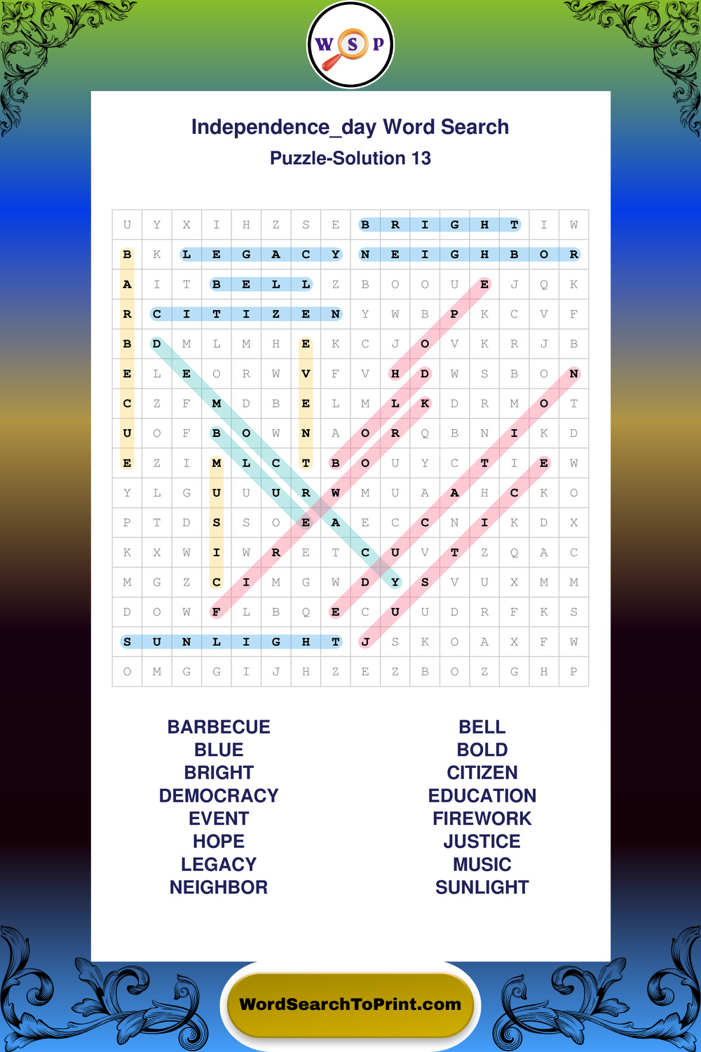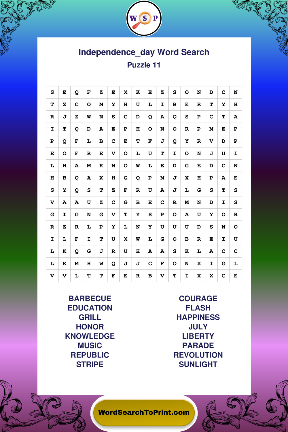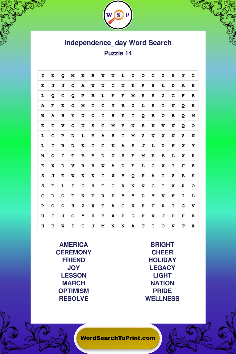 Enjoy large print Independence Day wordsearches that balance clarity, simplicity, and enjoyable mental activity.