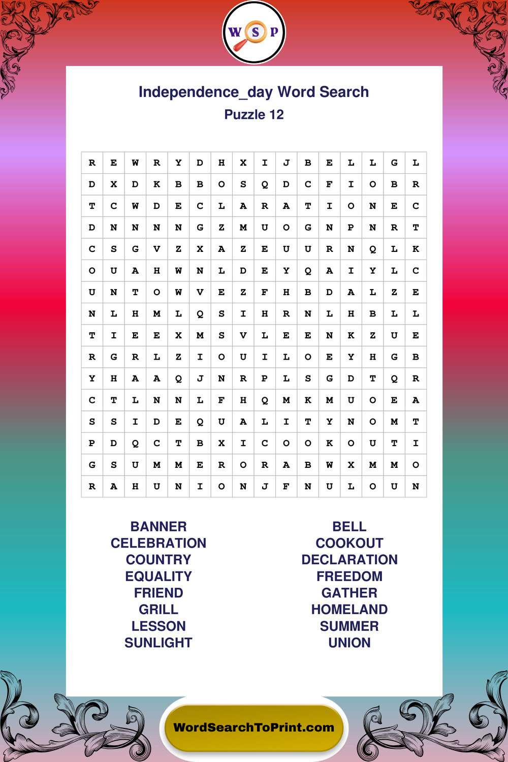 Printable Independence Day Wordsearch Puzzles