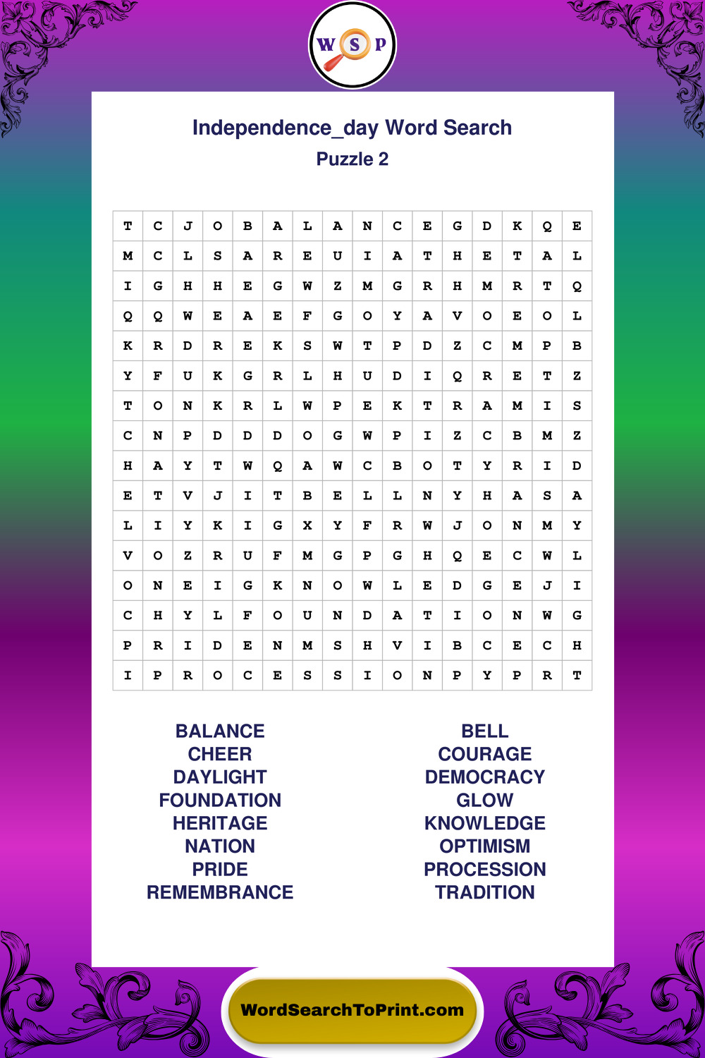 Enjoy large print Independence Day wordsearches that balance clarity, simplicity, and enjoyable mental activity.