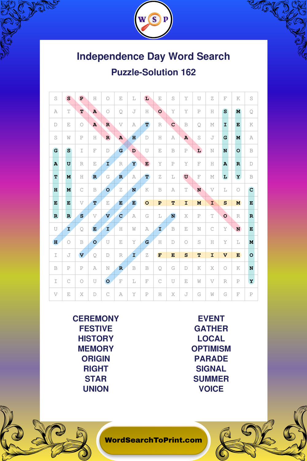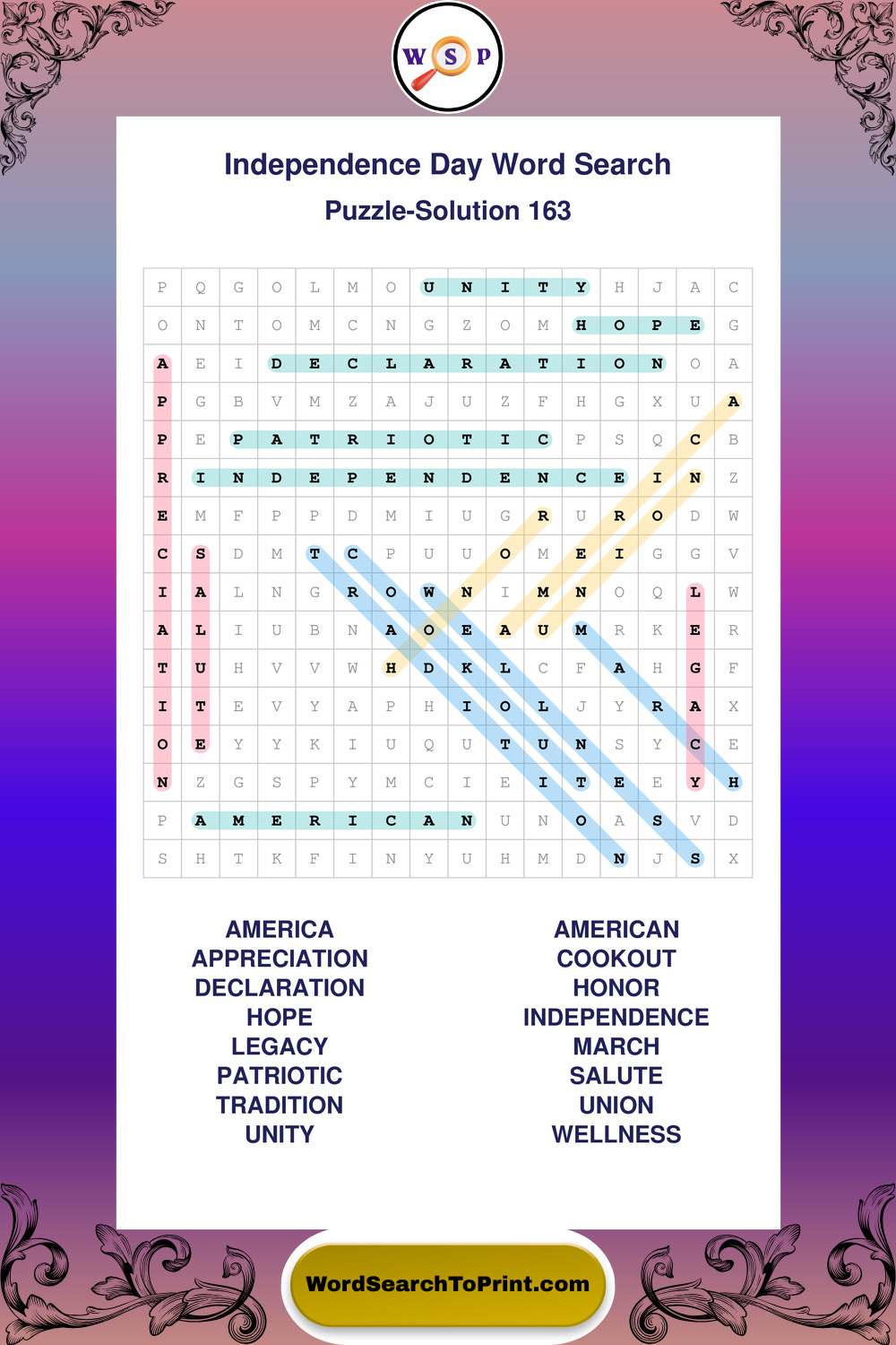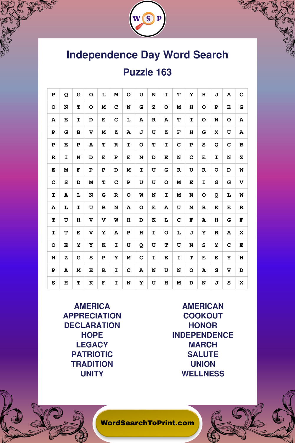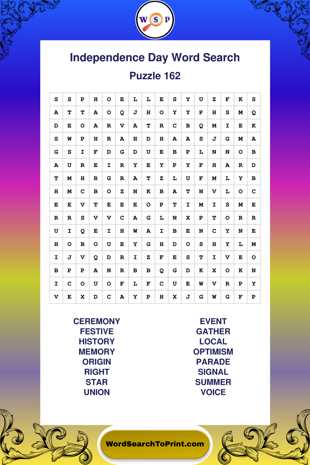 Enjoy large print Independence Day wordsearches that balance clarity, simplicity, and enjoyable mental activity.