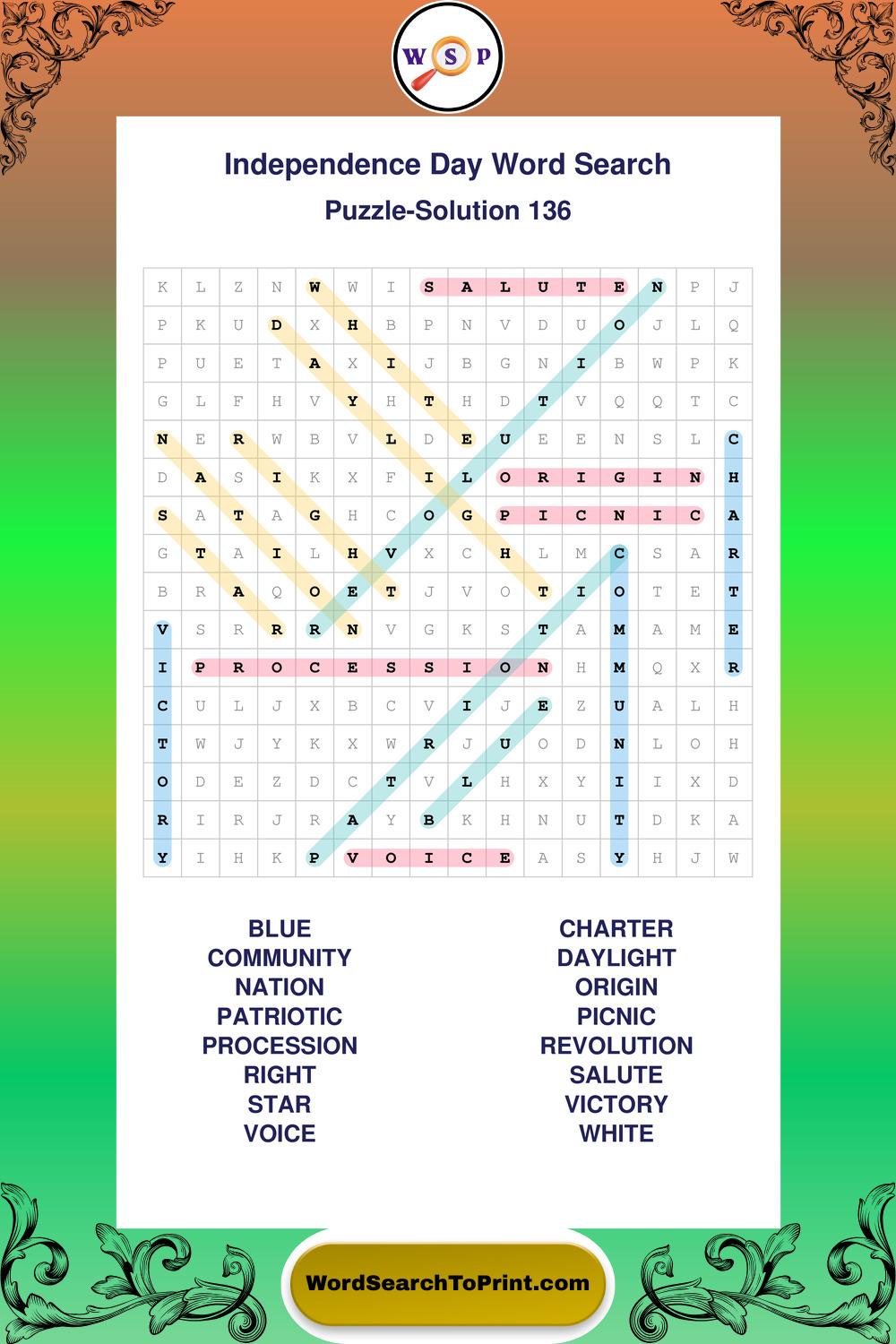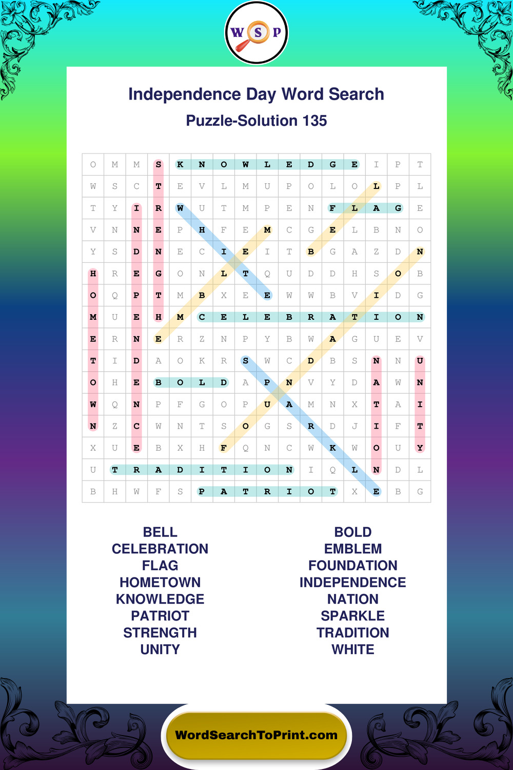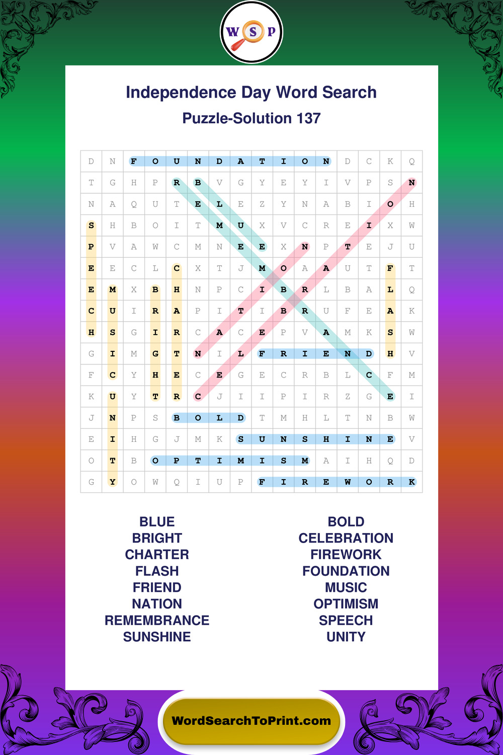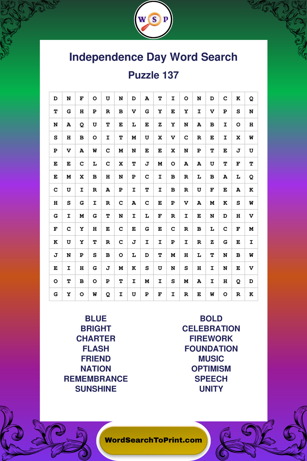 Enjoy large print Independence Day wordsearches that balance clarity, simplicity, and enjoyable mental activity.