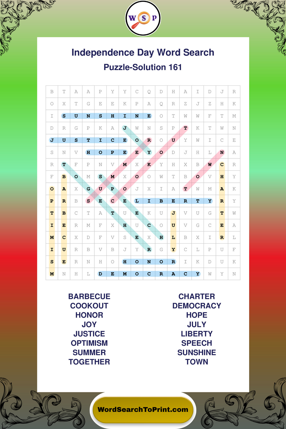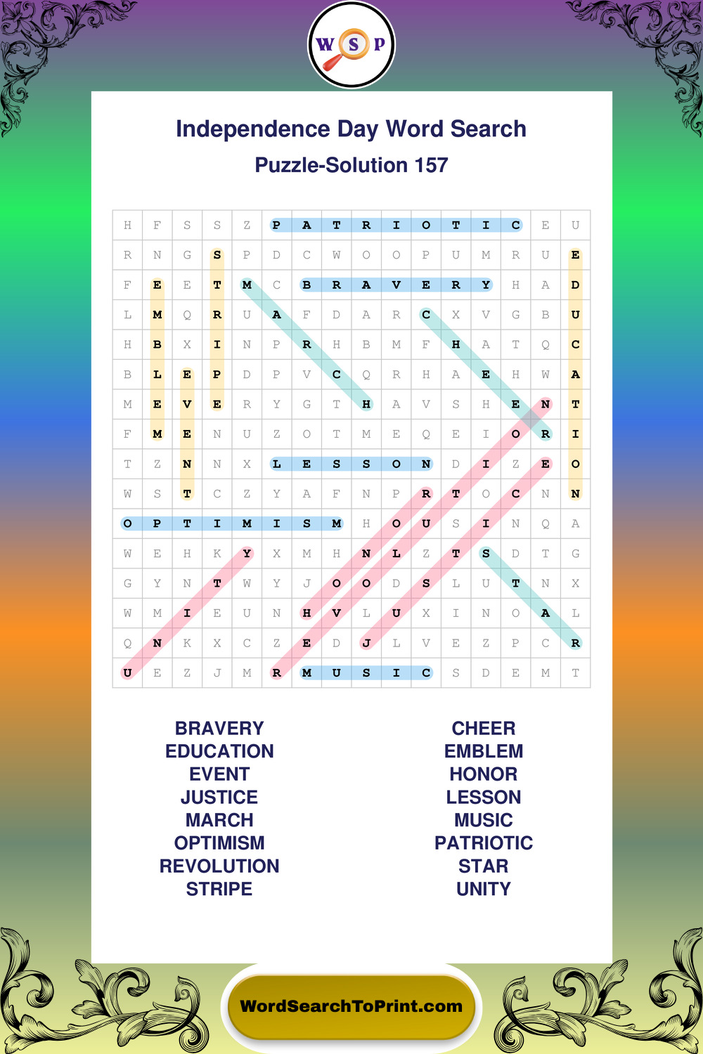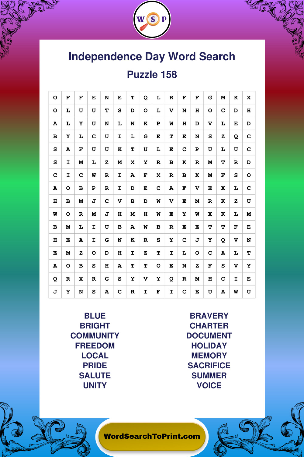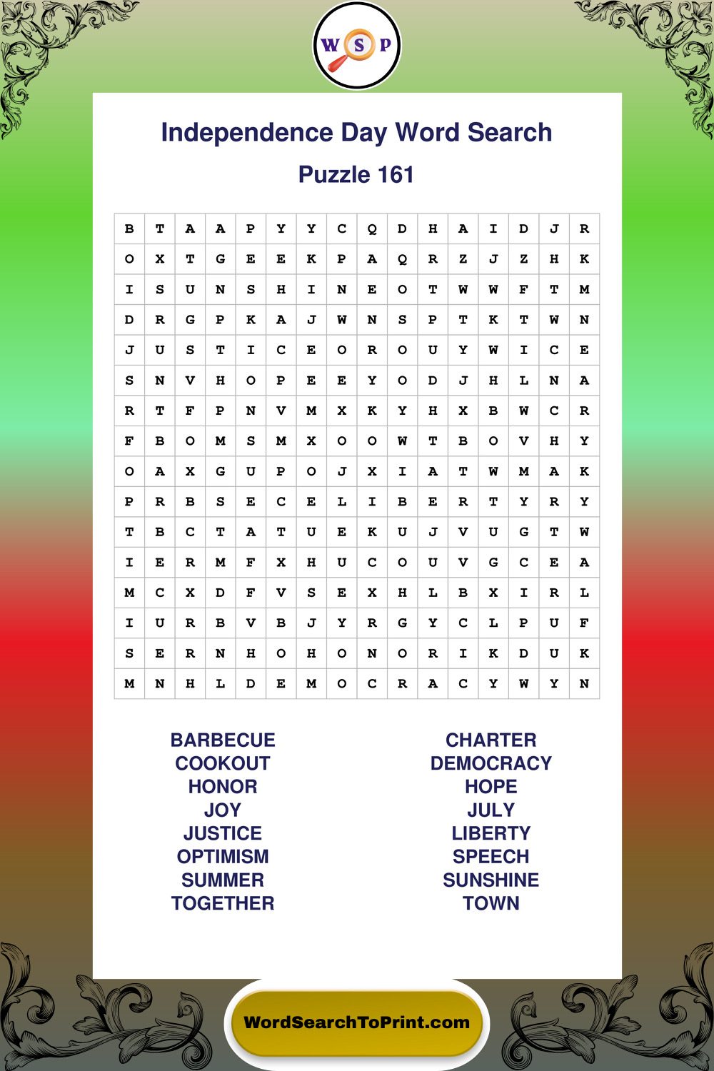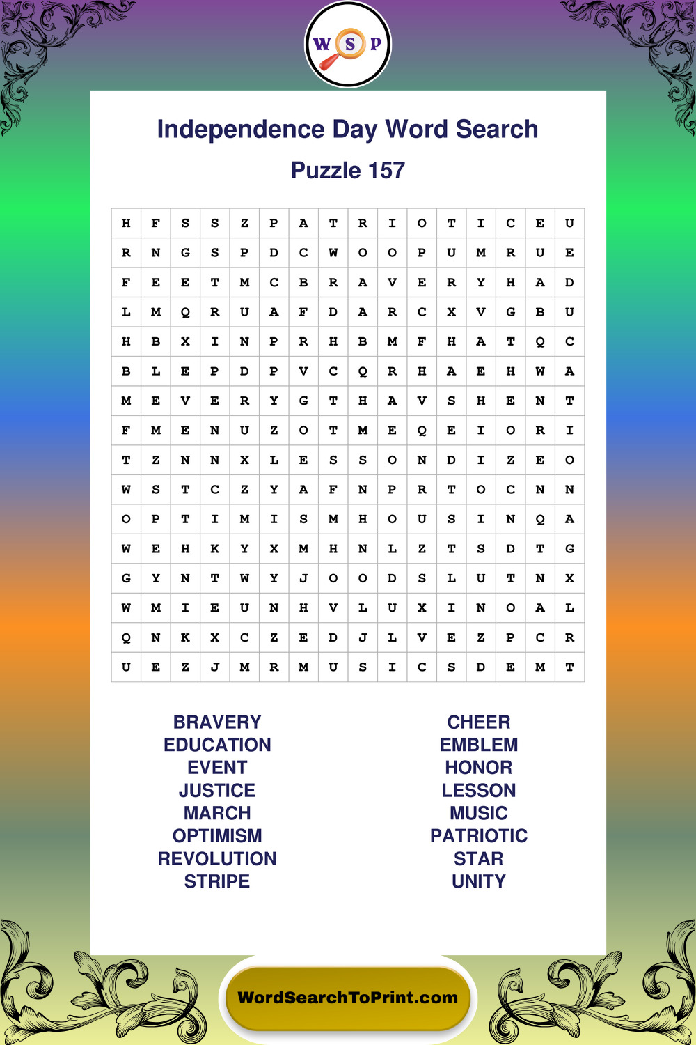 Enjoy large print Independence Day wordsearches that balance clarity, simplicity, and enjoyable mental activity.