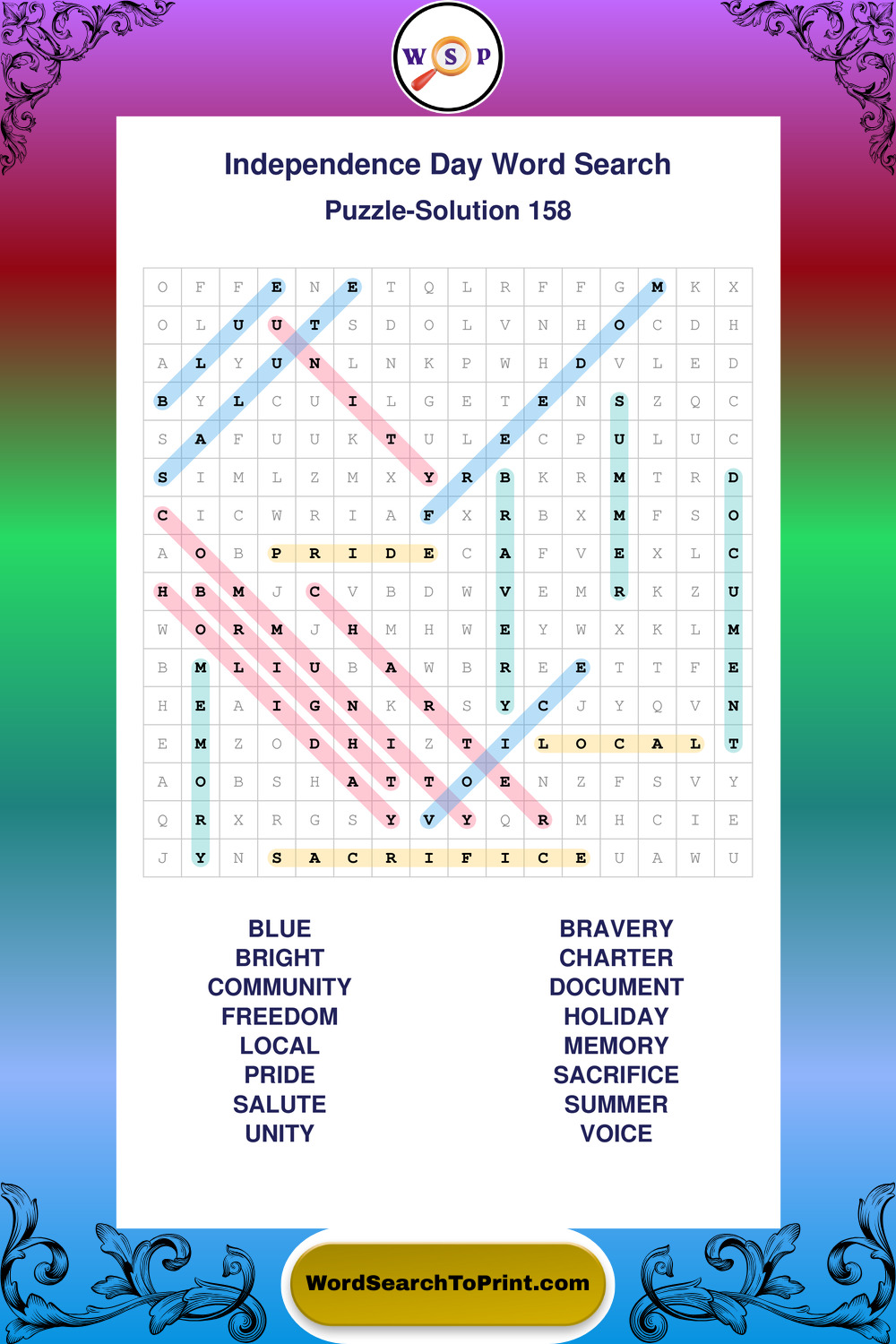 Printable Independence Day Wordsearch Puzzles