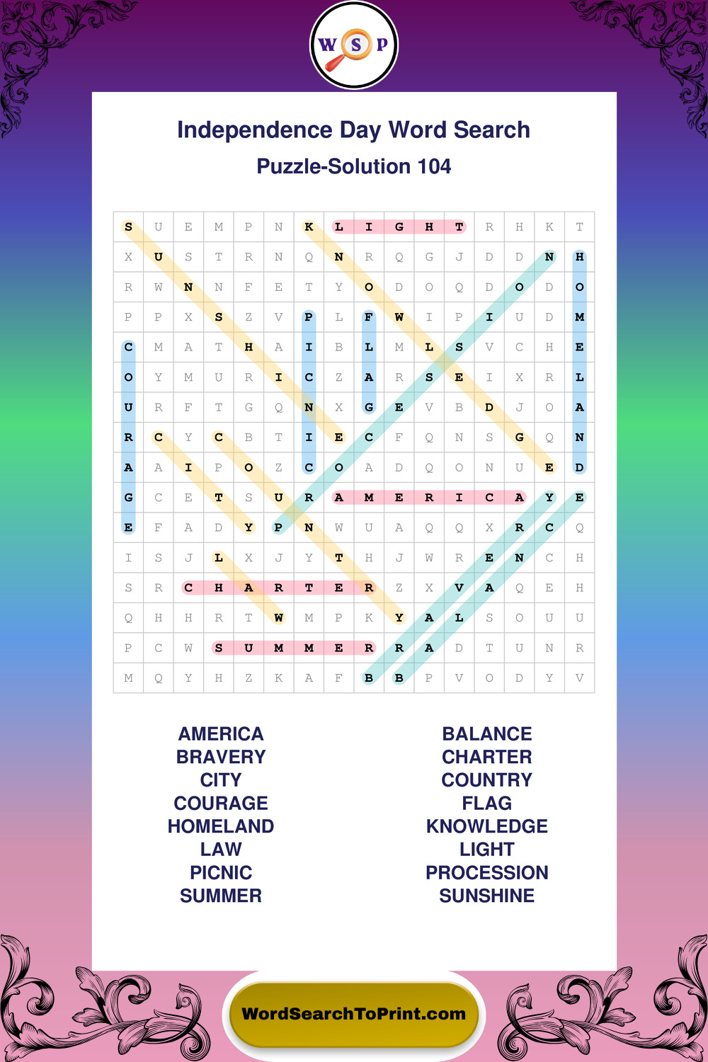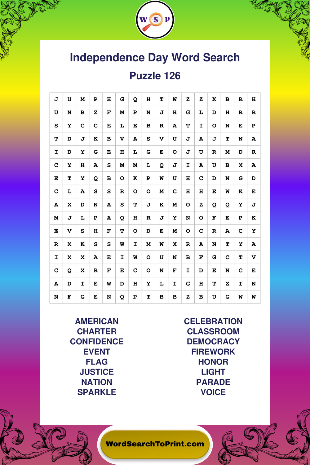 Printable Independence Day Wordsearch Puzzles