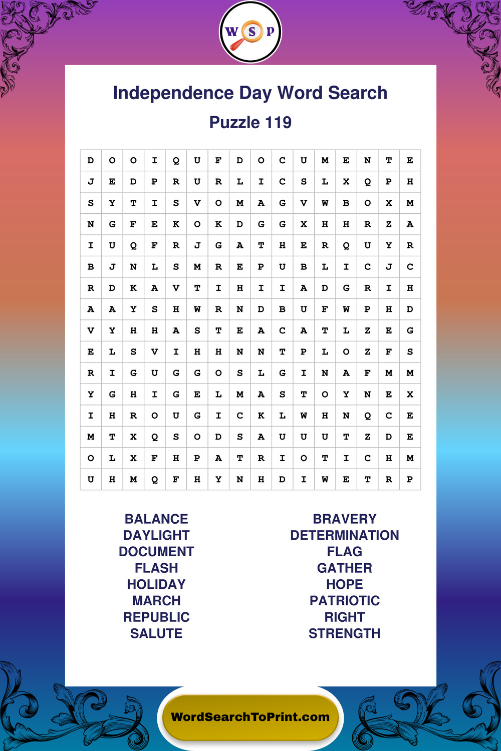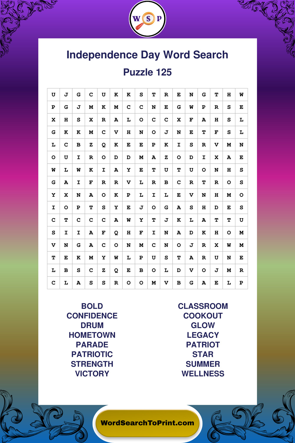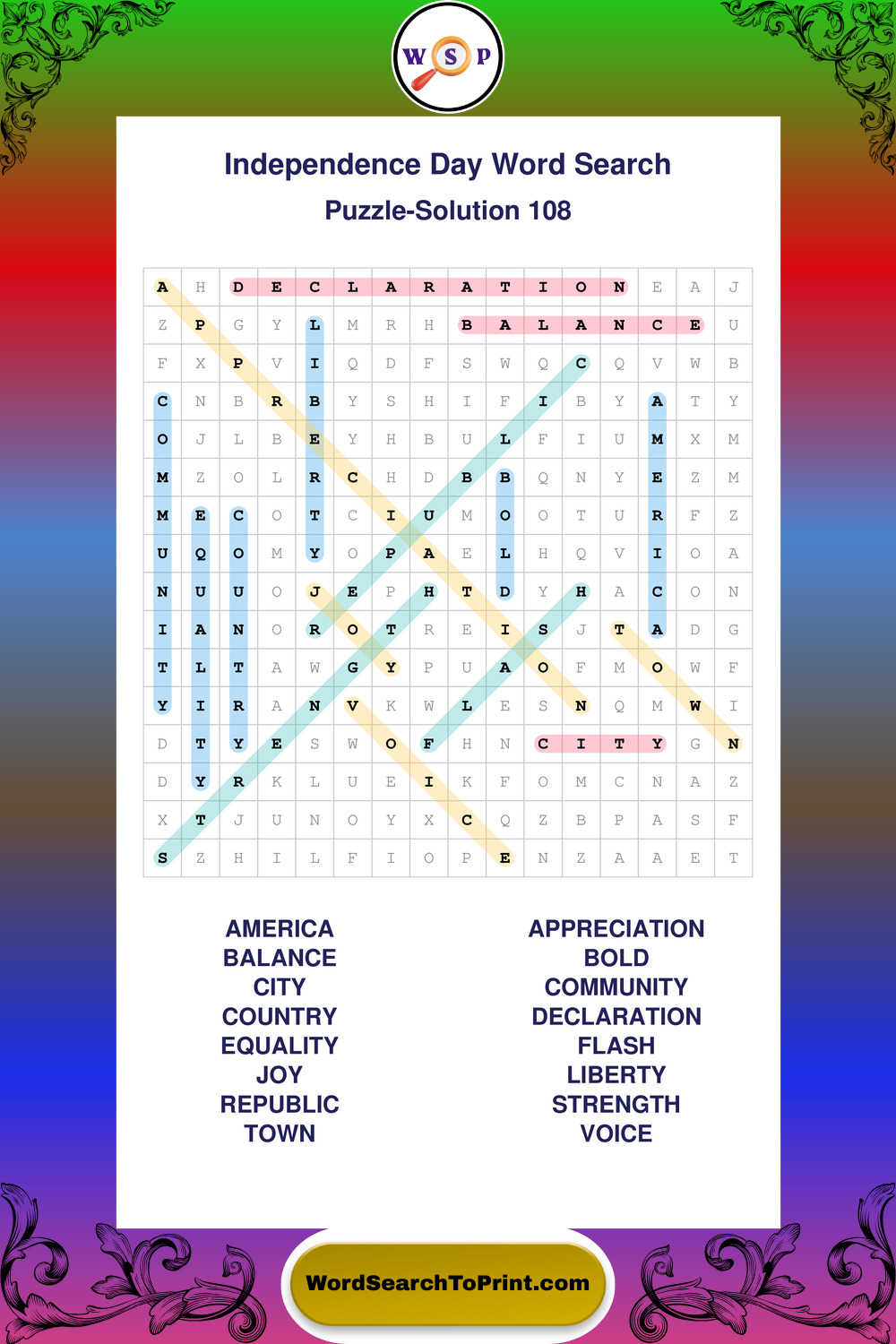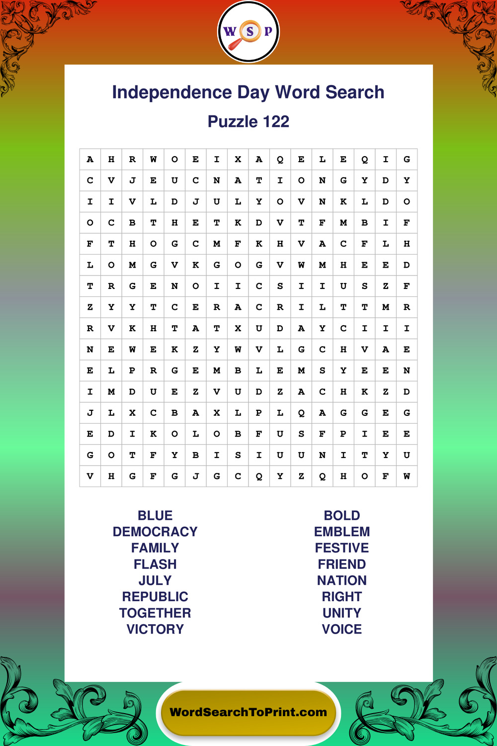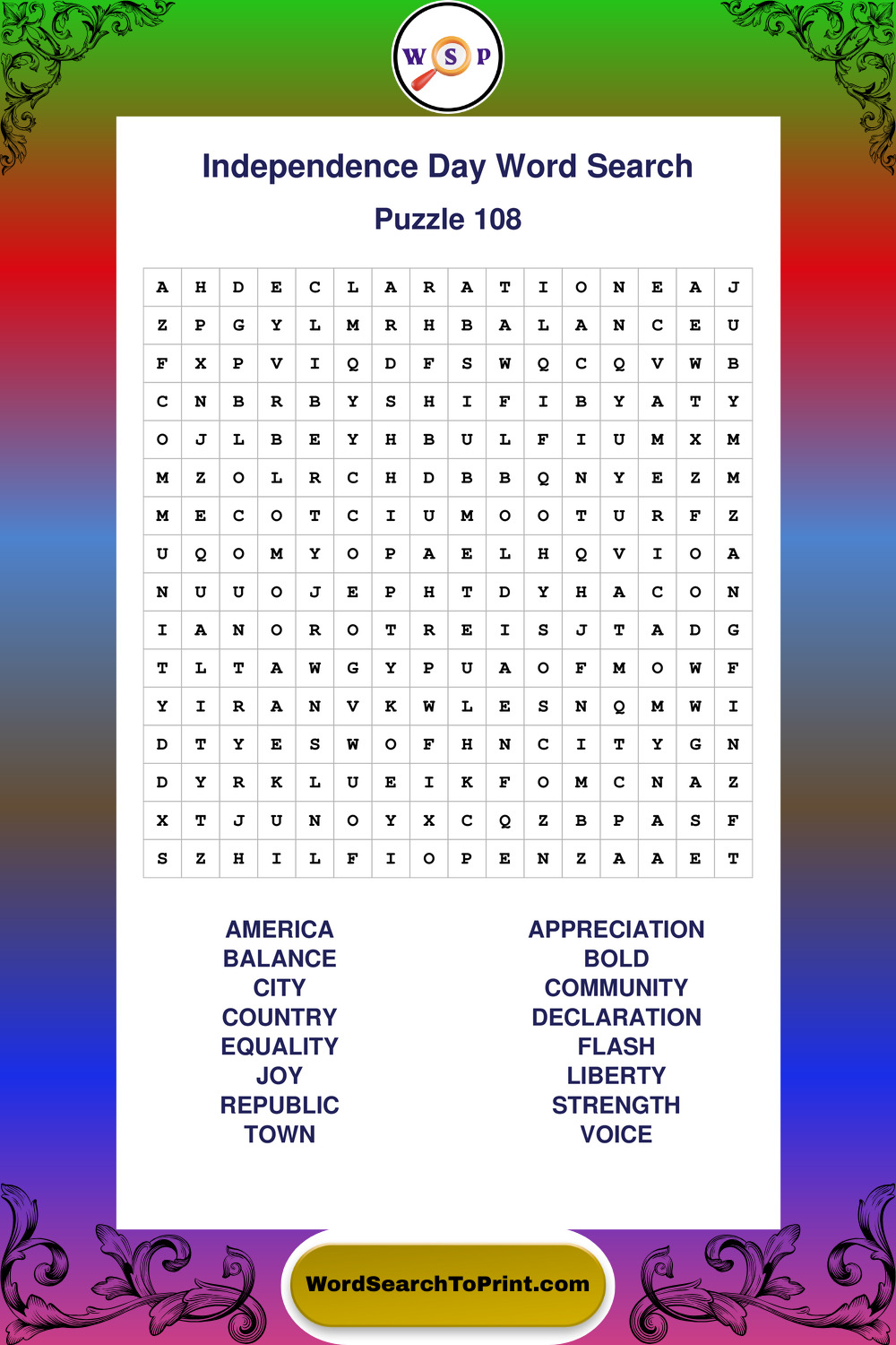 Enjoy large print Independence Day wordsearches that balance clarity, simplicity, and enjoyable mental activity.