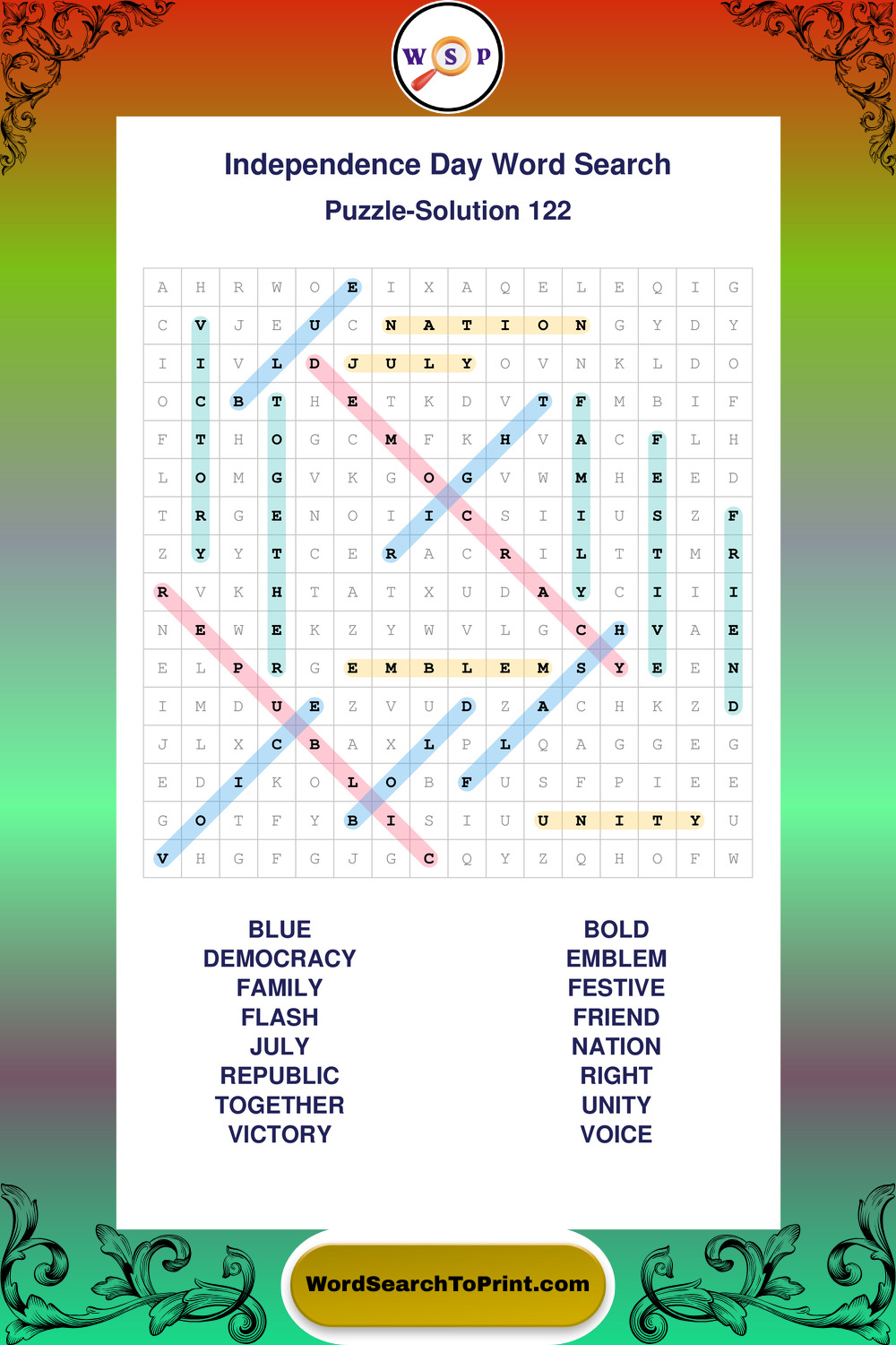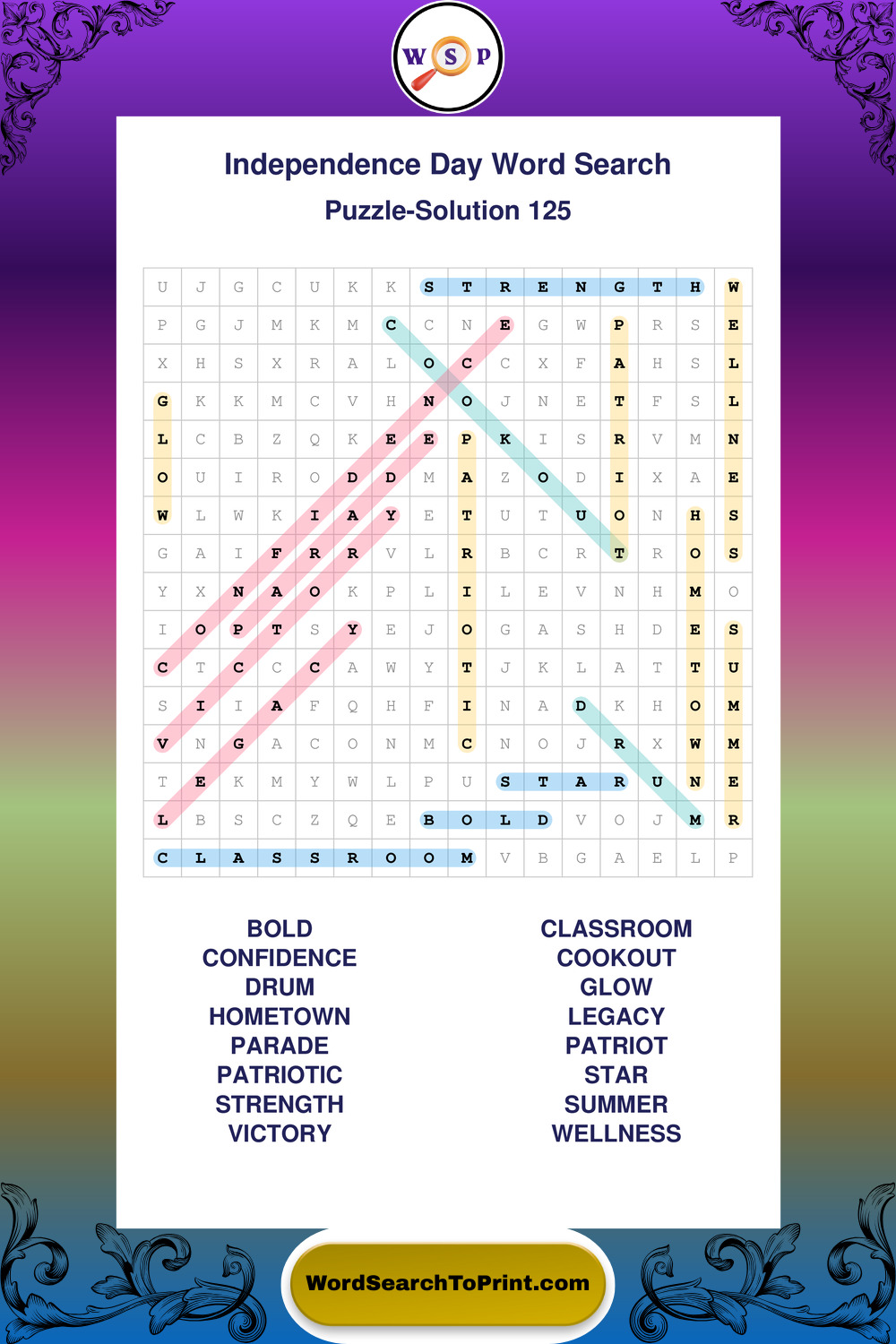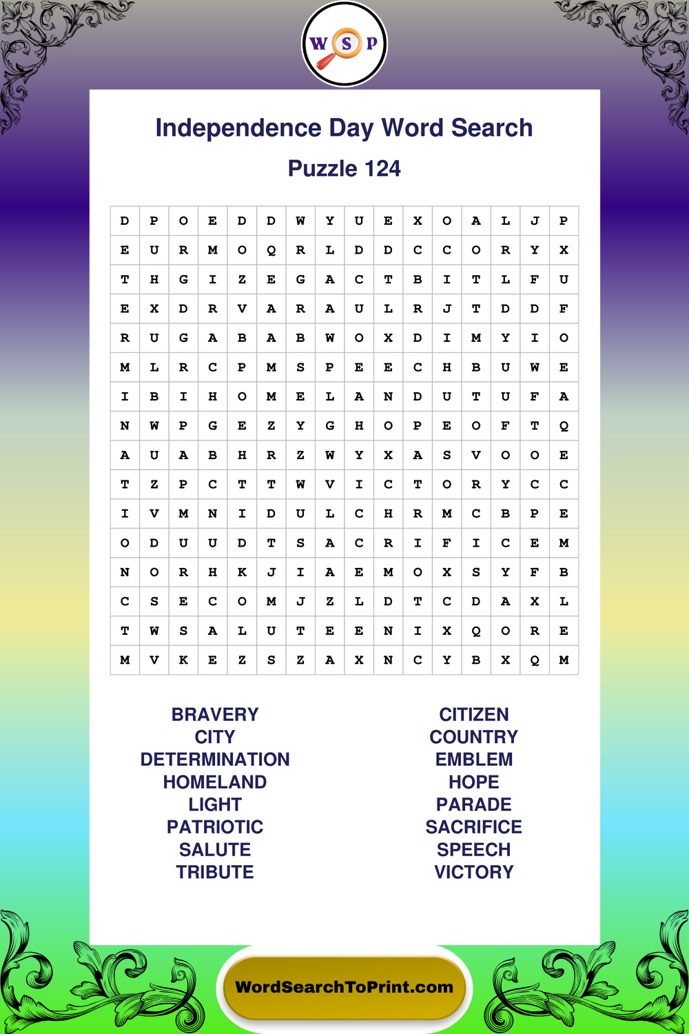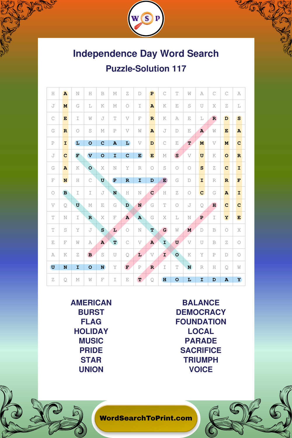 Enjoy large print Independence Day wordsearches that balance clarity, simplicity, and enjoyable mental activity.