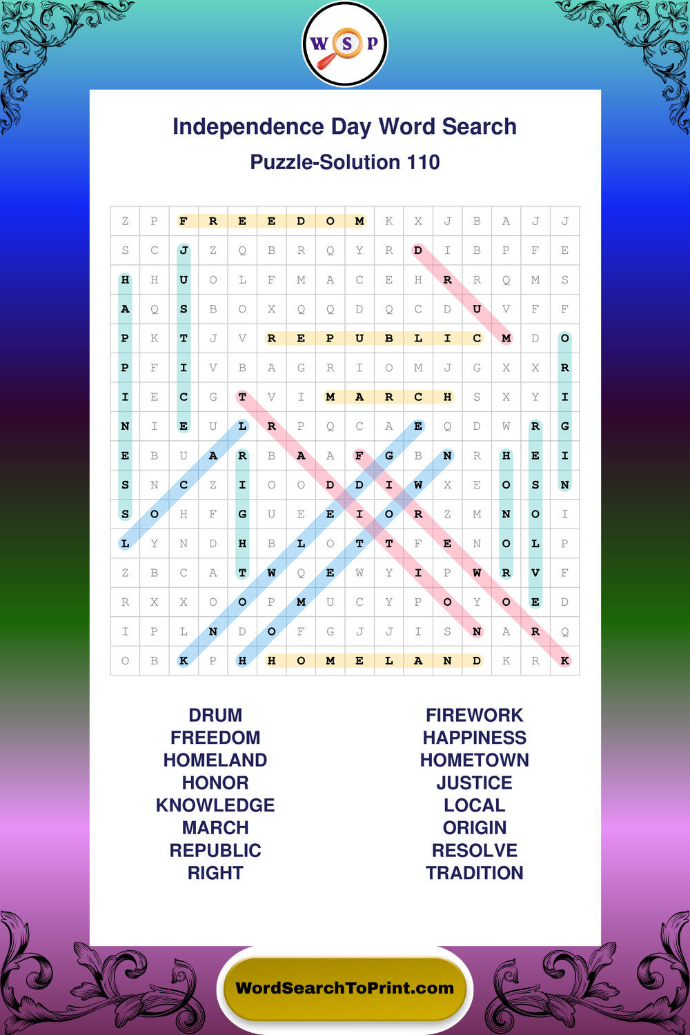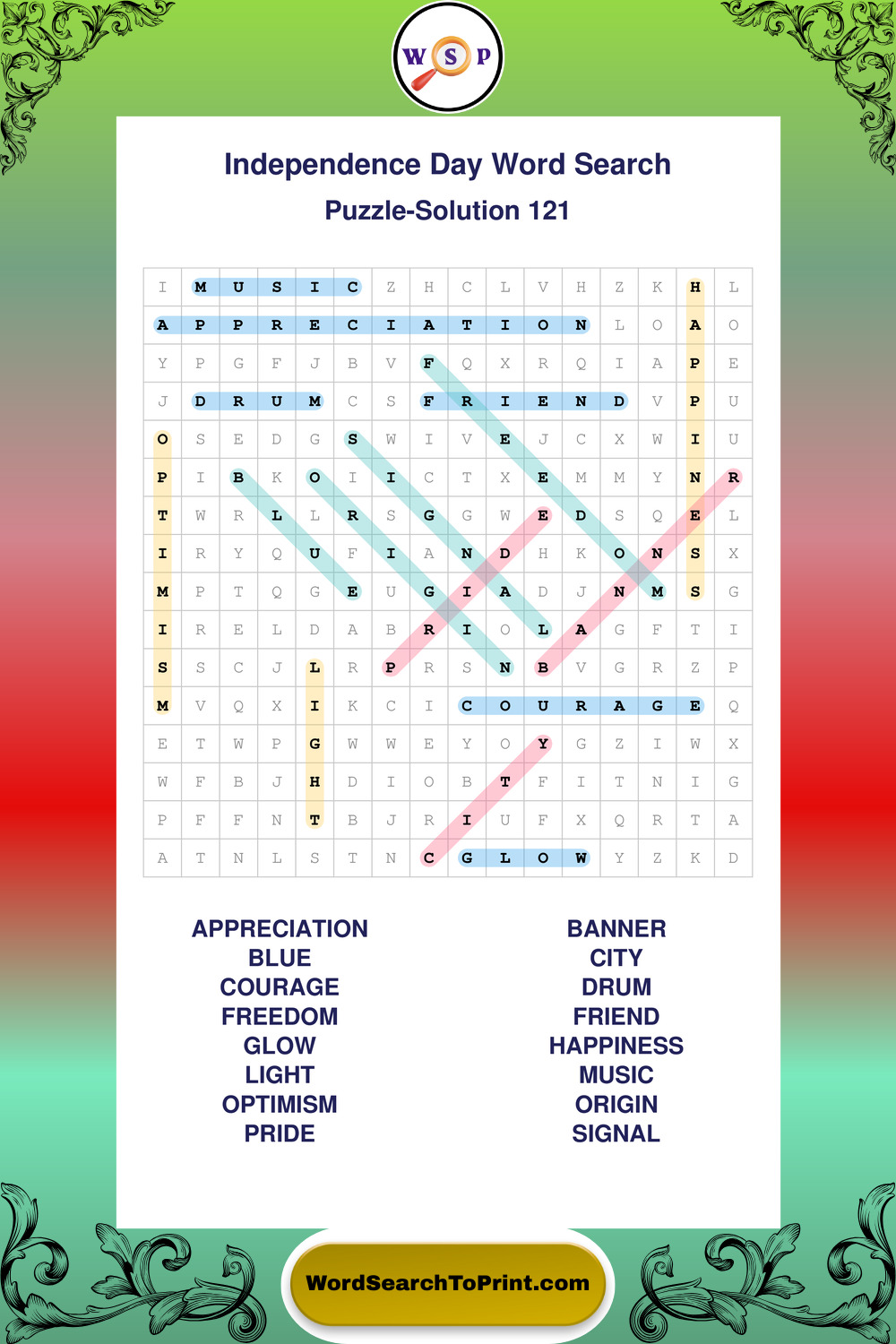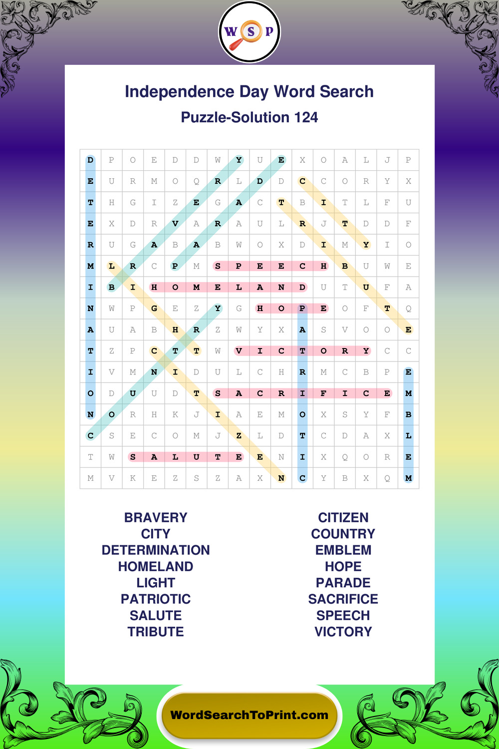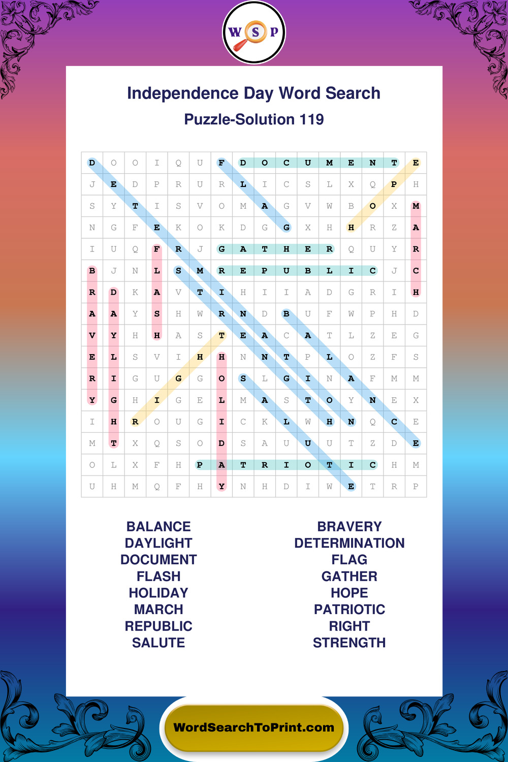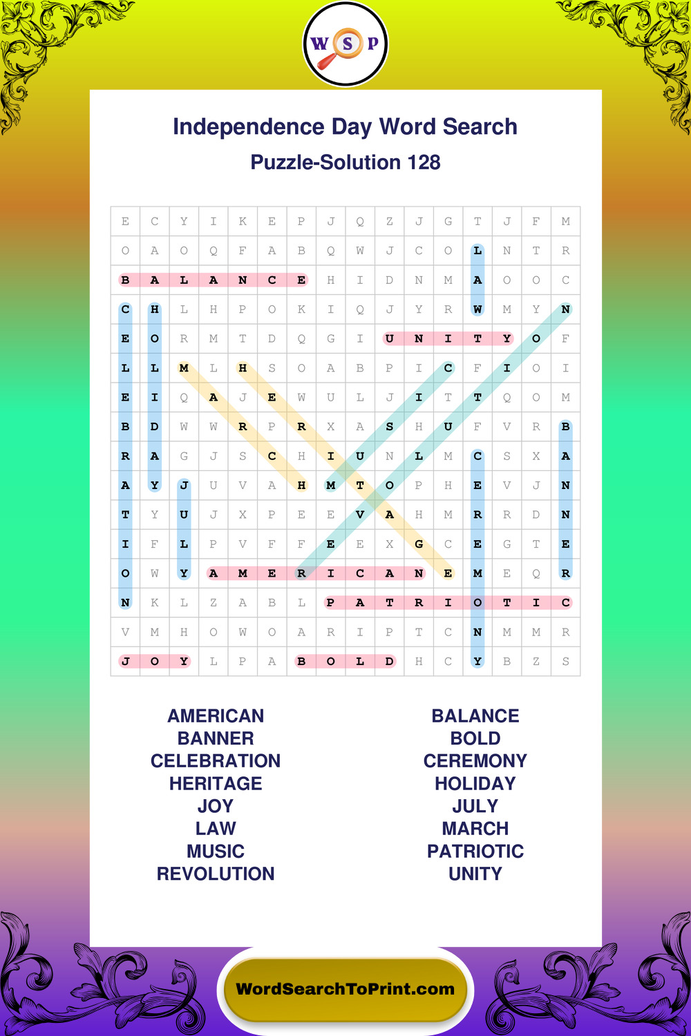 Enjoy large print Independence Day wordsearches that balance clarity, simplicity, and enjoyable mental activity.