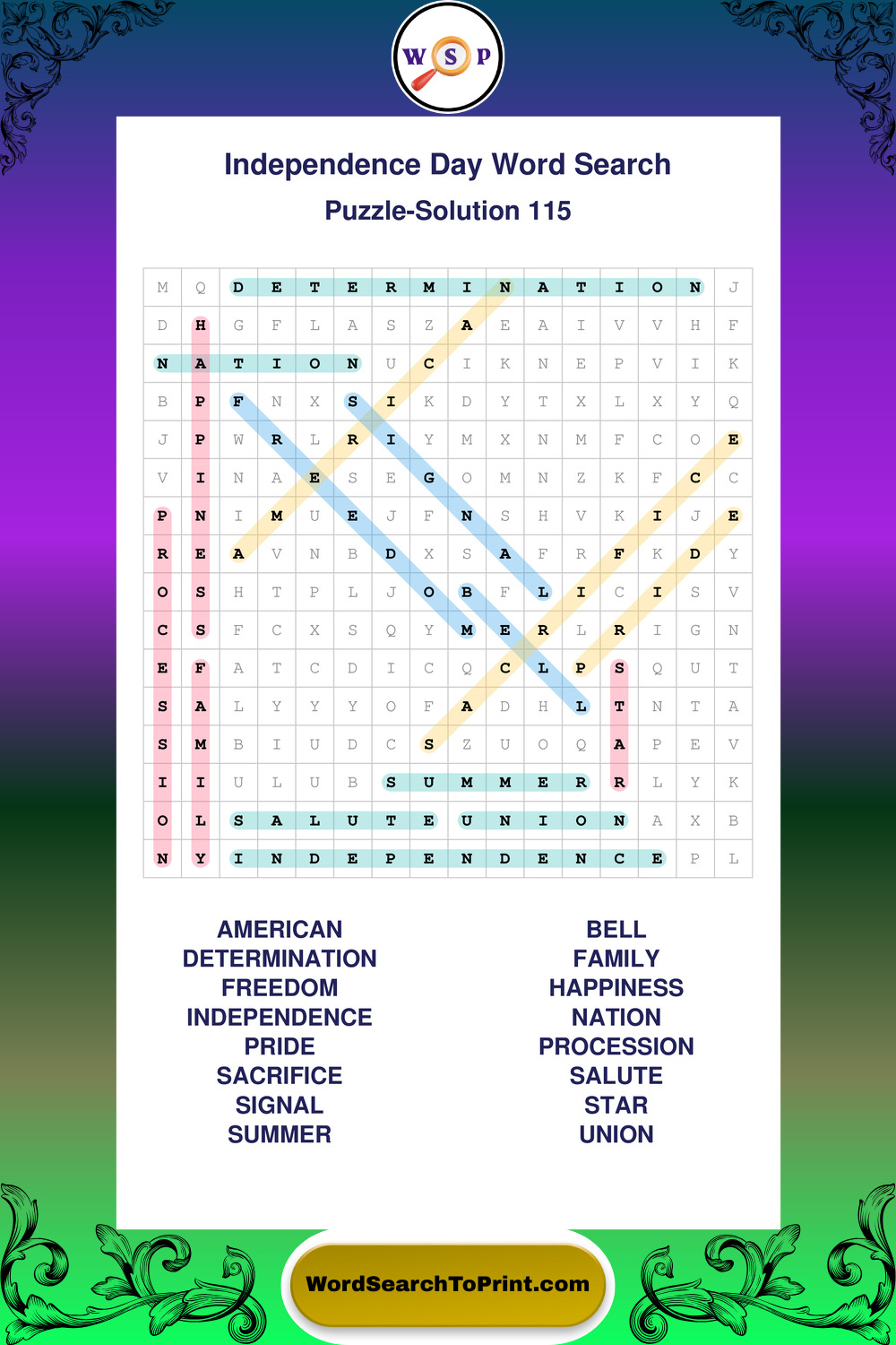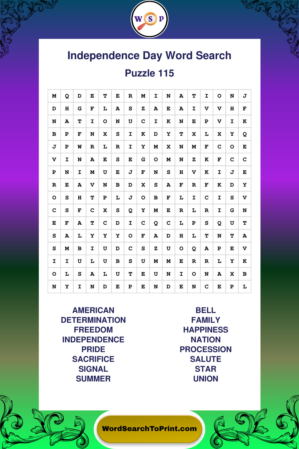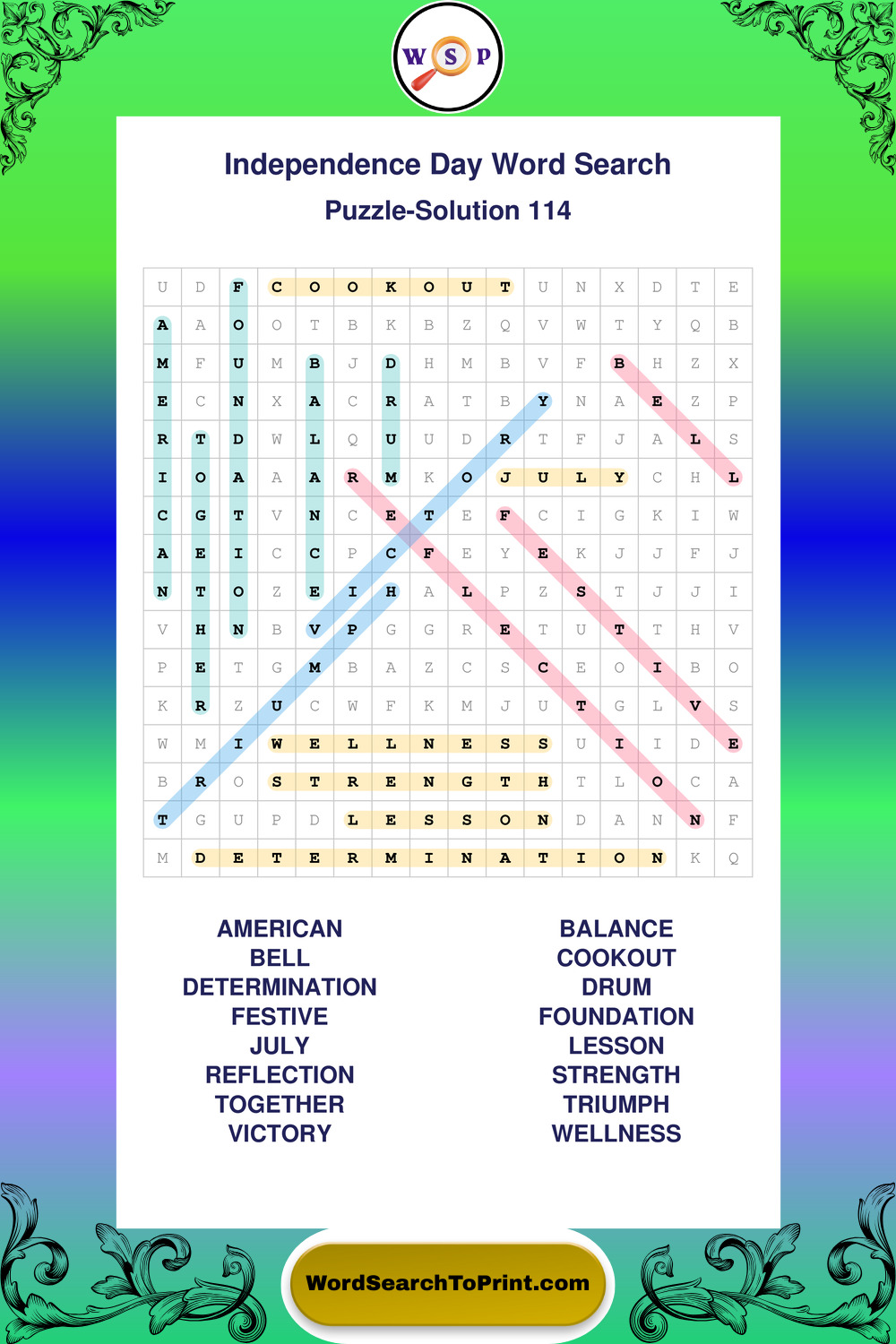 Enjoy large print Independence Day wordsearches that balance clarity, simplicity, and enjoyable mental activity.