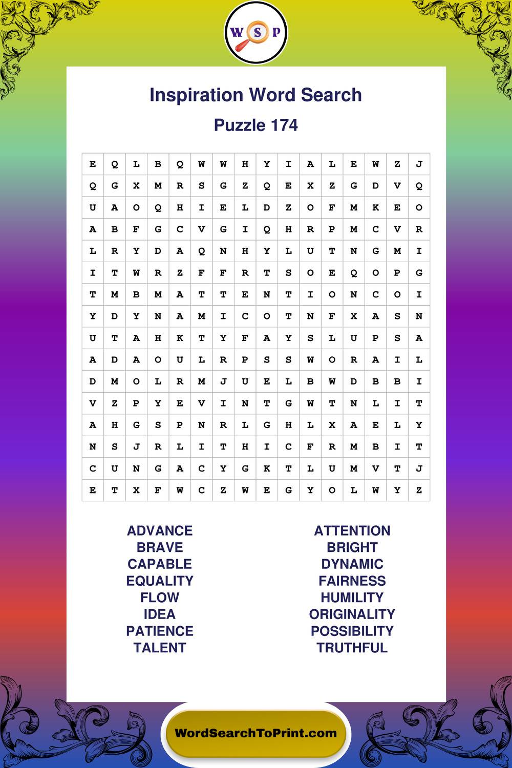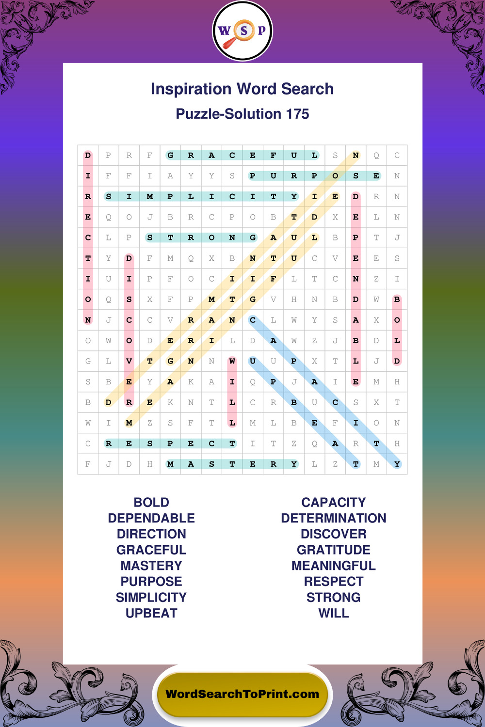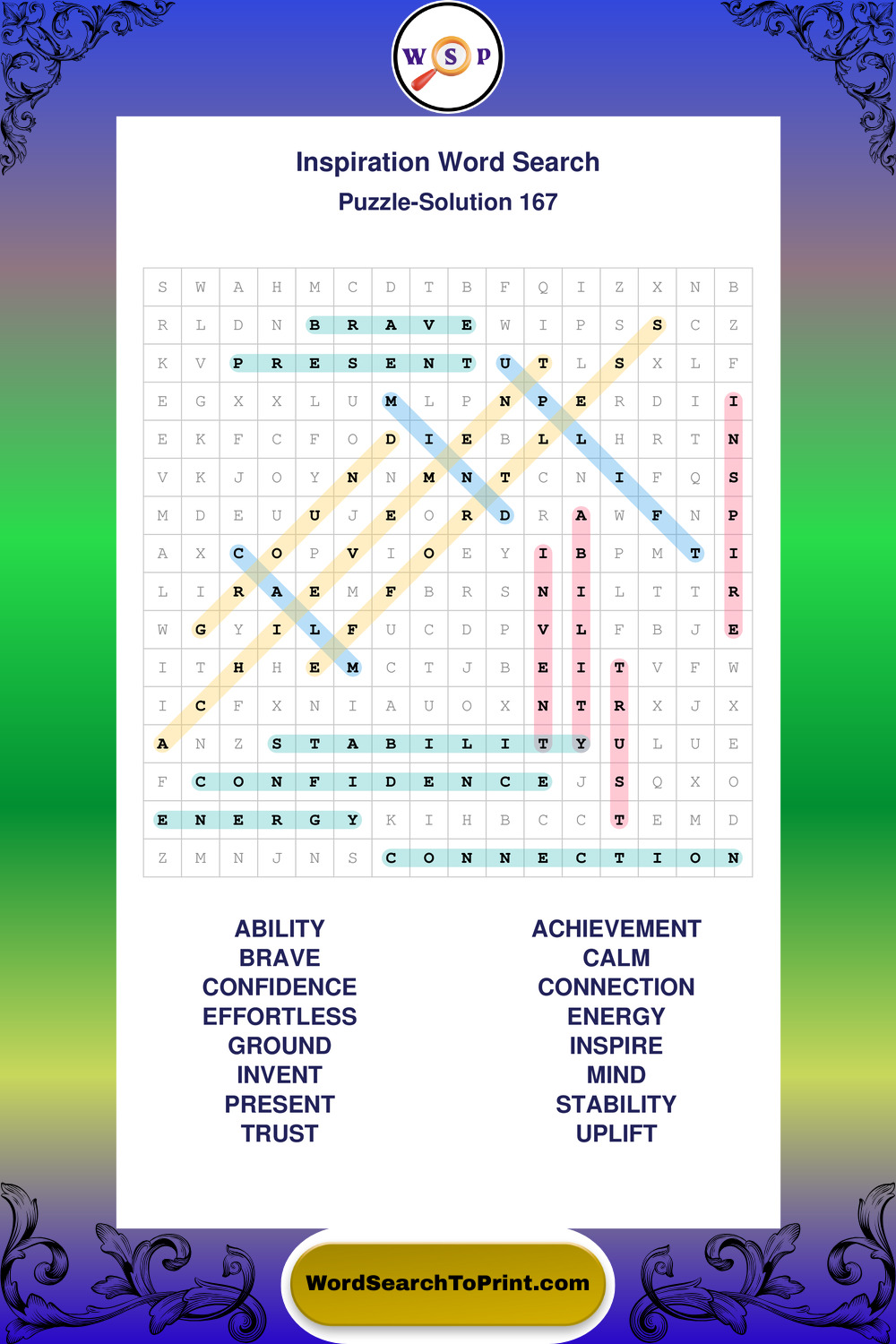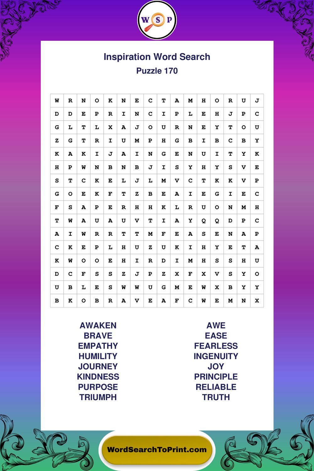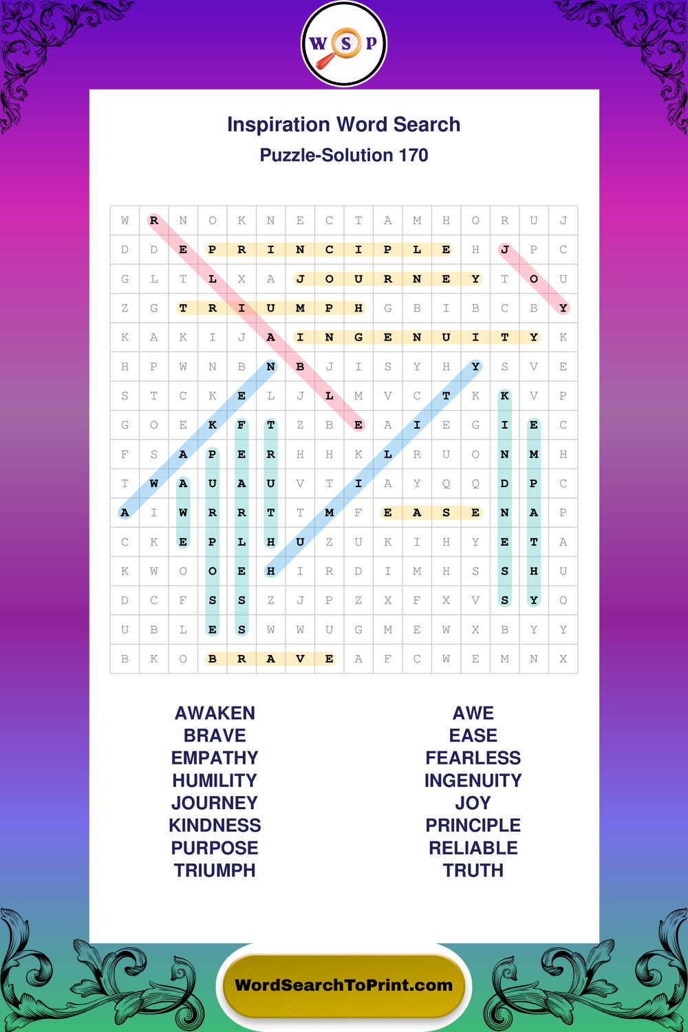 Printable Inspiration Wordsearch Puzzles