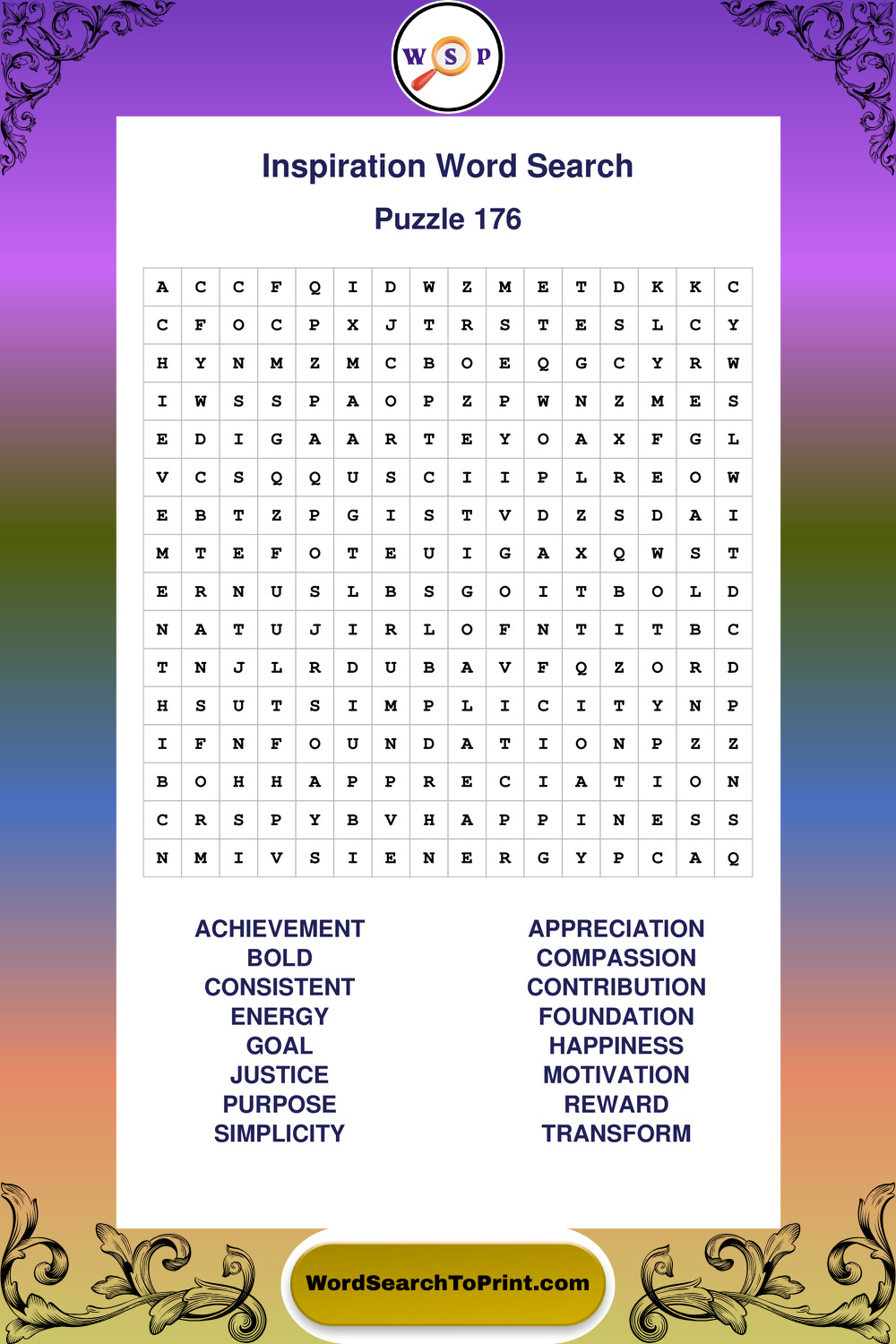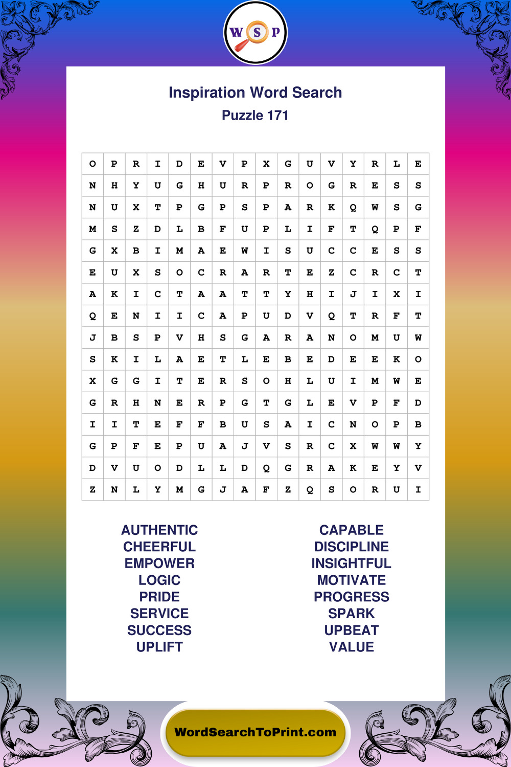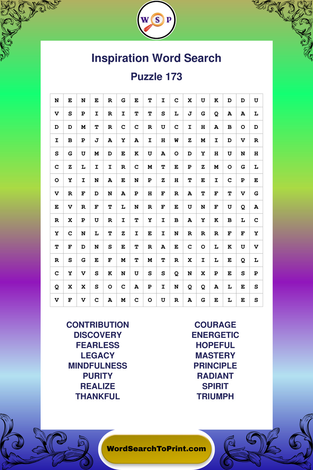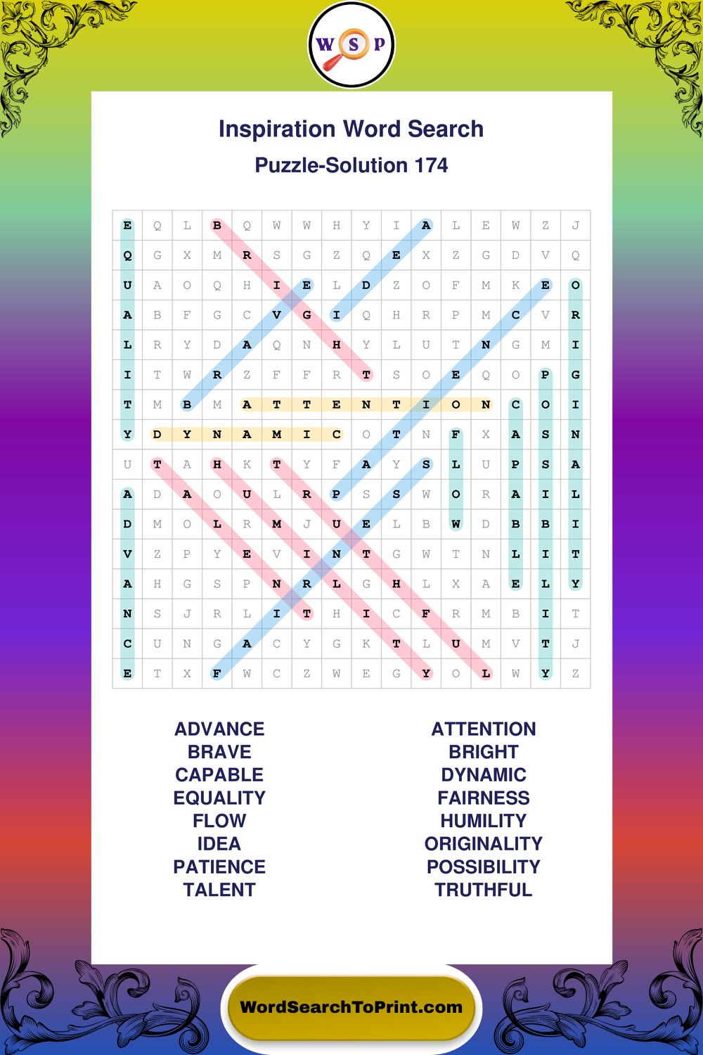 Printable Inspiration Wordsearch Puzzles